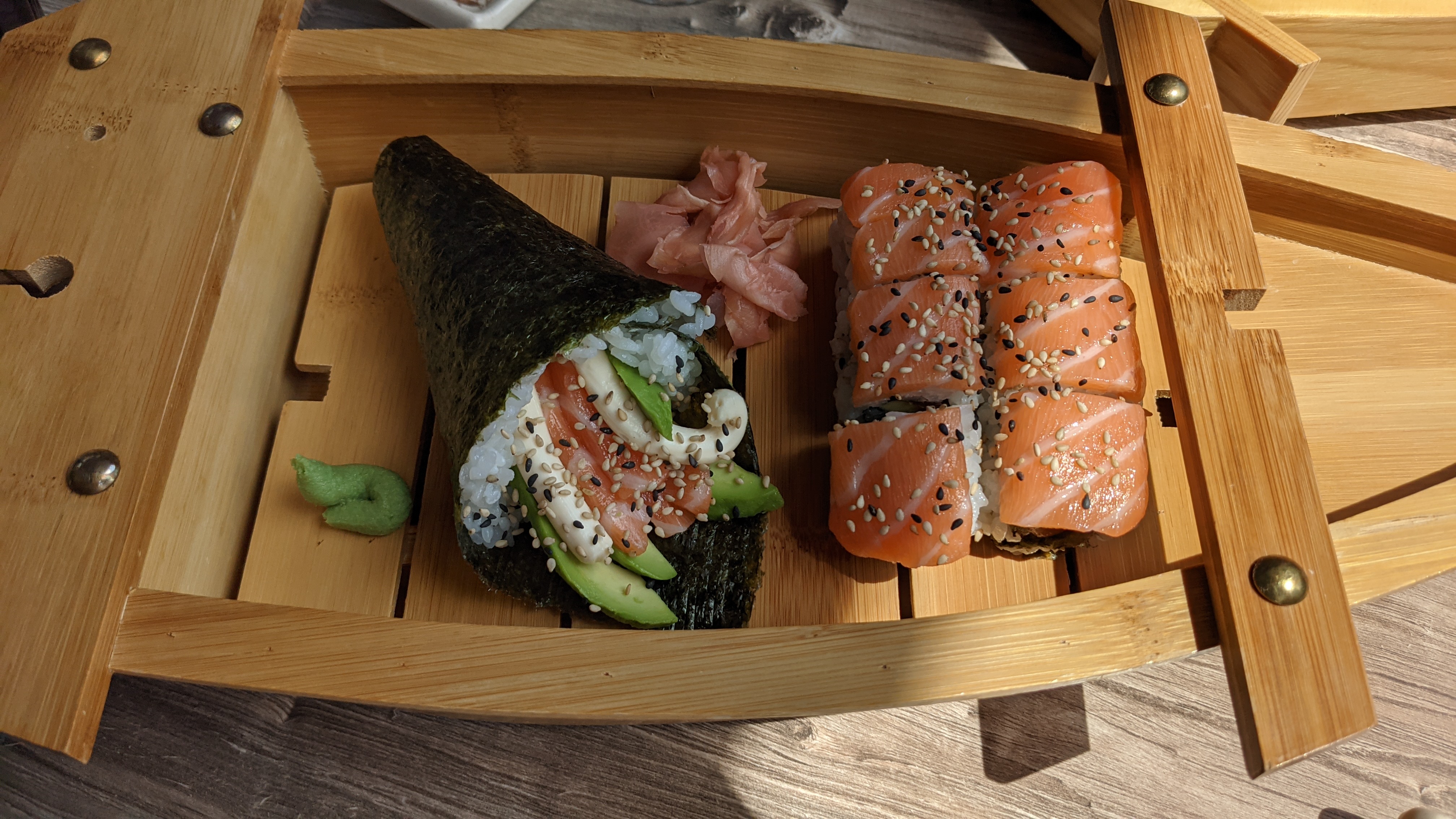Commande uber franchement scandaleux de vendre des sushis de cette taille mais le pire c’est les california saumon cheese ou le saumon est plus fin que les tranches de gingembre sur le côté !!!! C’est scandaleux j’ai l’impression de m’être fait arnaqué salement. Le riz est plus épais au centre que la farce !!! Mais c’est pas possible !!