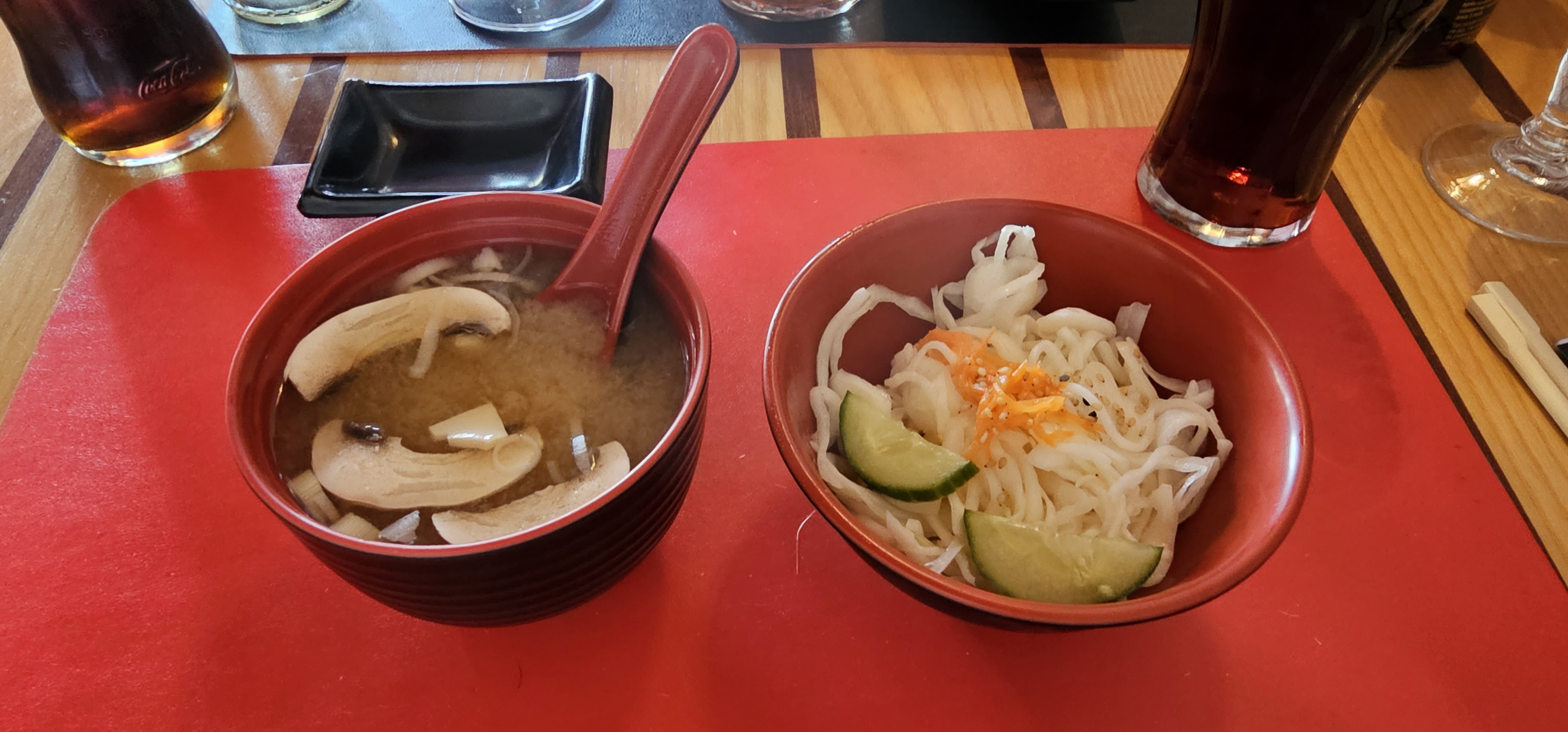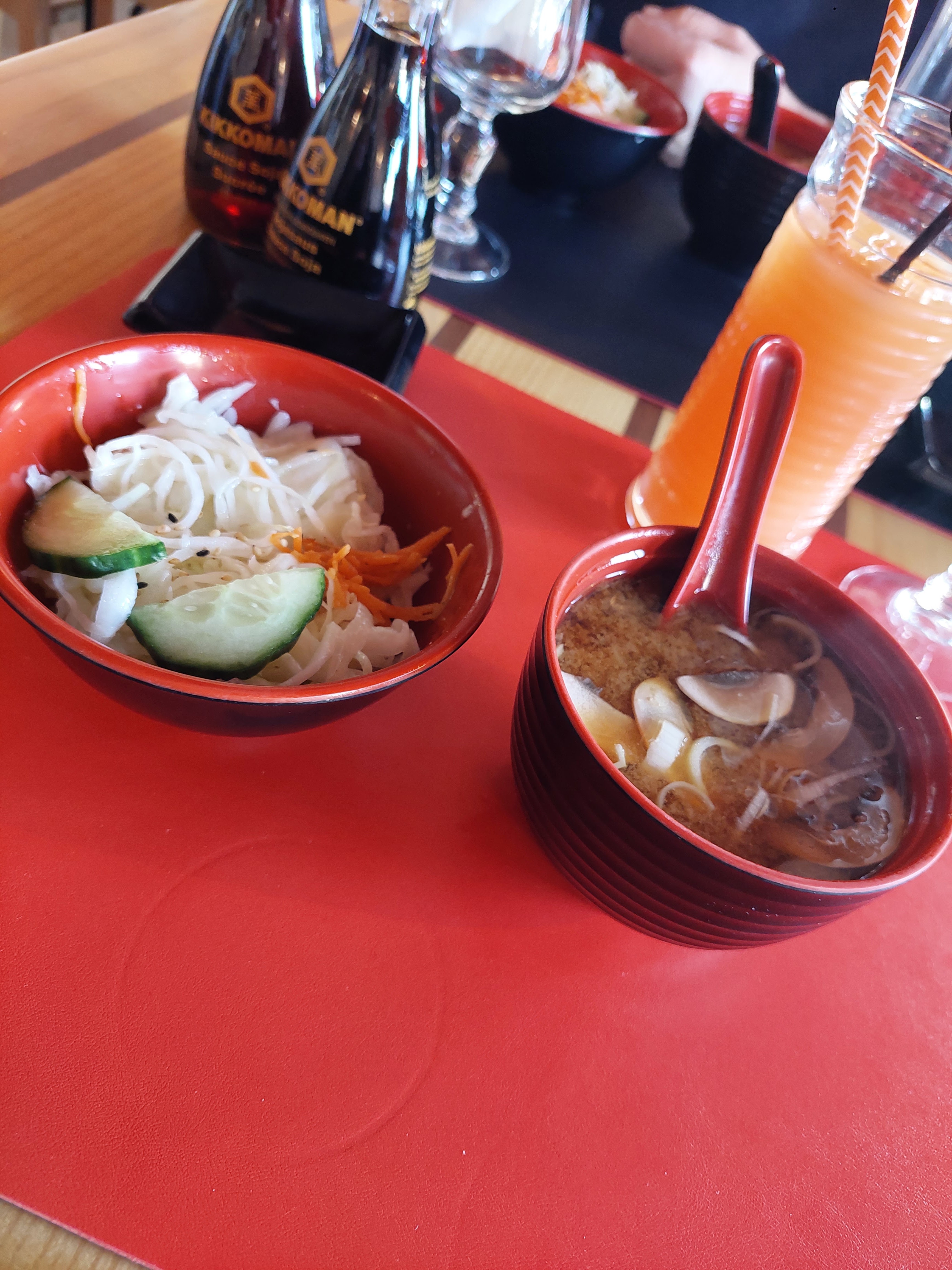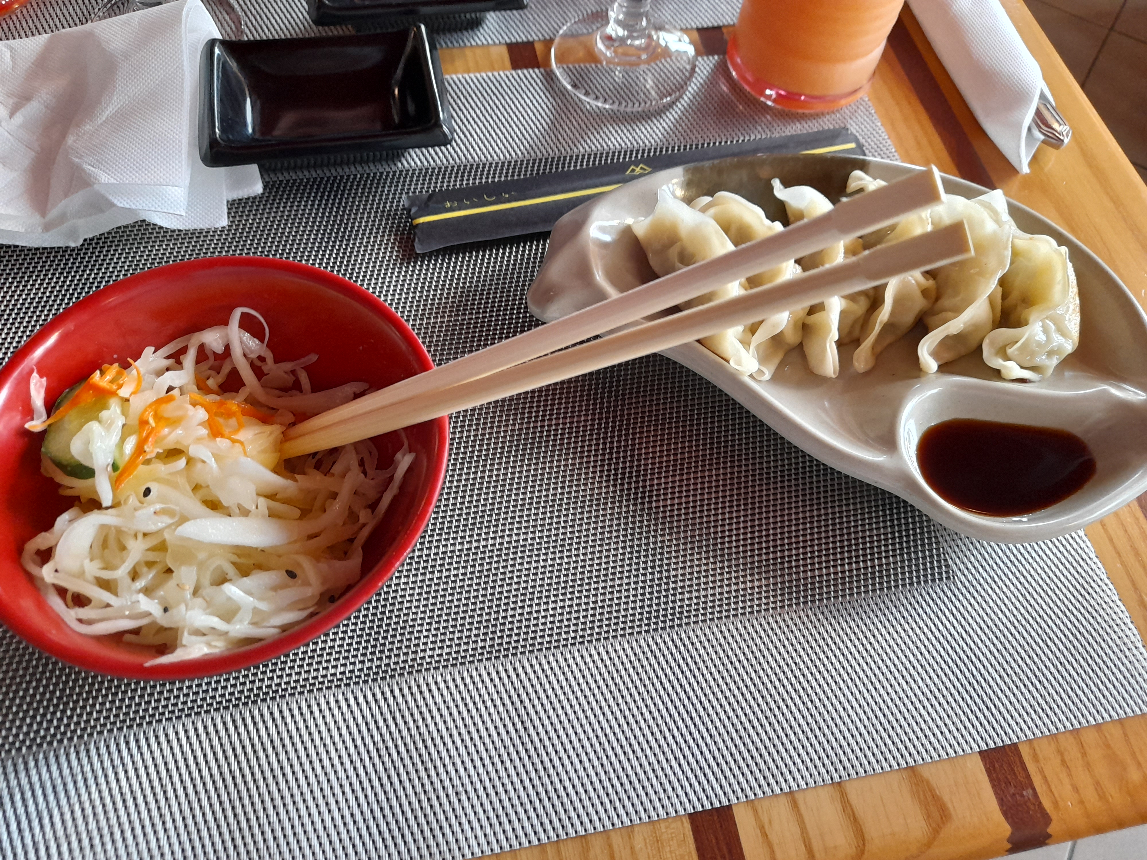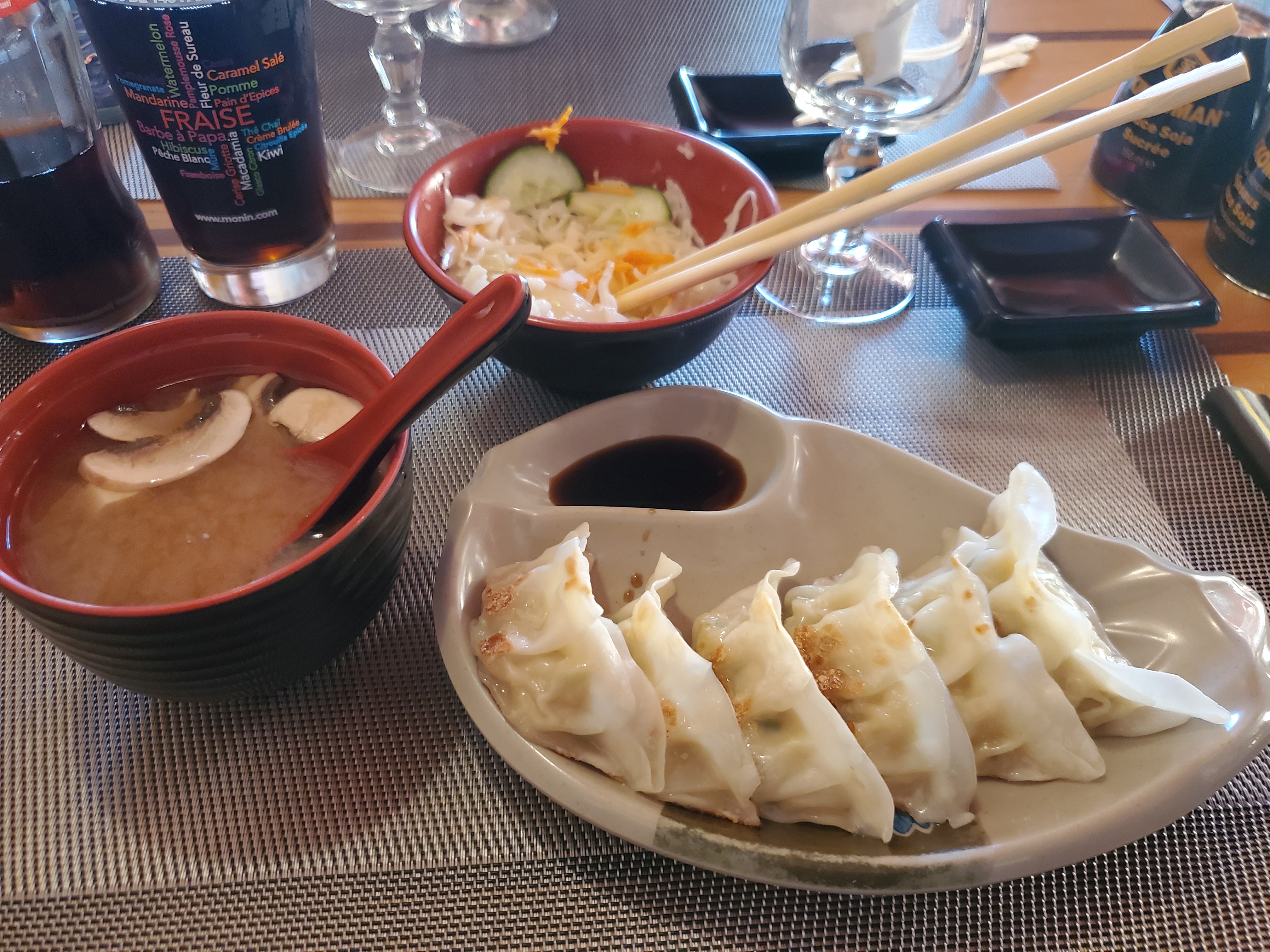Assez sympathique et bon Manque de décoration japonaise pour ma part et d'un parking La serveuse principal est très sympathique moi je recommande vivement les nems au poulet et la soupe miso cependant j'ai détesté. Les gozyas