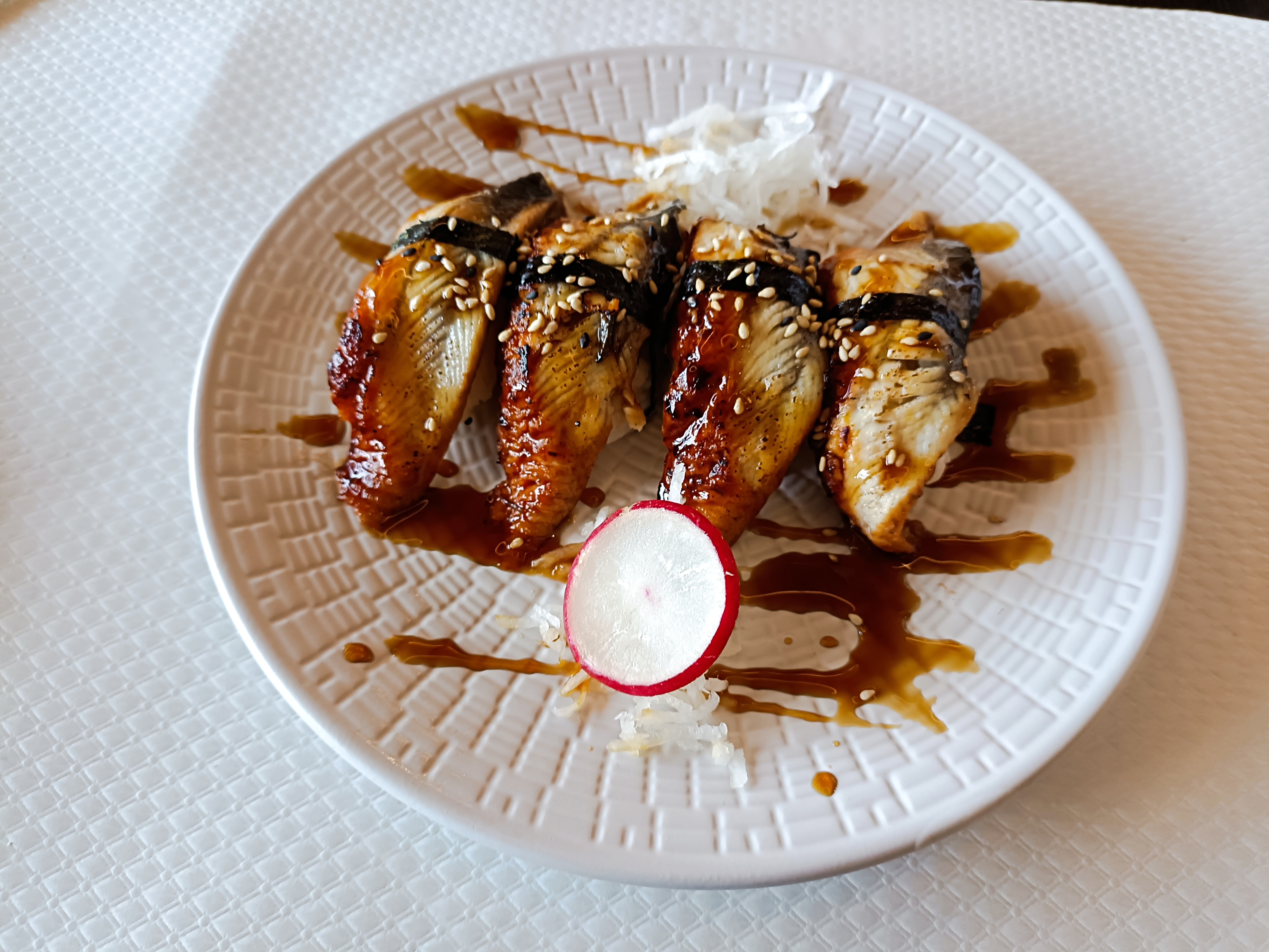 Une découverte inattendue ! Je dois avouer avoir très rarement goûté des sushis aussi bon en France. Et pourtant j'en ai fait énormément même sur Paris ! Je suis vraiment surpris de la qualité des produits et de la finesse du travail même dans la cuisson et l'équilibre en goût du riz. Chose totalement oubliée ici et qui pourtant est l'essence même du sushi. Vraiment un régal absolu ! C'est une adresse à aller absolument découvrir et redecouvrir à volonté ! En plus des qualités de tout ce qui nous est servit, il y a le choix. Je le précise car l'on nous propose des nigiri anguille. C'est un sushi rare que très peu de restaurants font et réussissent d'ailleurs. Là encore une réussite totale ! La cuisson est parfaite et le produit est frais, un pur délice. A la liste je dois ajouter aussi la partie épicerie très agréable et bien aménagée, contenant des produits réellement japonais et non des faux estampillés comme. Nombreux sont des produits que je connaissais déjà mais qui sont d'excellents produits très qualitatifs et très bon que j'utilise régulièrement. Ici on peut largement trouver son bonheur sur de nombreux produits et cela à des prix extrêmement corrects. Pour les amoureux d'alcool il y a aussi une superbe partie du magasin dédiée à cela. N'étant pas un amateur je ne peux définir à 100% la qualité mais pour un œil novice, déjà là on se rend vite compte qu'il y a de très belles bouteilles. Très certainement vous trouverez encore là des petites merveilles ! Vous l'aurez compris, c'est une adresse à laquelle je vais revenir très très souvent !
