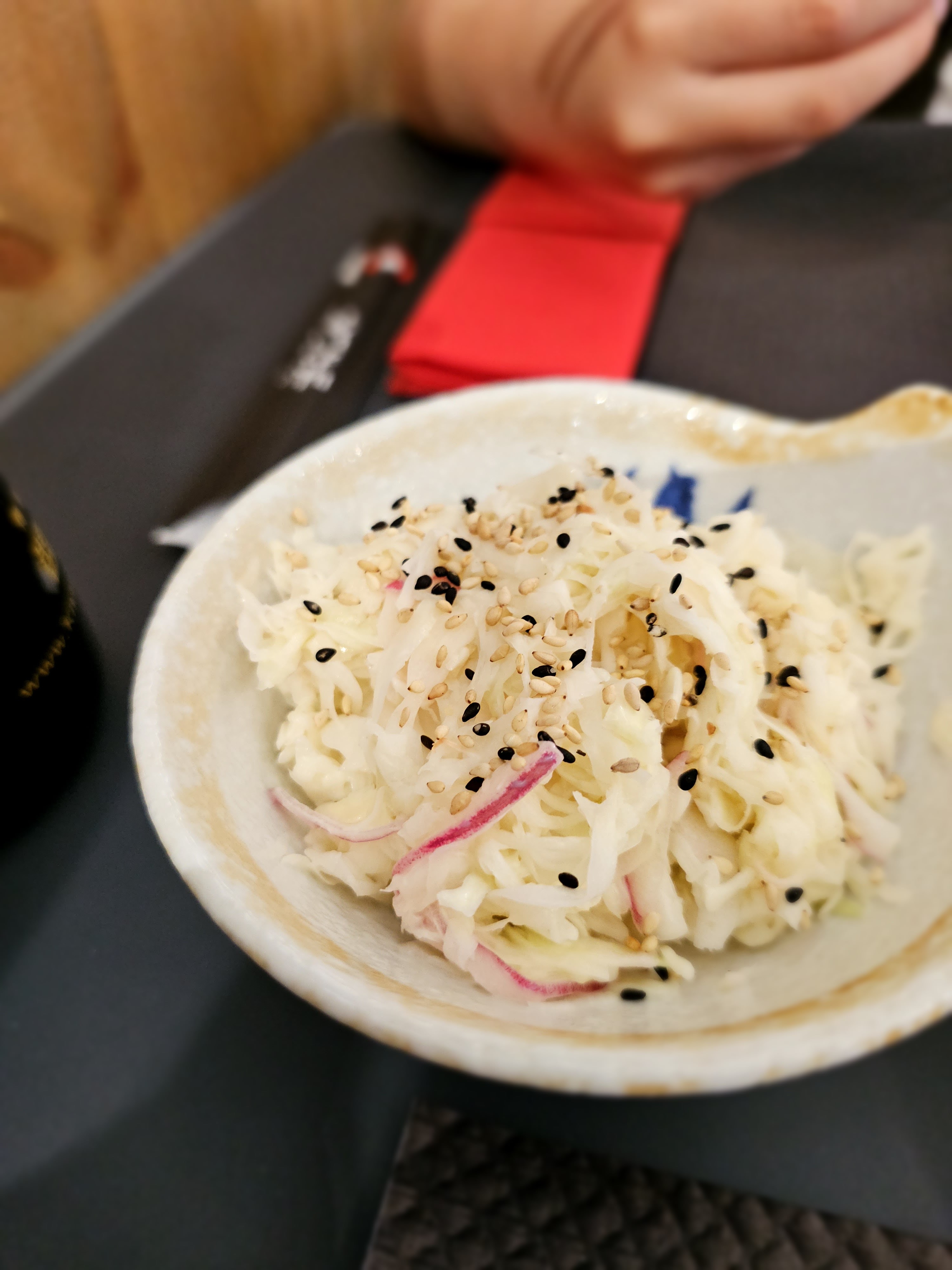 On nous a fait la morale parce que nous avions demandé de changer de maki, que exceptionnellement il l'avait fait mais qu'ils ne le referont pas, hélas ils ne l'avaient pas fait, les makis végétariens n'étaient vraiment pas à mon goût Nous avons jeté les sushis au saumon car le saumon n'était pas frais. On nous a donné 2 pauvres malheureuses sauces pour 2. Les mochis sont affreusement cher. La salade de chou est de la bouillie. Bref nous ne conseillons pas ce restaurant Japonais et plus jamais nous ne commanderons.