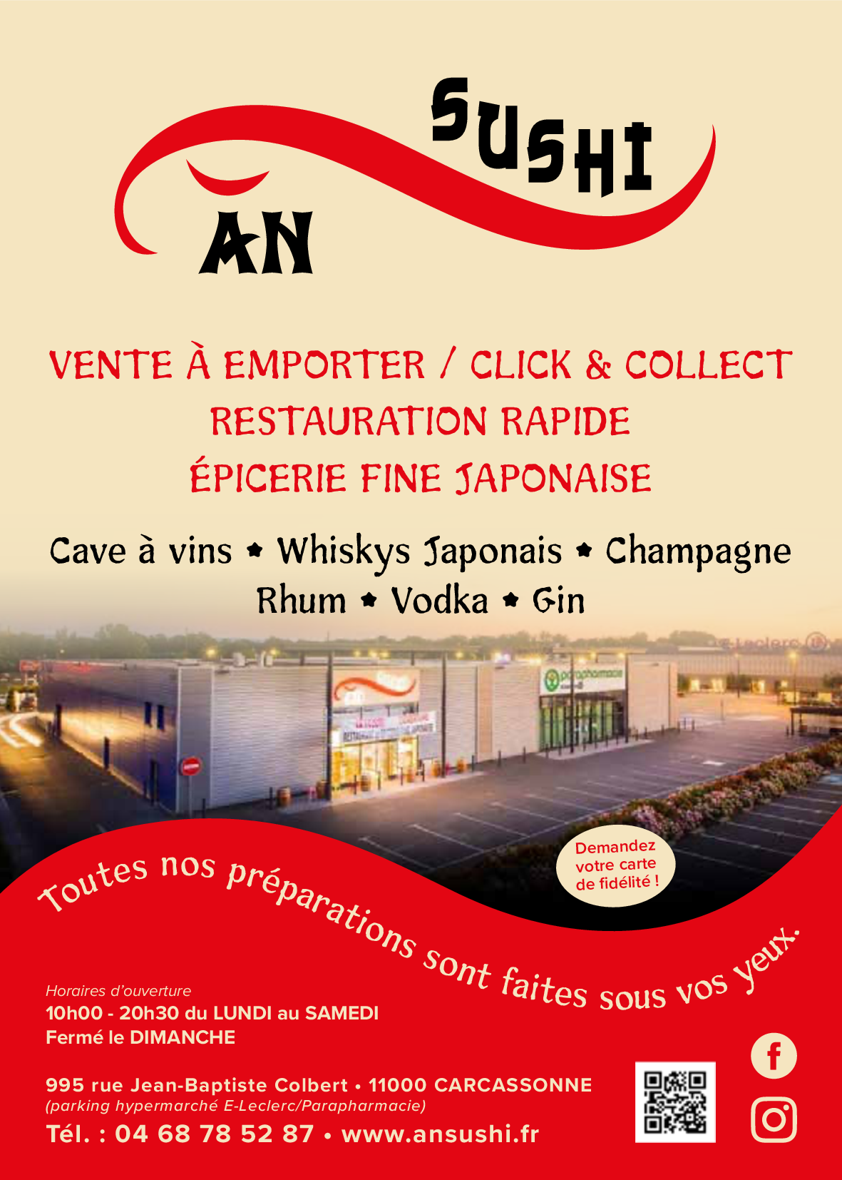 Nouveau conxept épicerie fine whiskies japonais et vins de France restauration rapide sur Carcassonne excellente cuisine japonaise sur place ou à emporter