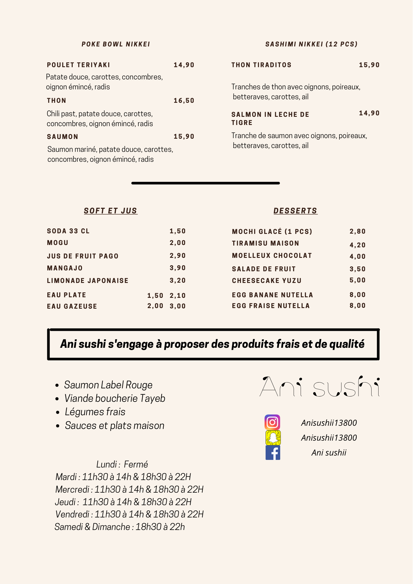 J'avais déjà goûté le ani sushi de Istres et je retrouve la fraîcheur et la qualité des produits. Le saumon est très très bon et j'ai découvert les poke bowls qui sont excellentes. Personnel très accueillant et professionnel Je recommande ce restaurant les yeux fermés.