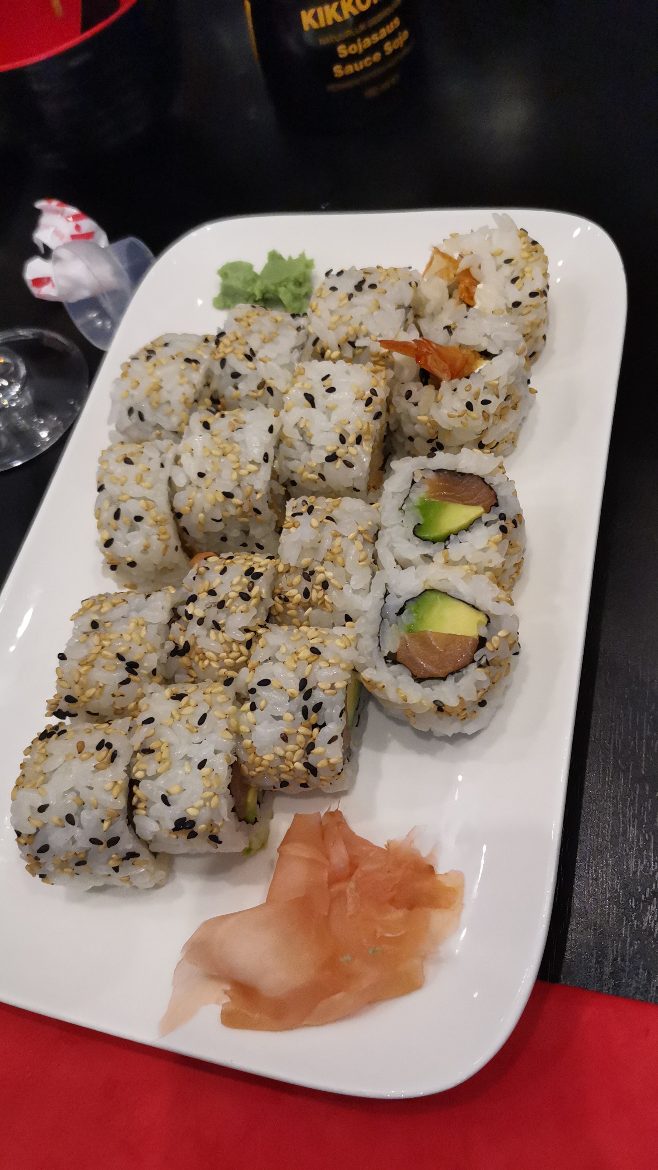 Je ne recommande pas, sushi et california pâteux, quantité de poisson qui laisse a désirer pour le prix. On mange juste du riz.