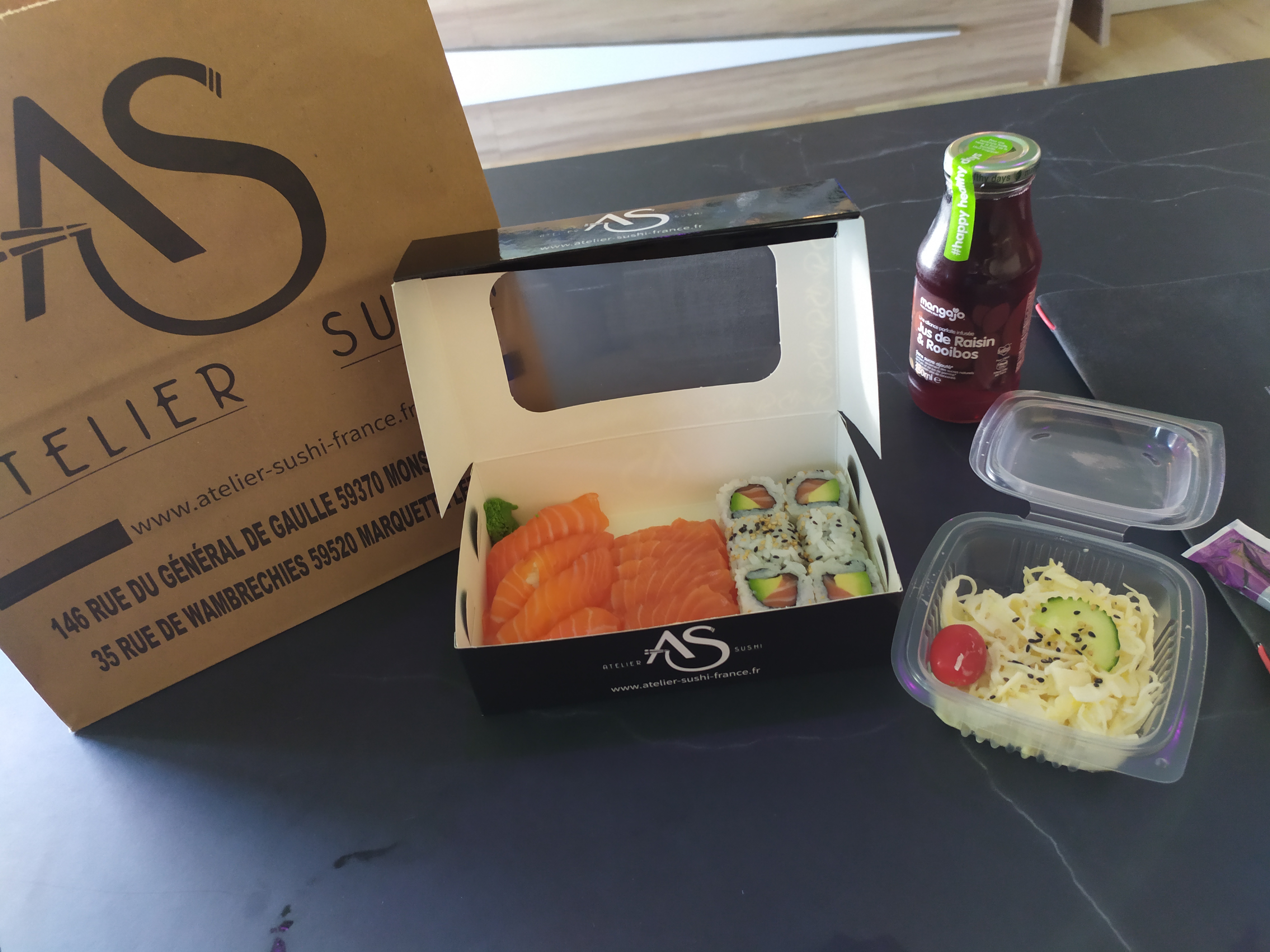 Nous mettons tout en œuvres pour assurer les livraisons le plus vite possible, nous redoublerons d’efforts pour être encore meilleur demain ! Merci pour votre retour cela nous montre l’intérêt que vous nous porter. À très vite Chez Atelier Sushi.