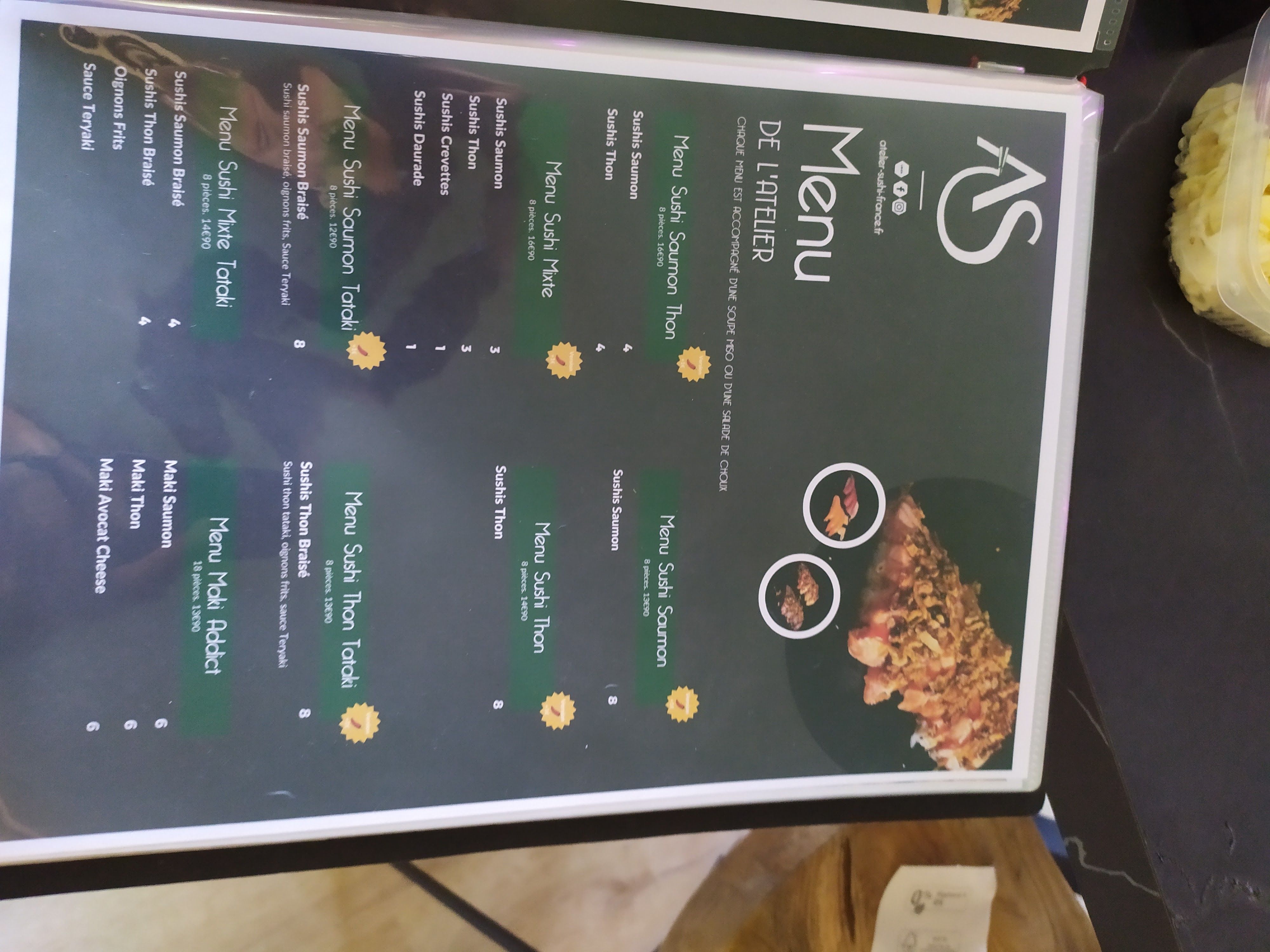 Je reviens en famille de l'atelier sushi nous avons adoré manger là bas, l'accueil est au top , la décoration simple et efficace, nos plats étaient vraiment très beau , j'ai trouver les prix abordable pour la qualité des plats , Ce fut une belle découverte, Je reviendrais avec plaisir dès mon retour dans le Nord avec Monsieur ce coup ci 👍🏼