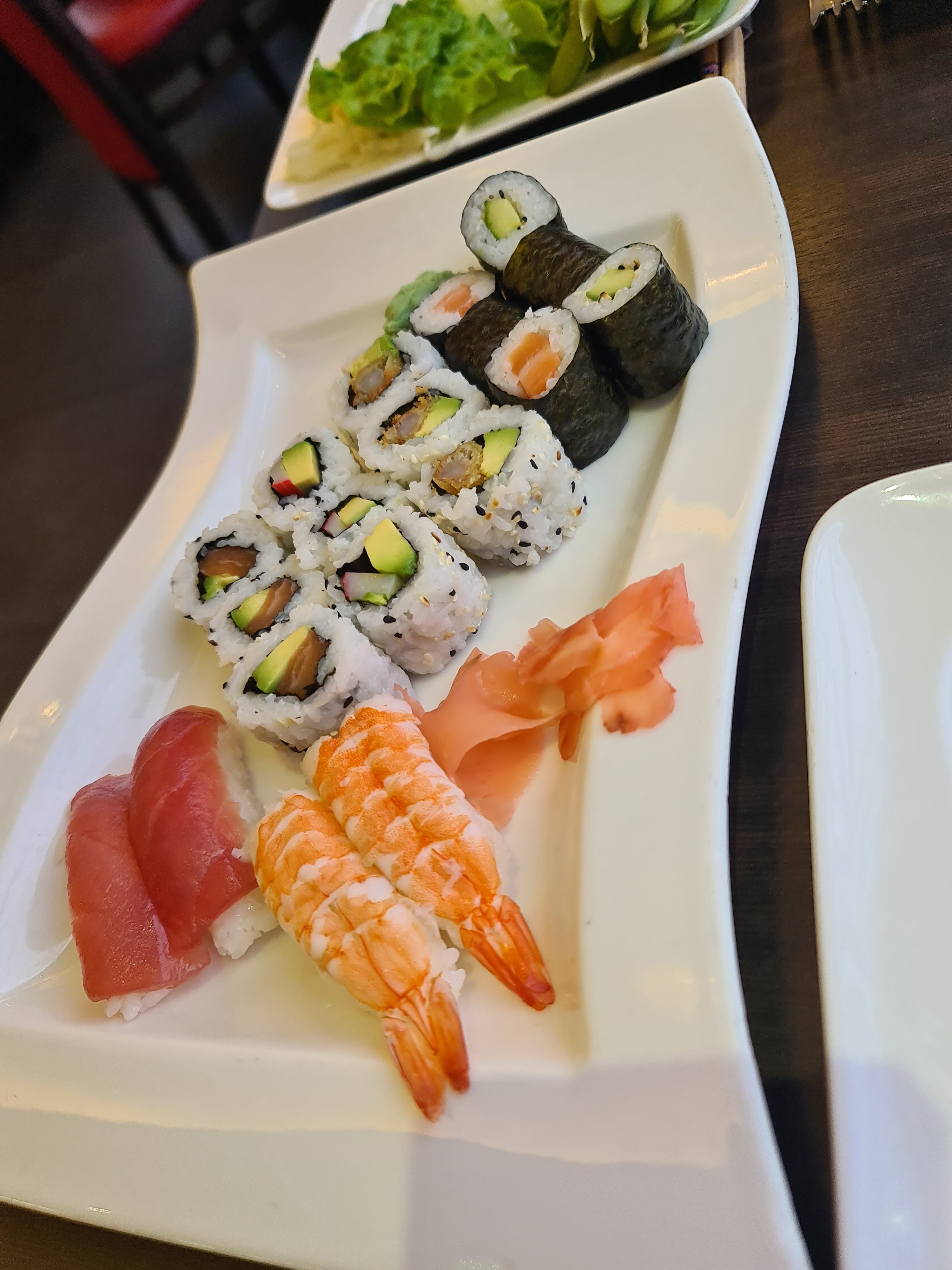 Plat et sushi bons mais sans être extraordinaires. Mais gros points noirs sur le service. Pas polie, voir impoli, pas de sourire aucune forme de spontanéité ou de bonne humeur. Bref nous avions vraiment l'impression de faire c**** la serveuse.