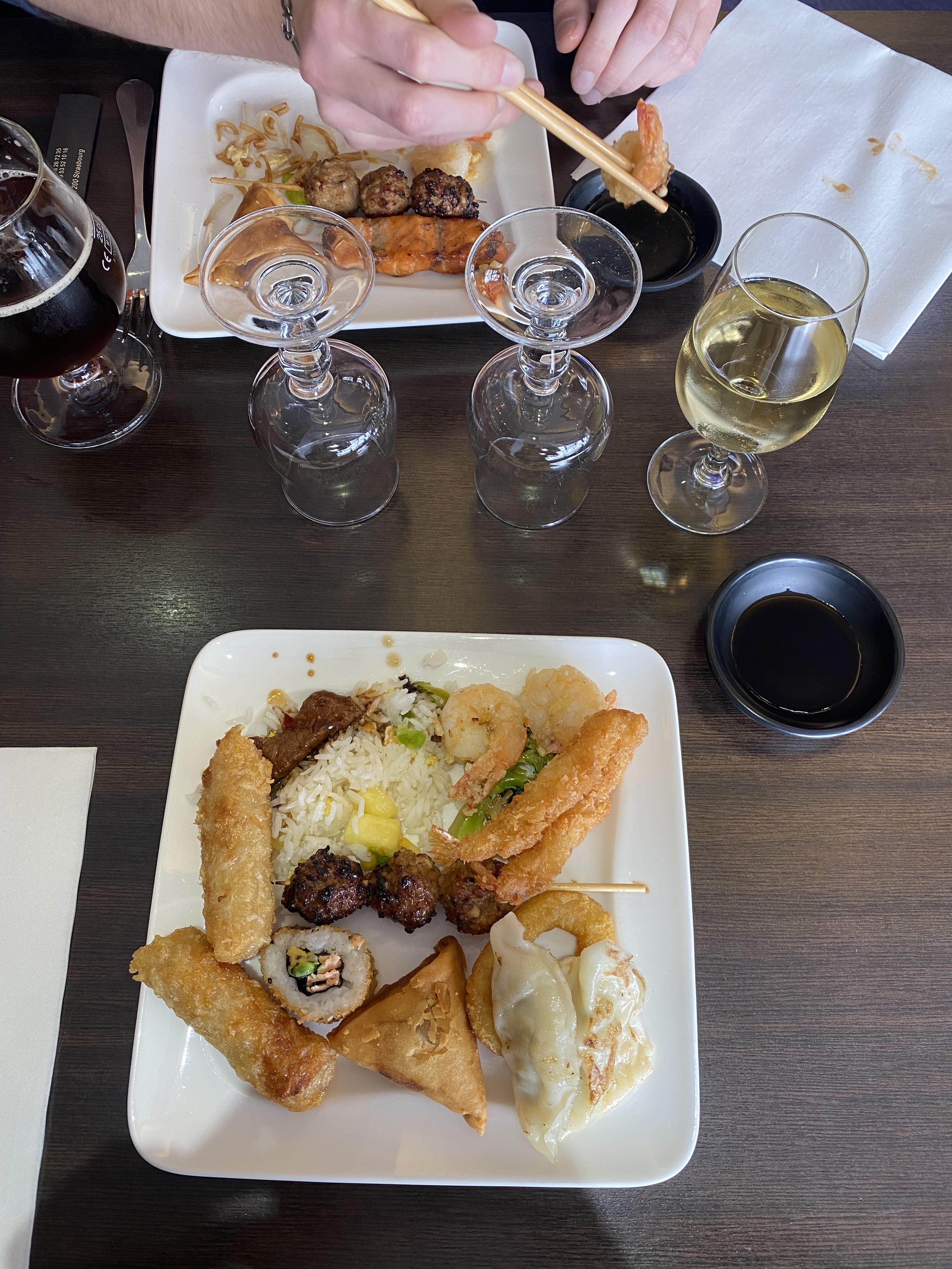 Ma compagne et moi avons passé un très bon moment. Je conseille vivement ce restaurant asiatique à volonté. Il y a un choix moins large que dans d'autres buffets asiatiques mais le goût y est et ce qu'il y a est largement suffisant pour bien manger ! Le soir il y a plus de choix dont beaucoup de sashimis et des ramens ! Pour finir, les serveurs sont sympathiques et la déco est belle. En bref, je vous recommande d'y aller ! (En photo une partie des plats)