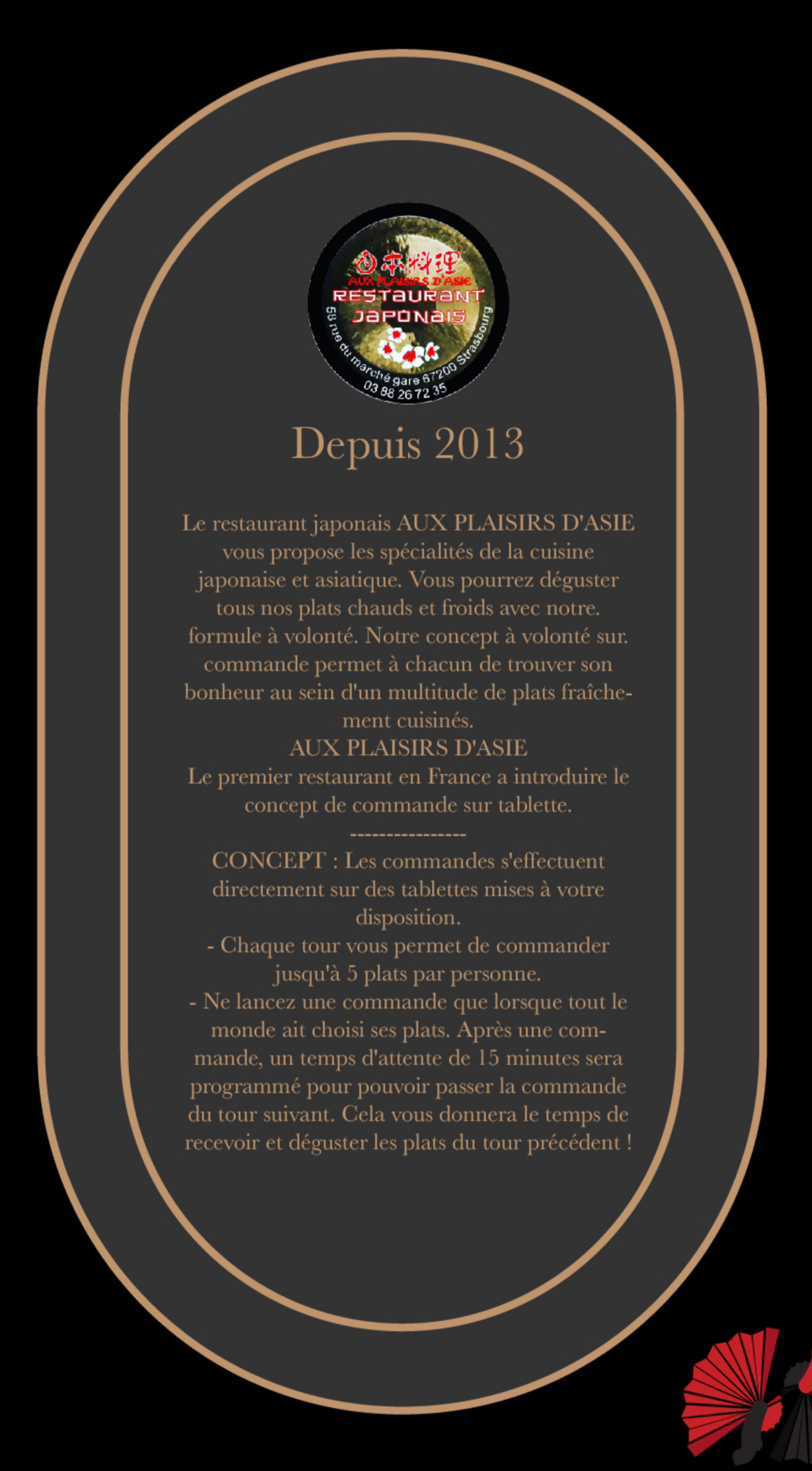 Avec mon mari nous sommes des habitués, manageur pleins d’humours. Le système des tablettes est super et nous permets de discuter avec nos proches sans devoir se lever et on ne manque jamais de nourriture. Les sushis sont fait sur commande !