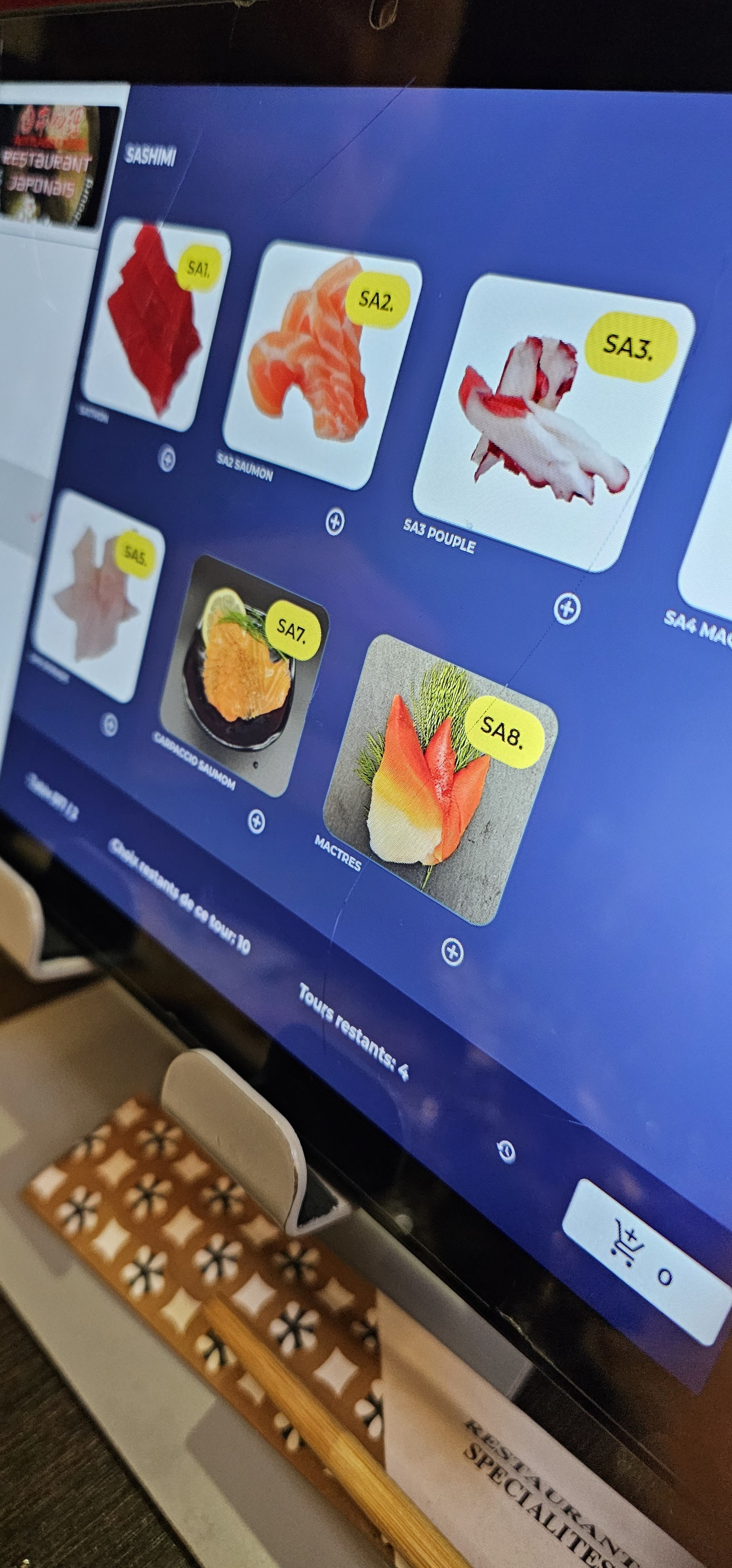 Ce restaurant est parfait pour tout ceux ou celles, qui comme moi aime les sashimis. Si vous aimer la modernité vous aurez le plaisir de réaliser vos commandes sur une tablette et vous serez servis à table. Les serveurs et serveuses sont accueillant et agréable. Nous y allons régulièrement avec mon compagnon et nous n'avons jamais été déçu.