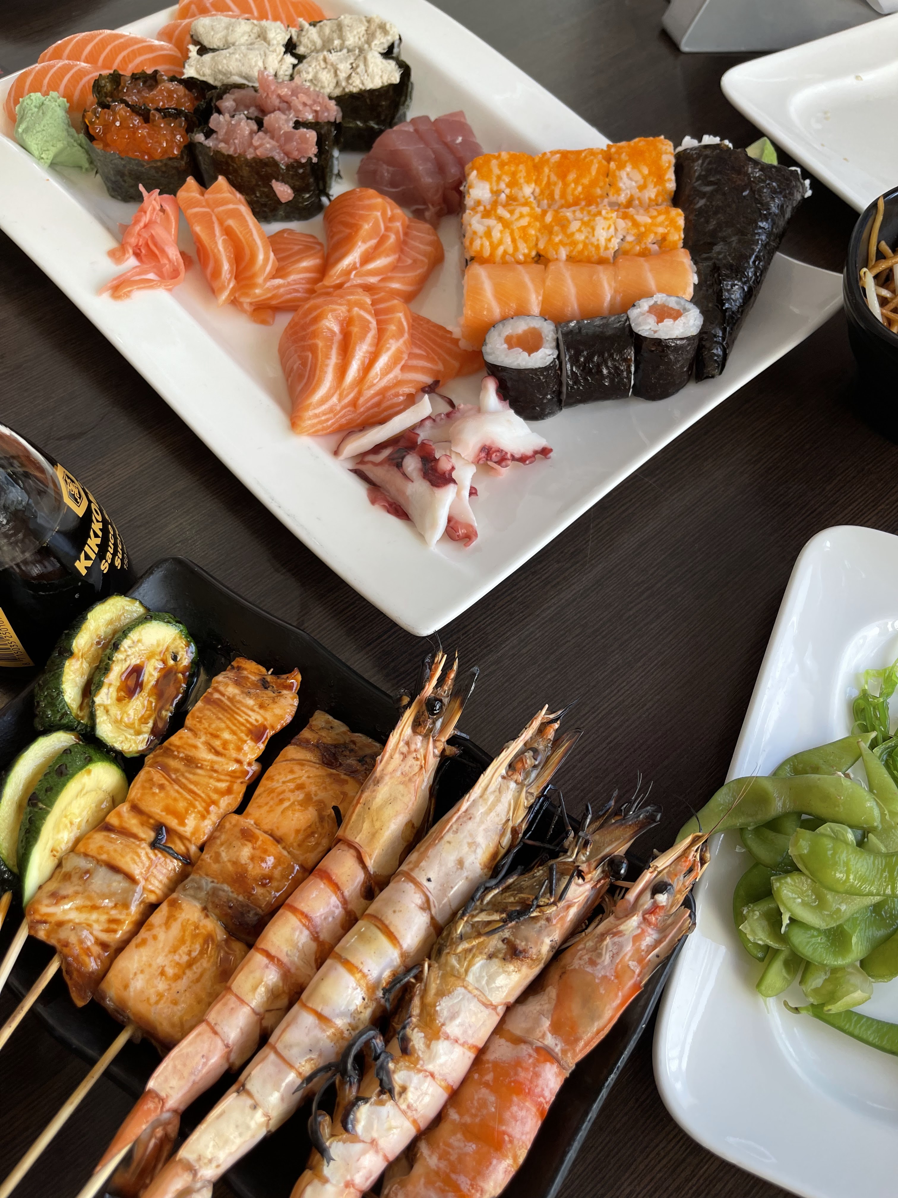 Poisson frais, les sushis sont pas trop excentrique permettant de rester sur des valeurs sûrs. Brochettes, fritures et viandes sont tous au menu. Toutes les saveurs classiques pour assurer le plaisir de tous. Prix pour un buffet à volonté correct. Seulement quelques bugs parfois avec la tablette en soirée lorsqu'il y a beaucoup de monde.
