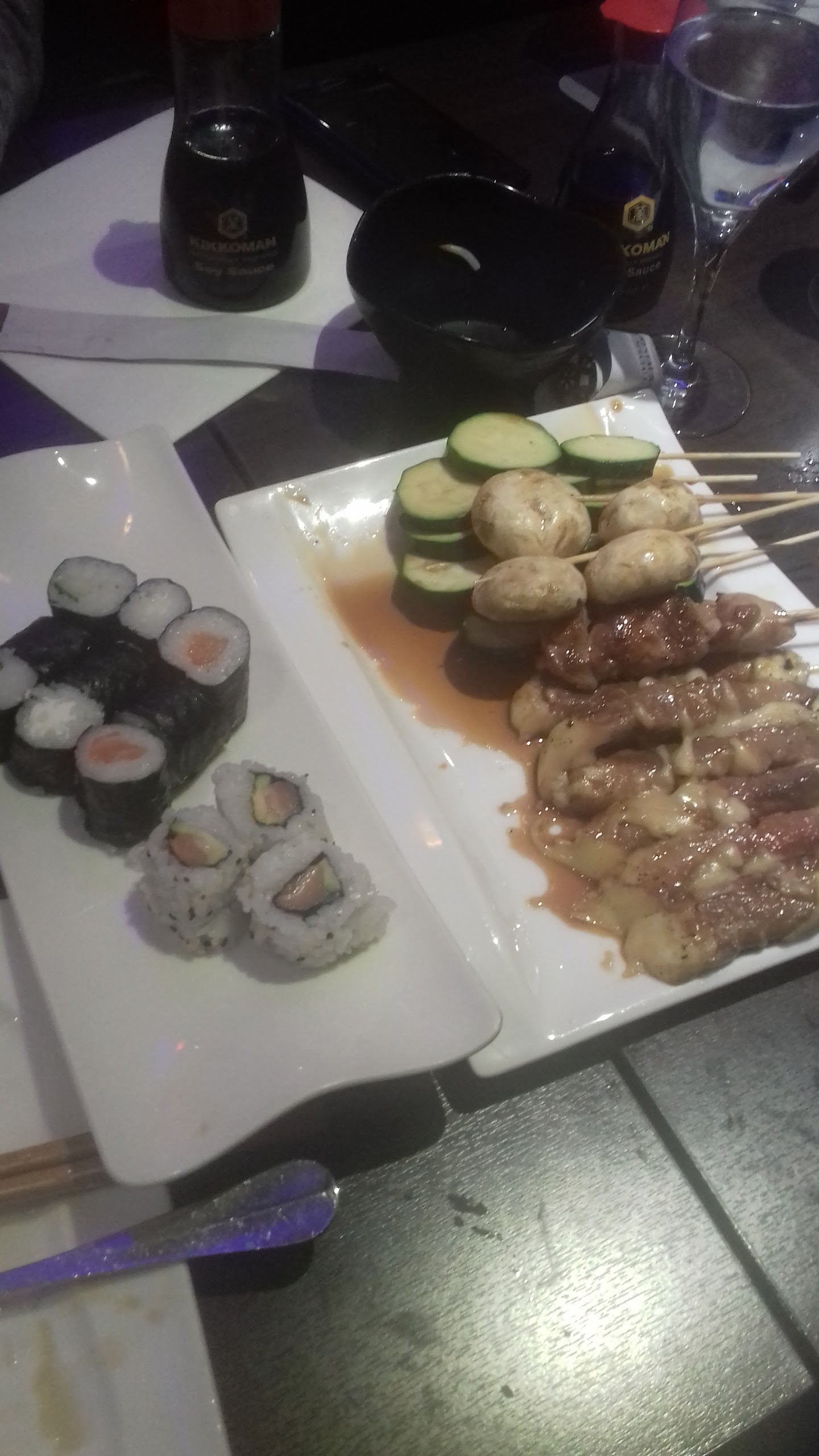 Je suis déjà venue plusieur fois et tout était très bon aucun soucis. Mais ce soir le service était à revoir même au niveau des cuisines ... mangeant que des sushis l'attente ne m'a pas dérangé (froid) mais mes amis qui on commandé des brochettes et autre on attendu une éternité et tout est venue froid .. en 1h nous avons était servis 2 fois alors qu'il y a la possibilité je passé commande toute les 15min avec leur tablette. Les sushis était bon mais tout le reste n'allais pas (raviolis pas cuit ainsi que les brochettes de boeuf ) juste le fait que ce soit venue froid voir tiède n'est pas acceptable. De plus je tiens à préciser que nous sommes déjà venue quand il y avait salle pleine et qu'il n'y a pas eu de soucis.. ce soir seul la moitié du restaurant était remplis...