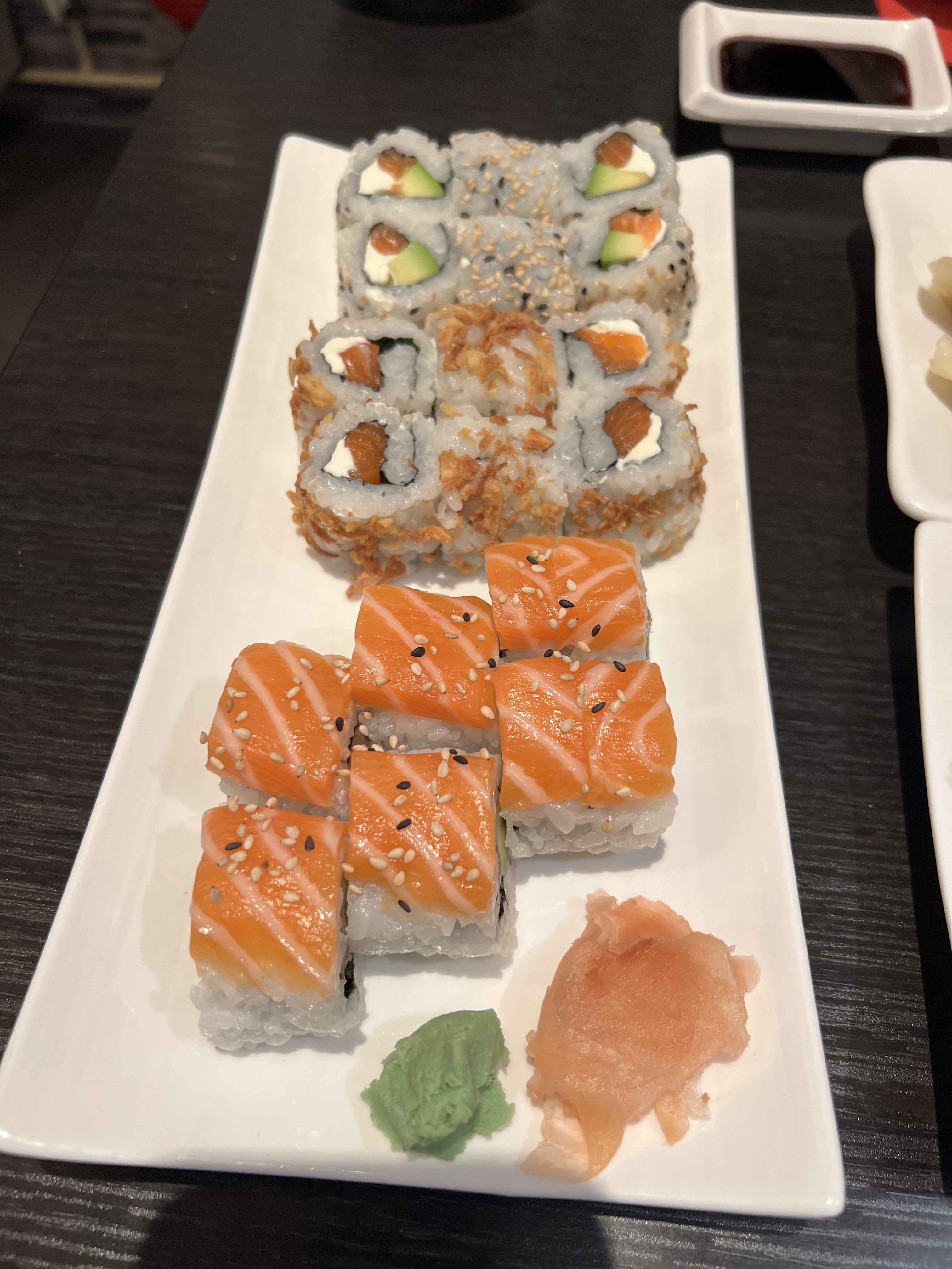 California pas bons et petits, on peut difficilement mettre moins de saumon. Service peu efficace, aucun plats servis en même temps.