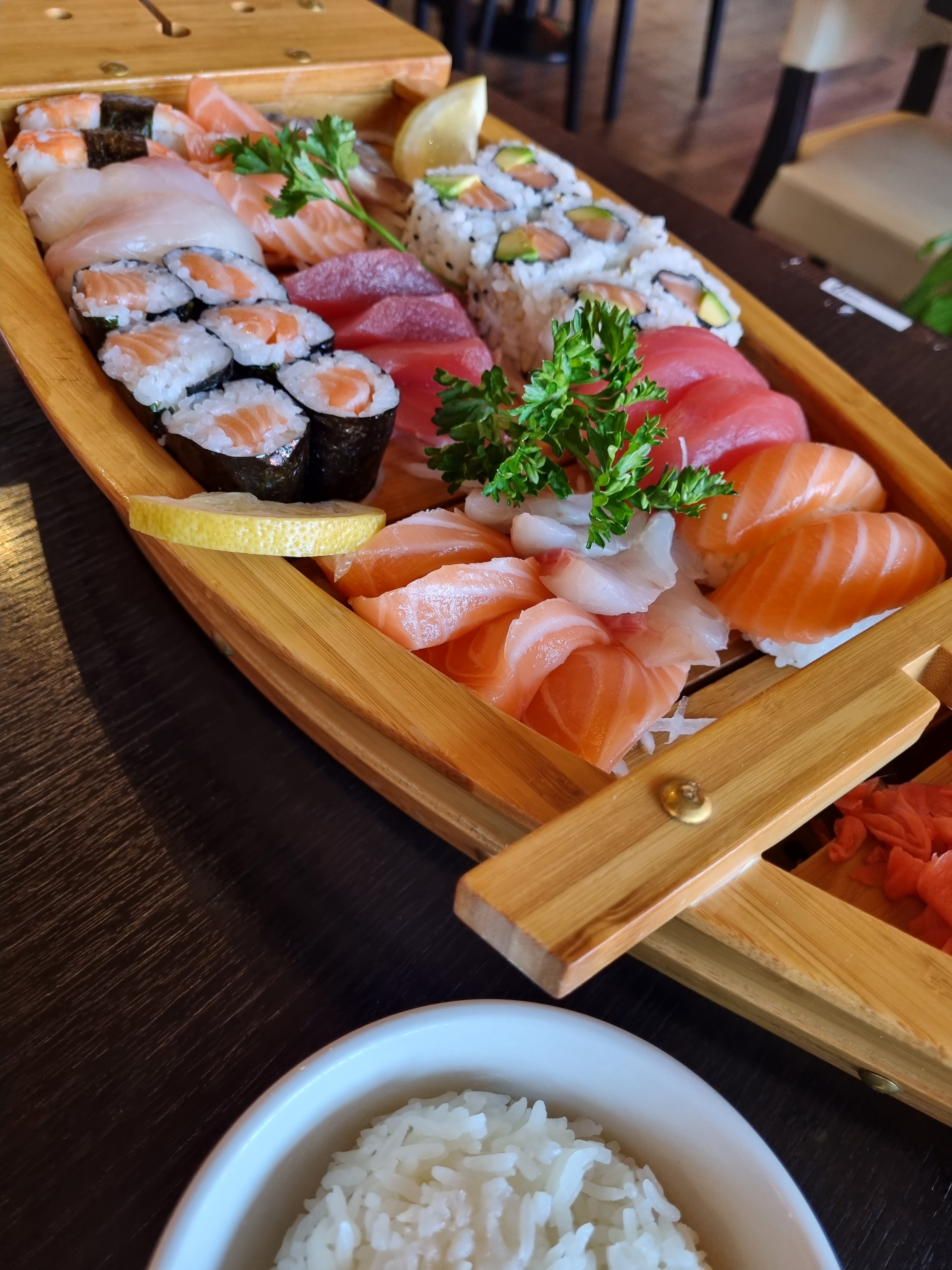 Après plusieurs passage sur place et à emporter, je décide enfin de mettre un avis. Premièrement le restaurant est très chaleureux, très joli. Les serveurs sont top, et n'en parlons pas de Sushi. Ce restaurant est dans mon top 3 des meilleurs restaurant japonais. Je n'ai jamais été déçue, les produits sont frais et la carte propose un large choix de plats.