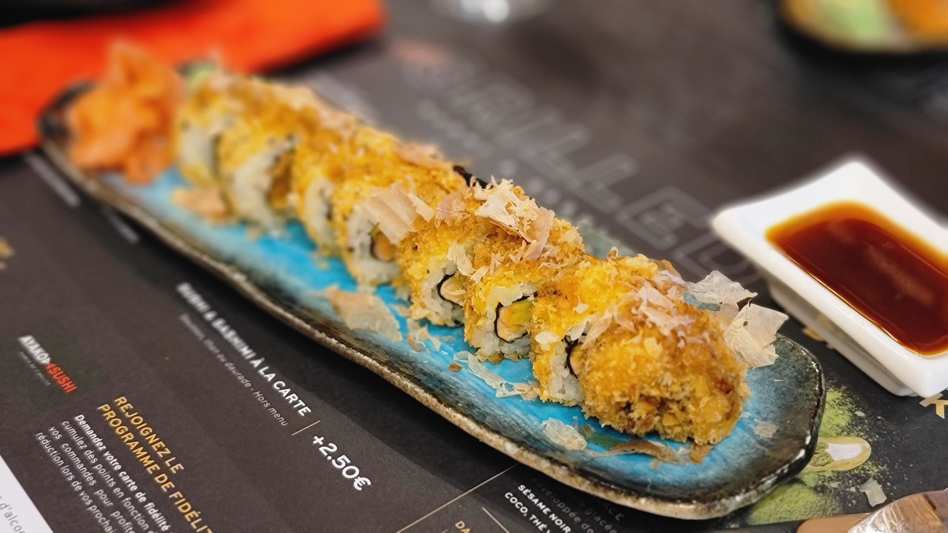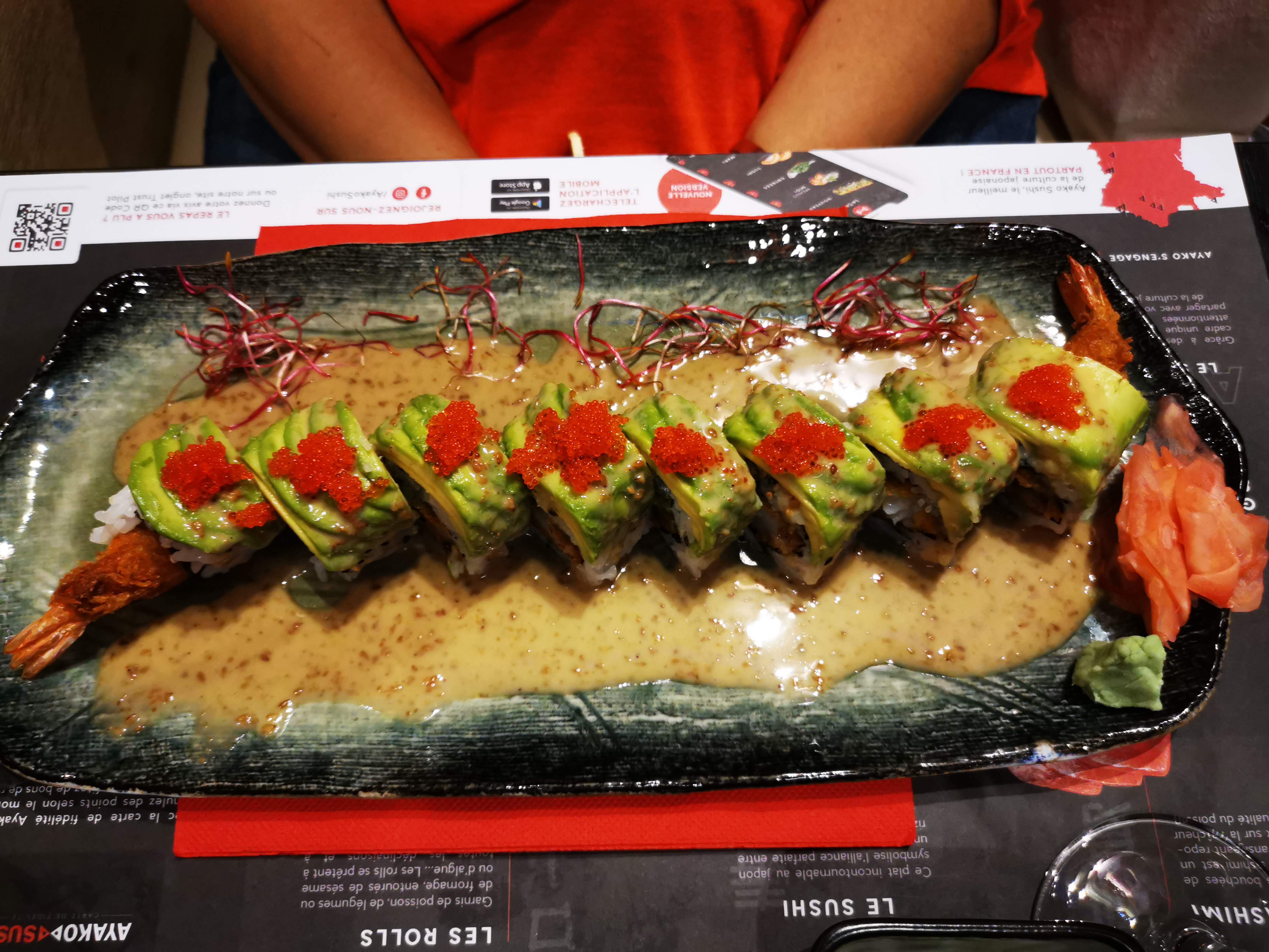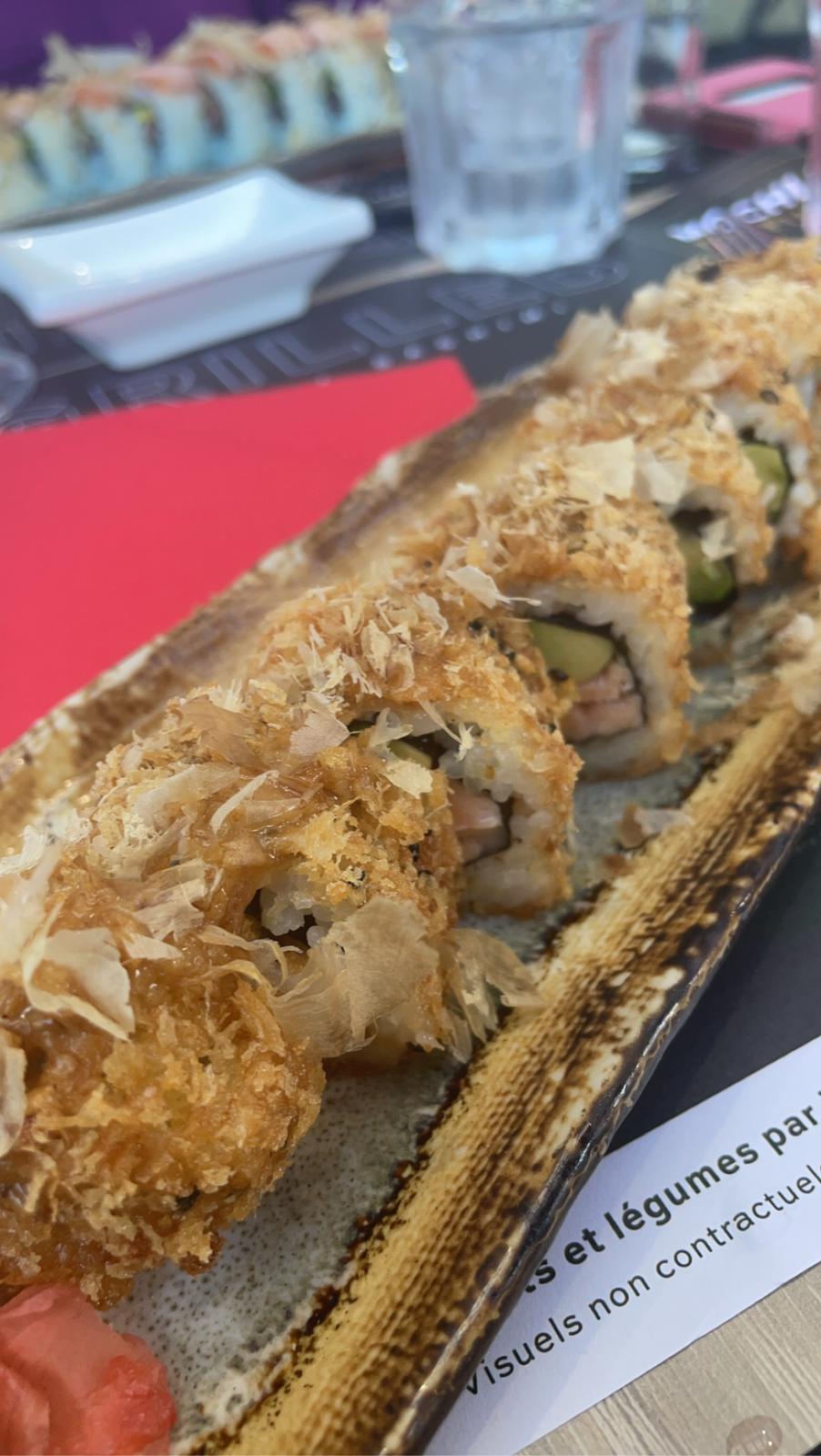 Le dragon roll est succulent!!! Les oeufs de lump sont éclatants. Le fried roll croustillant!!! Les sashimis thon / saumon sont au top niveau fraîcheur et quantité... Si les morceaux étaient coupés plus fins ça ne deviendrait pas vite écœurant...ou alors, laisser couteau et fourchette. La salade saumon avocat généreuse à un prix mini!!!