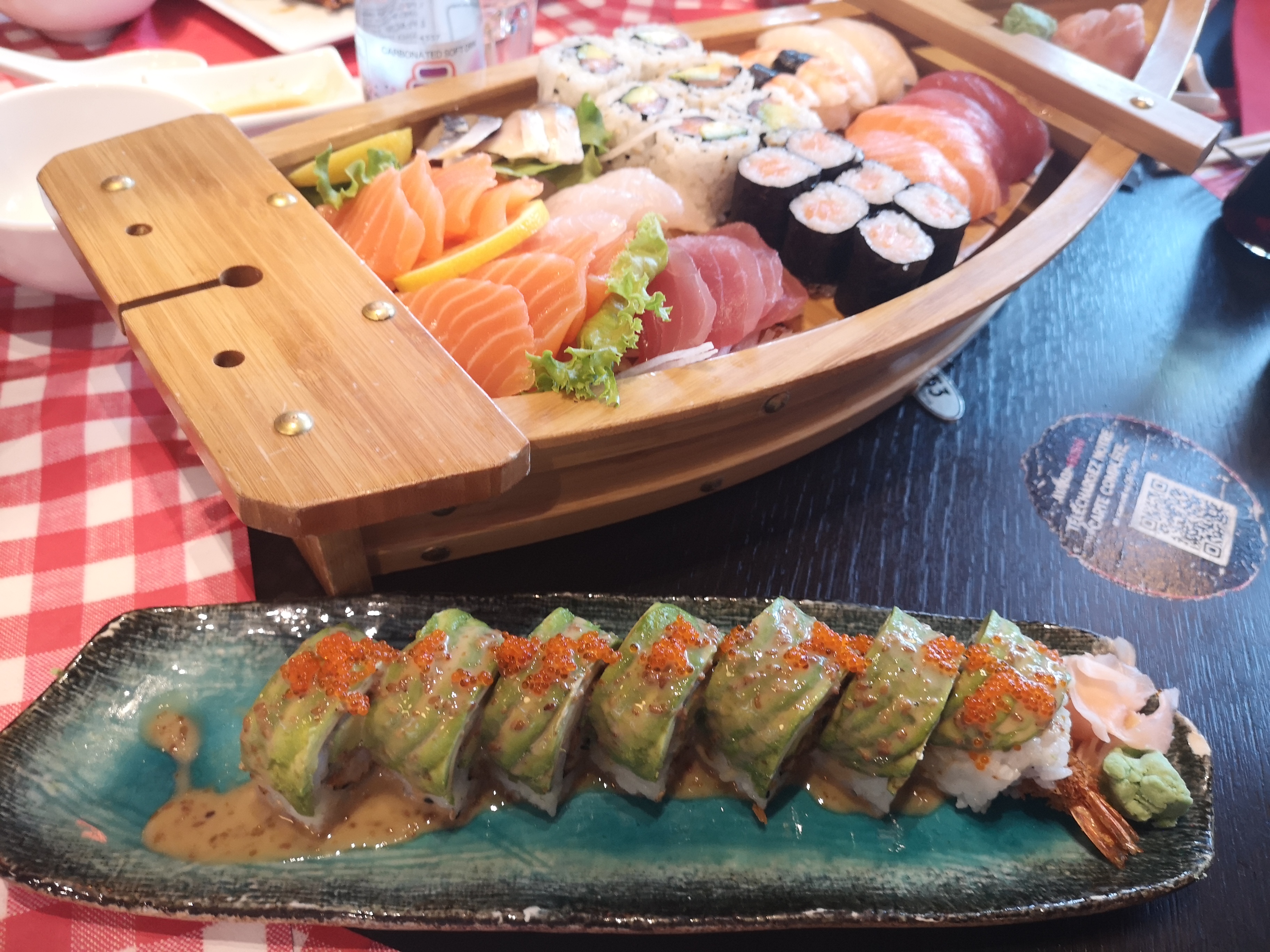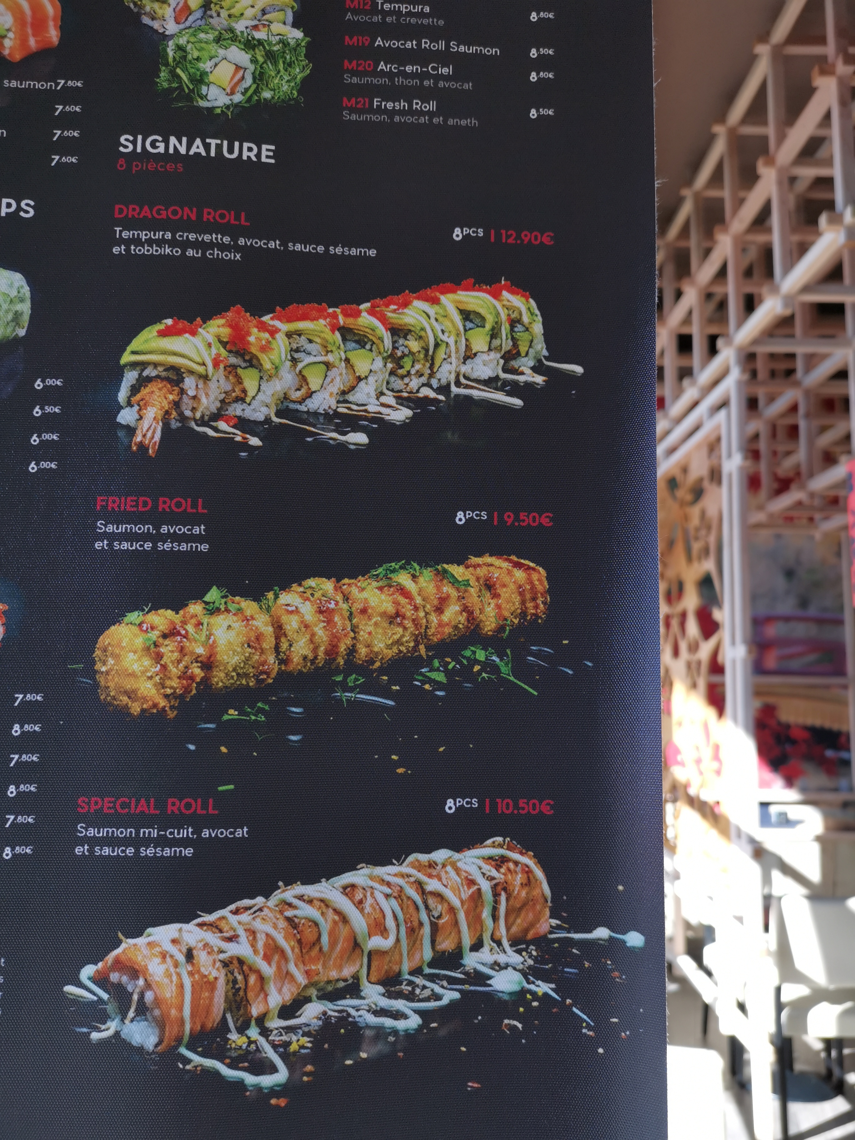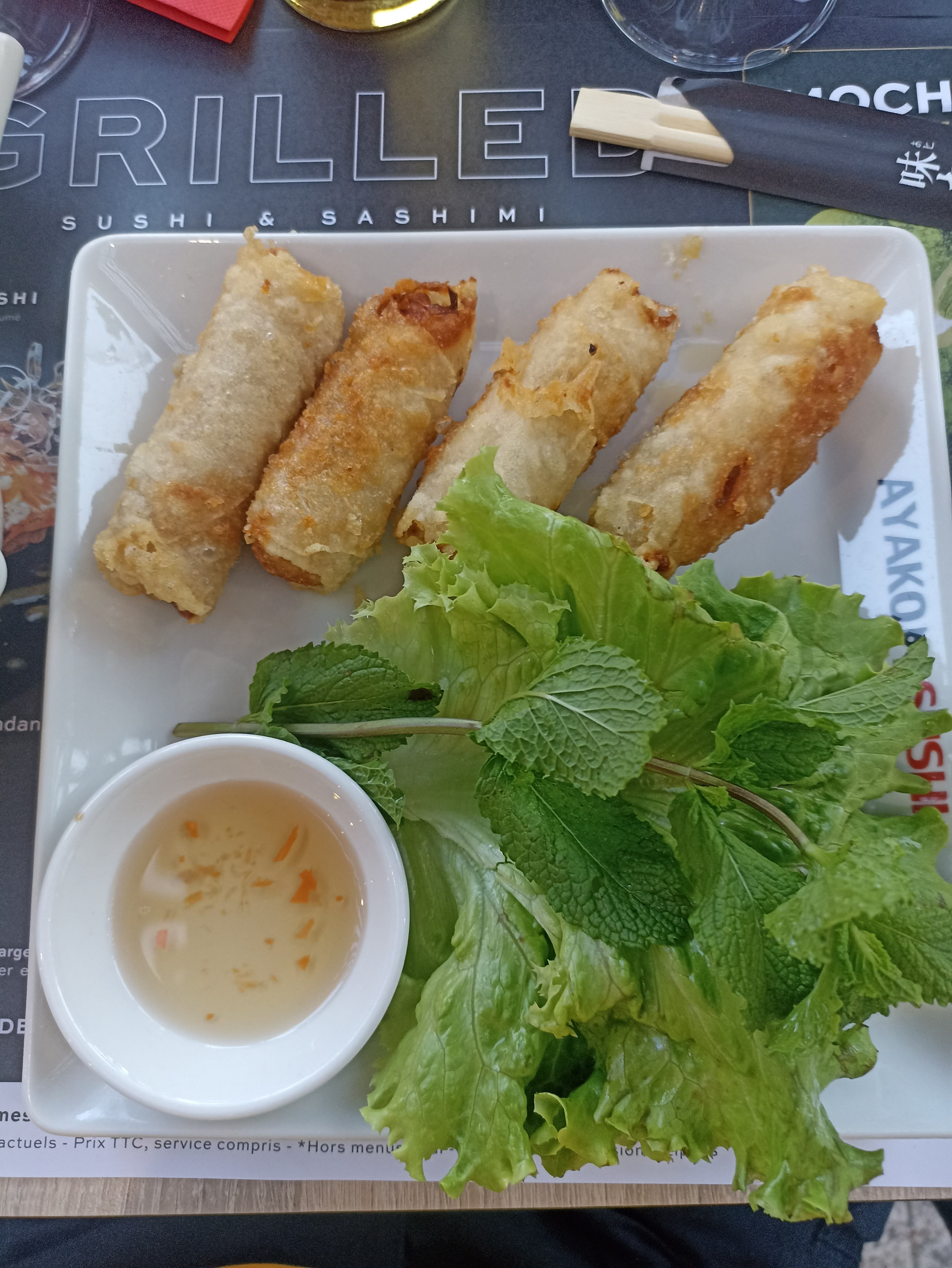 Le dragon roll est succulent!!! Les oeufs de lump sont éclatants. Le fried roll croustillant!!! Les sashimis thon / saumon sont au top niveau fraîcheur et quantité... Si les morceaux étaient coupés plus fins ça ne deviendrait pas vite écœurant...ou alors, laisser couteau et fourchette. La salade saumon avocat généreuse à un prix mini!!!