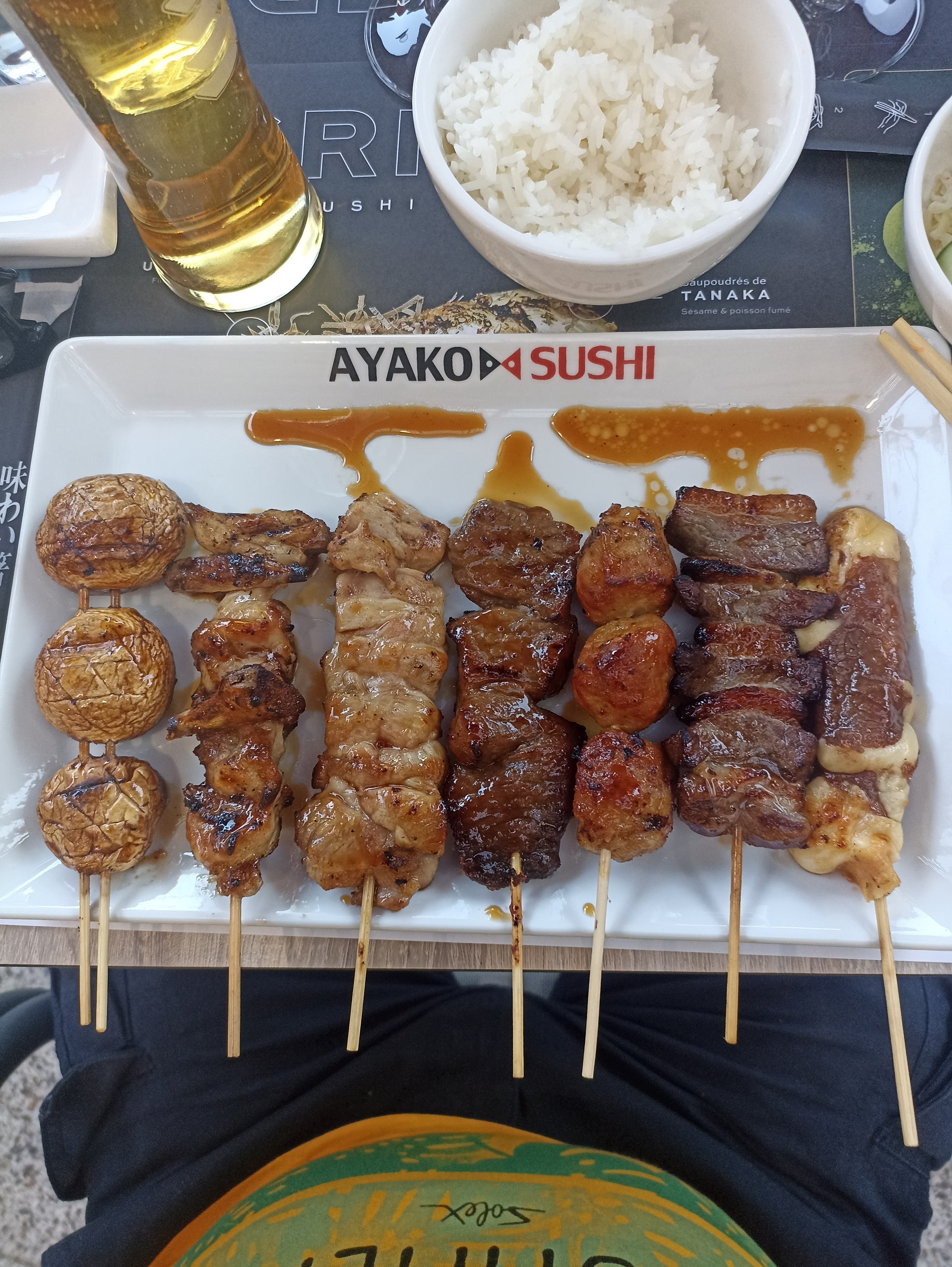 Posté le 25/11/2019 à 12:42"Un restaurant plutôt spacieux avec une terrasse agréable. L'équipe du service est jeune et chaleureuse. Tout allait bien jusqu'à l'attente pour la prise de commande et pour le service, assez longue. Pour ce qui est des menus, le choix est large. Il manque, d'après moi, de gros menus individuels Sushi/Maki. Les brochettes sont bonnes. Nous avons moins apprécié celles au Boeuf/Fromage. En conclusion, le repas était plutôt correct. Nous reviendrons tout de même pour voir l'évolution de ce restaurant. La note attribuée est de 3,5/5."