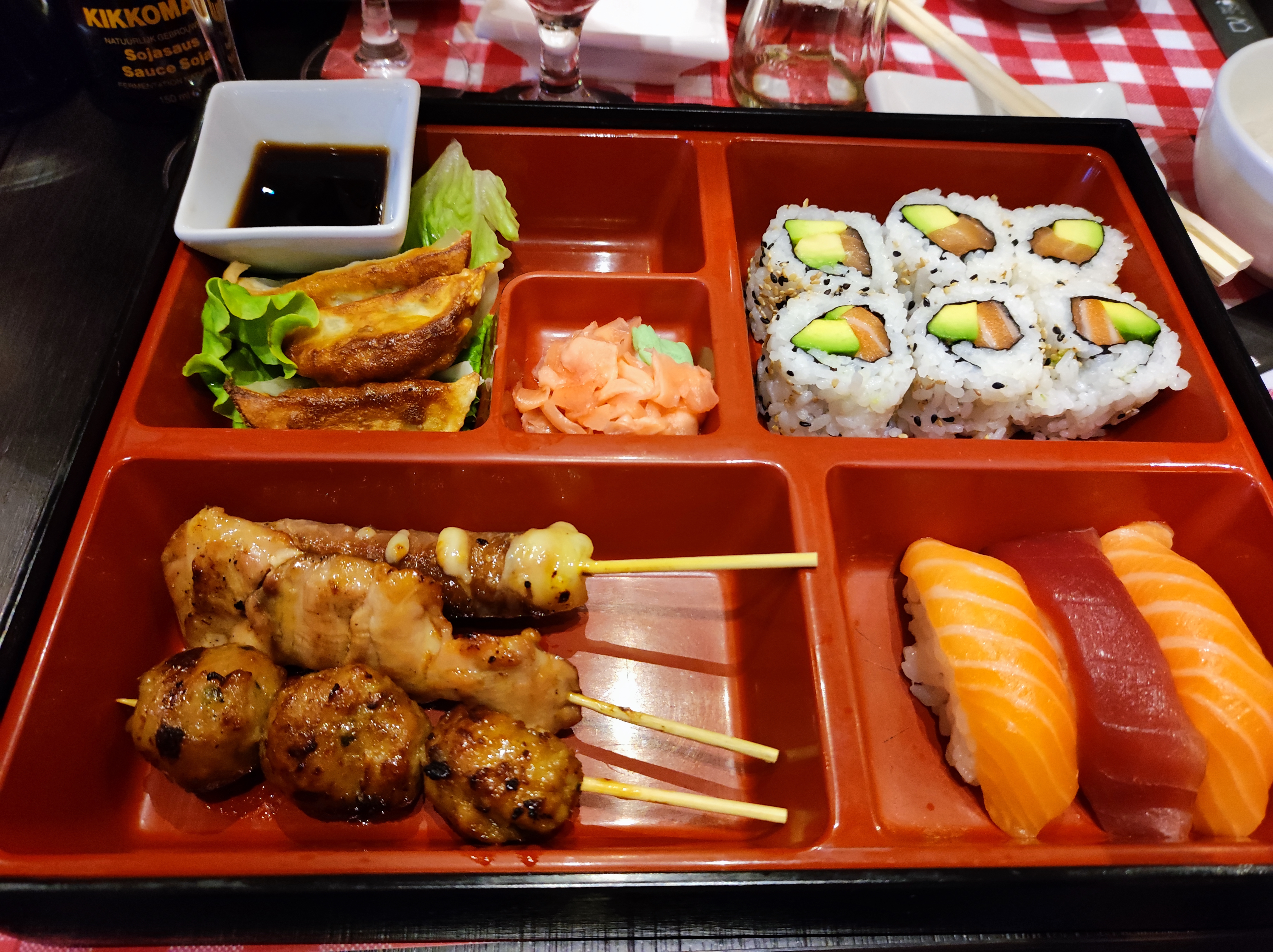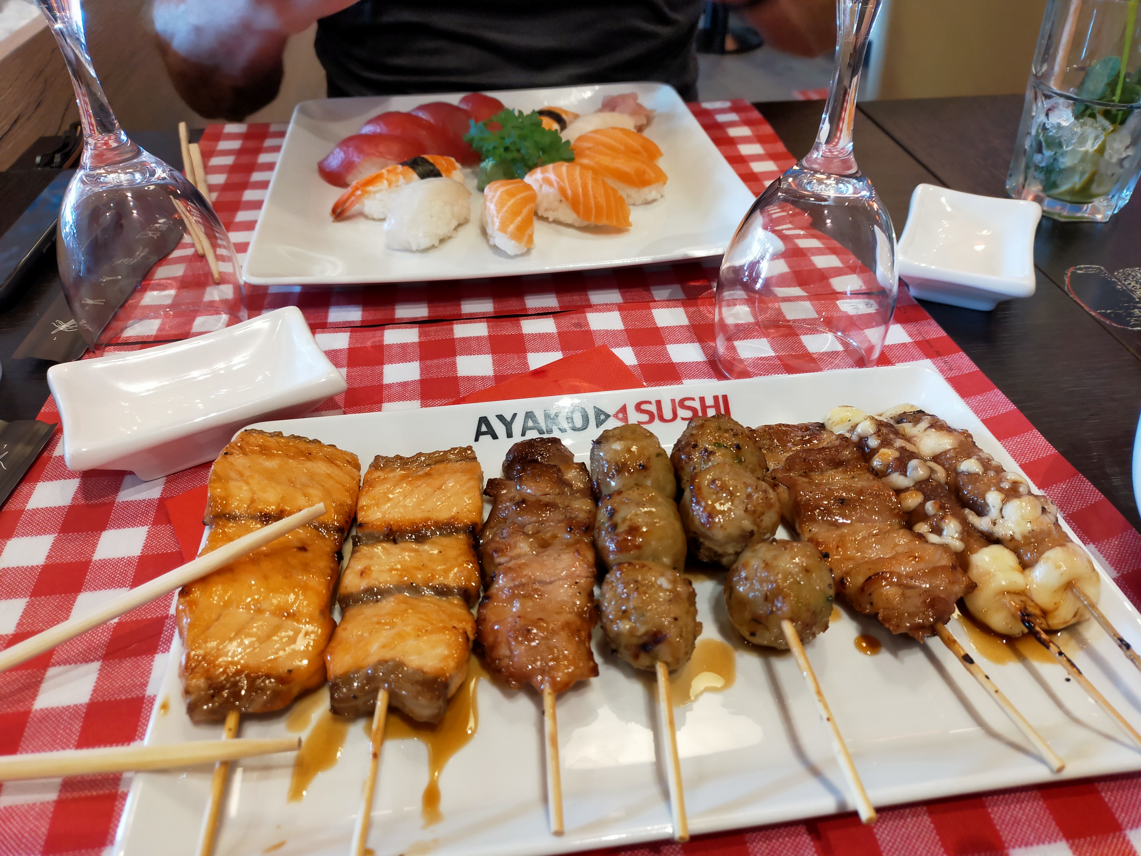 Un restaurant plutôt spacieux avec une terrasse agréable. L'équipe du service est jeune et chaleureuse. Tout allait bien jusqu'à l'attente pour la prise de commande et pour le service, assez longue. Pour ce qui est des menus, le choix est large. Il manque, d'après moi, de gros menus individuels Sushi/Maki. Les brochettes sont bonnes. Nous avons moins apprécié celles au Boeuf/Fromage. En conclusion, le repas était plutôt correct. Nous reviendrons tout de même pour voir l'évolution de ce restaurant. La note attribuée est de 3,5/5.