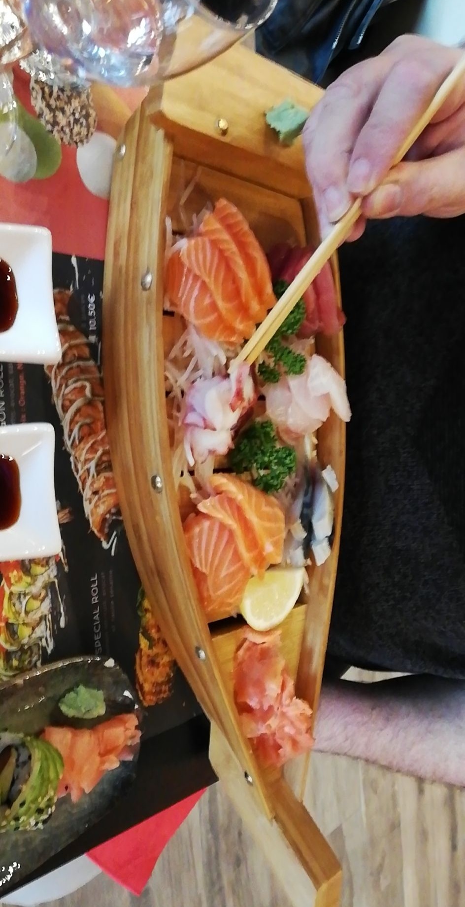 Nous avons commandé à emporter pour l’anniversaire de mon fils. C’était la première fois que je commandais ici et j’avais un peur que ce ne soit pas à la hauteur de l’événement mais tout était délicieux. Encore meilleur que ce que j’espérais finalement !!! On s’est tous régalés, même moi qui n’aime pas spécialement les sushis habituellement. Nous reviendrons c’est sûr.