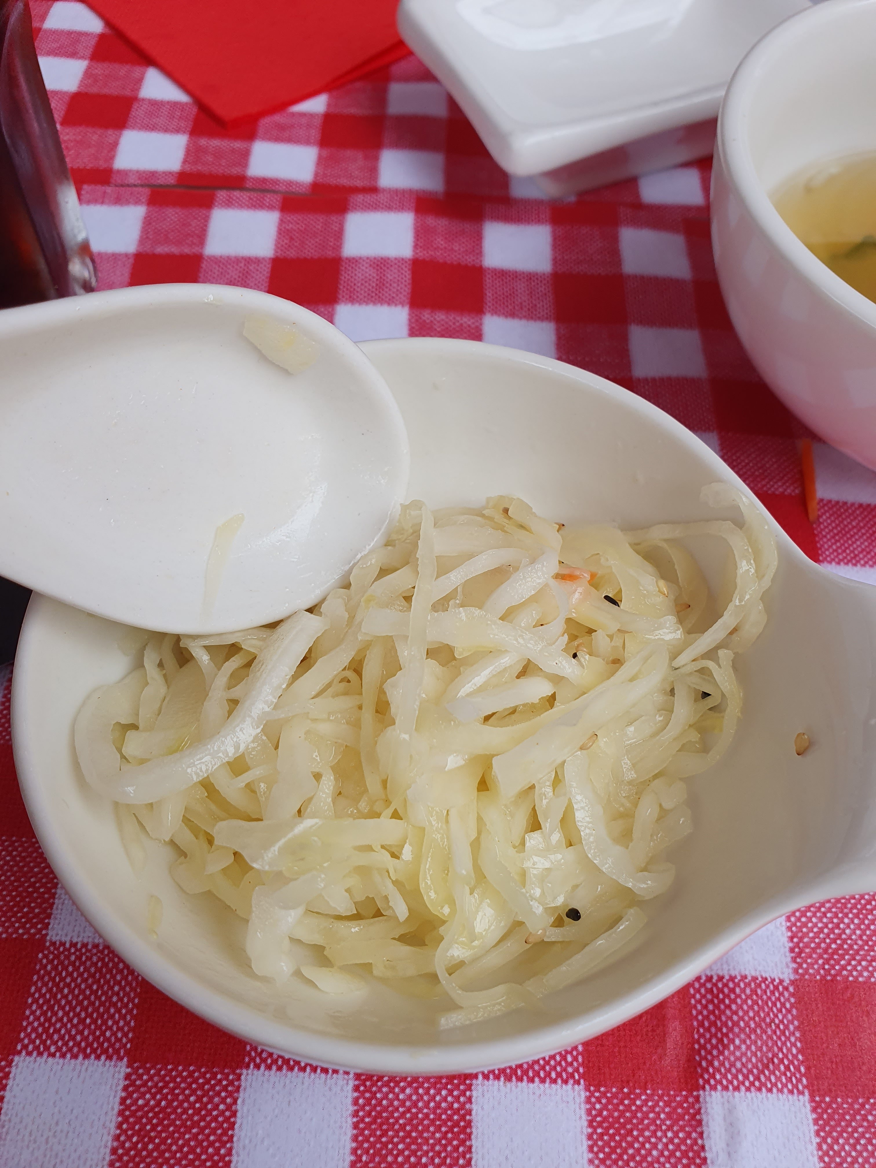 Serveurs très aléatoires, j’ai commandé un menu et ils ont oublié de me servir le riz, on sentait que l’ambiance n’était pas fofolle. Je suis assez déçue même si la cuisine était plutôt bonne…