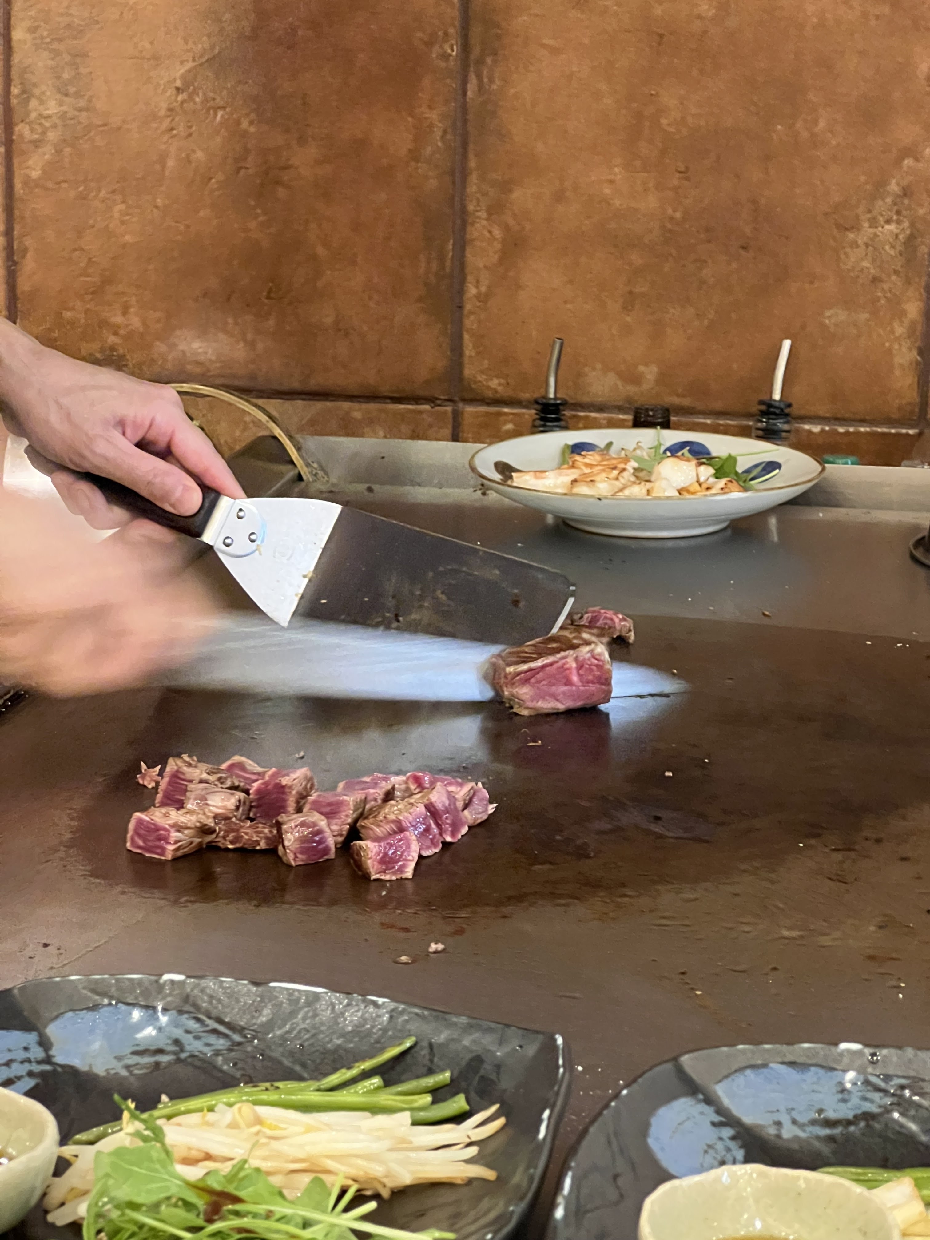 J'ai passé un très bon moment, le personnel est très agréable bien que discret. Possibilité de s'assoir autour du tepanyaki et de voir le chef œuvrer. Pour ma part j'ai pris le bœuf Wagyu qui était juste parfait. Des suggestions du chef qui changent toutes les saisons. Très bonne adresse et les tarifs sont élevés mais justifiés.