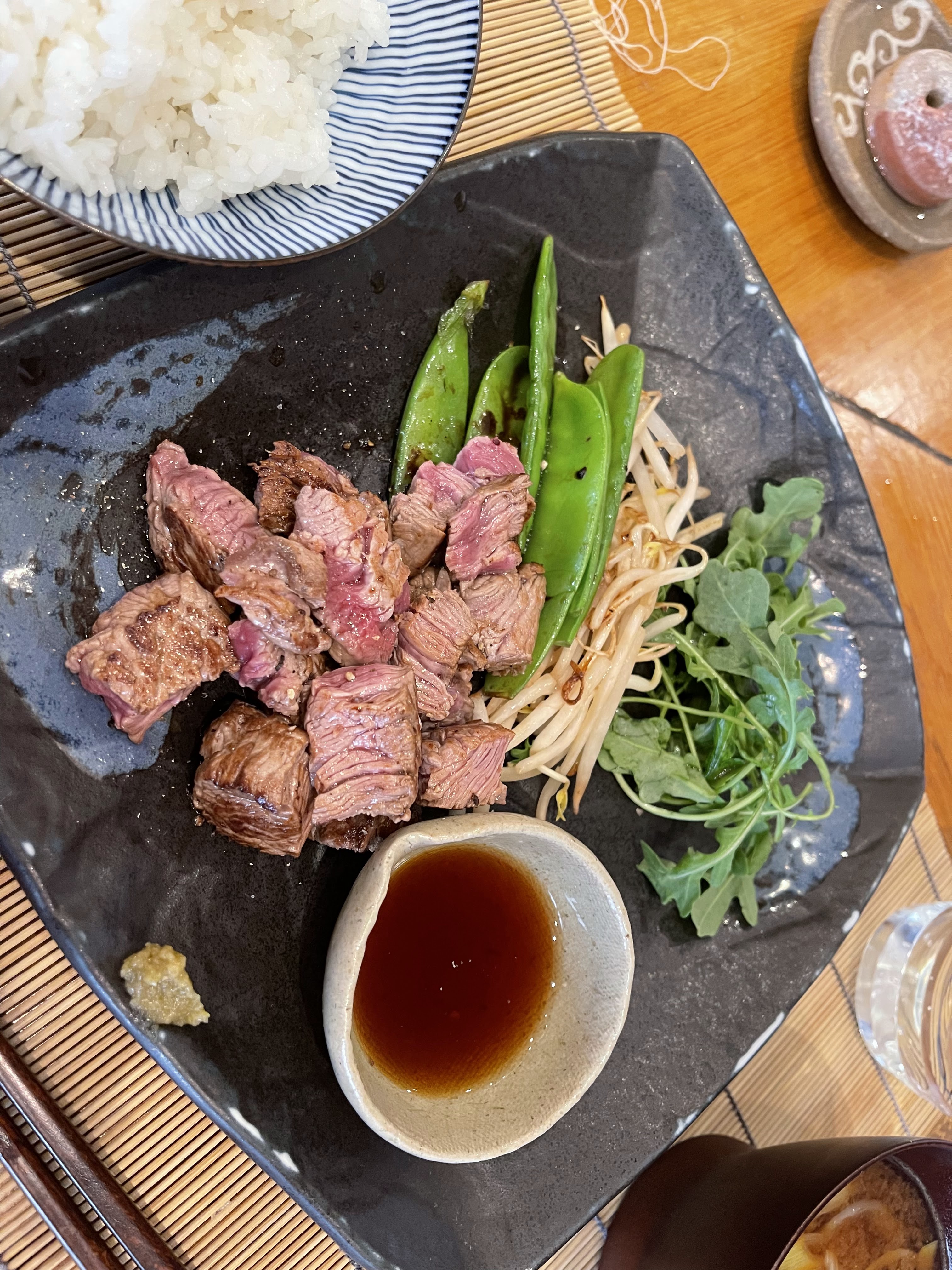 Comme au Japon. Je n’avais pas retrouvé ce cadre et ces mets depuis mon voyage. Cet endroit se prête au voyage nippon, pour un rapport qualité / prix imbattable. Mention spéciale aux toilettes, une aventure poétique à découvrir. Pour les plats, le menu à 49 euros est très complet : un amuse bouche, une entrée, un consommé, plat et dessert. Le coup de cœur a été sur la qualité du saumon cru, et le bœuf Wagyu biensur. Mais un petit ❤️ pour le tiramisu au sésame, qui n’a rien d’un tiramisu mais tout de japonais !