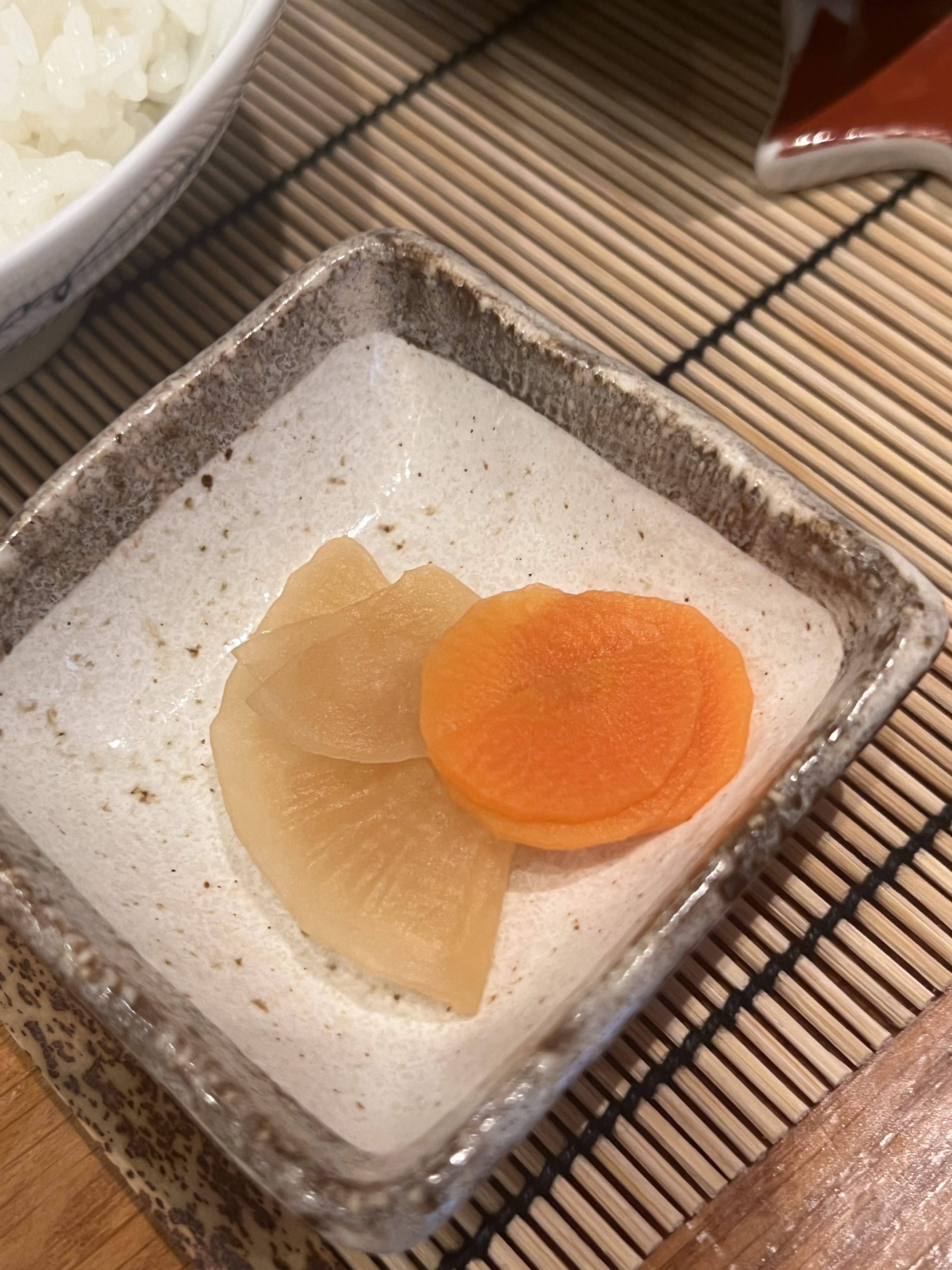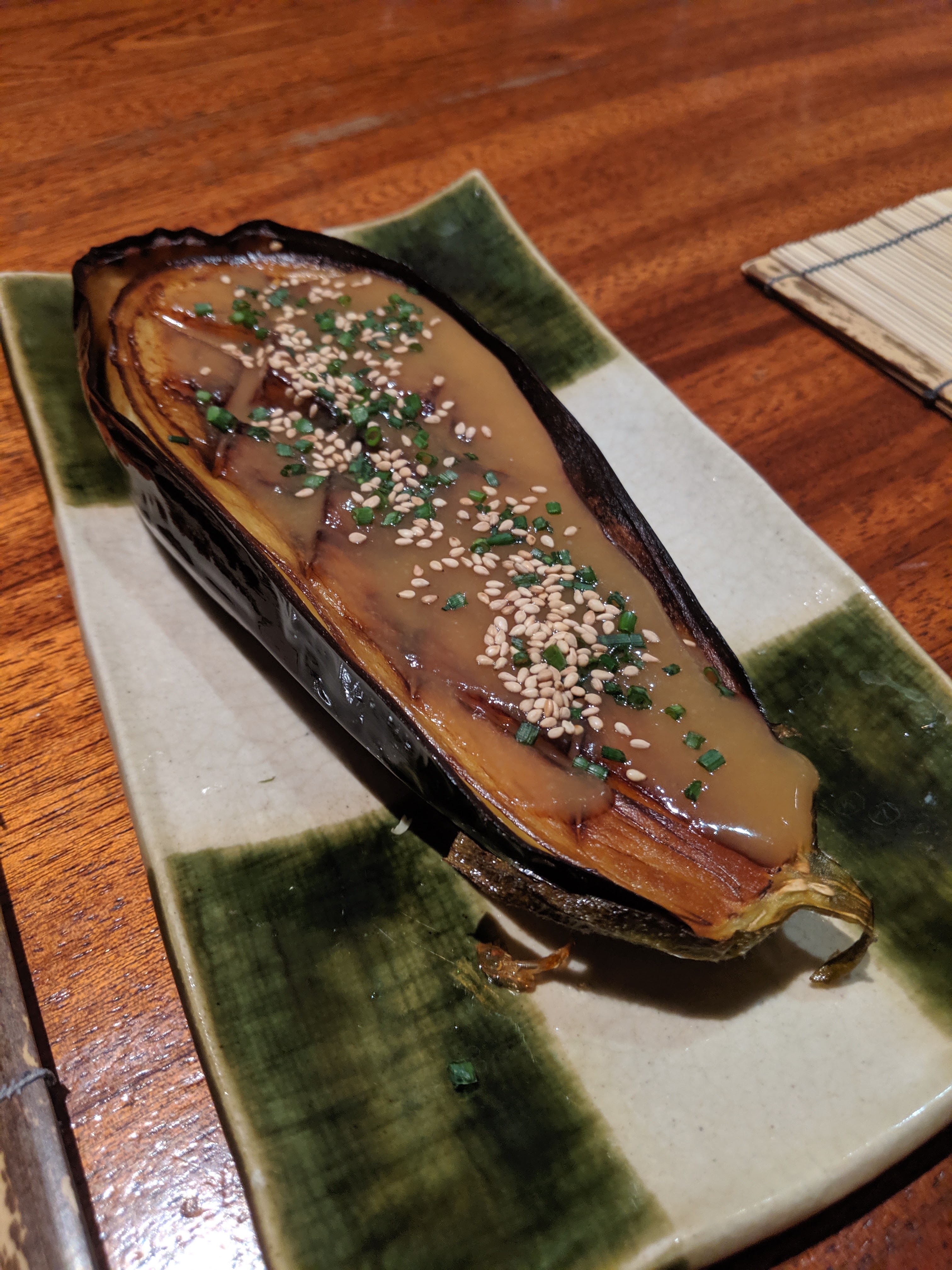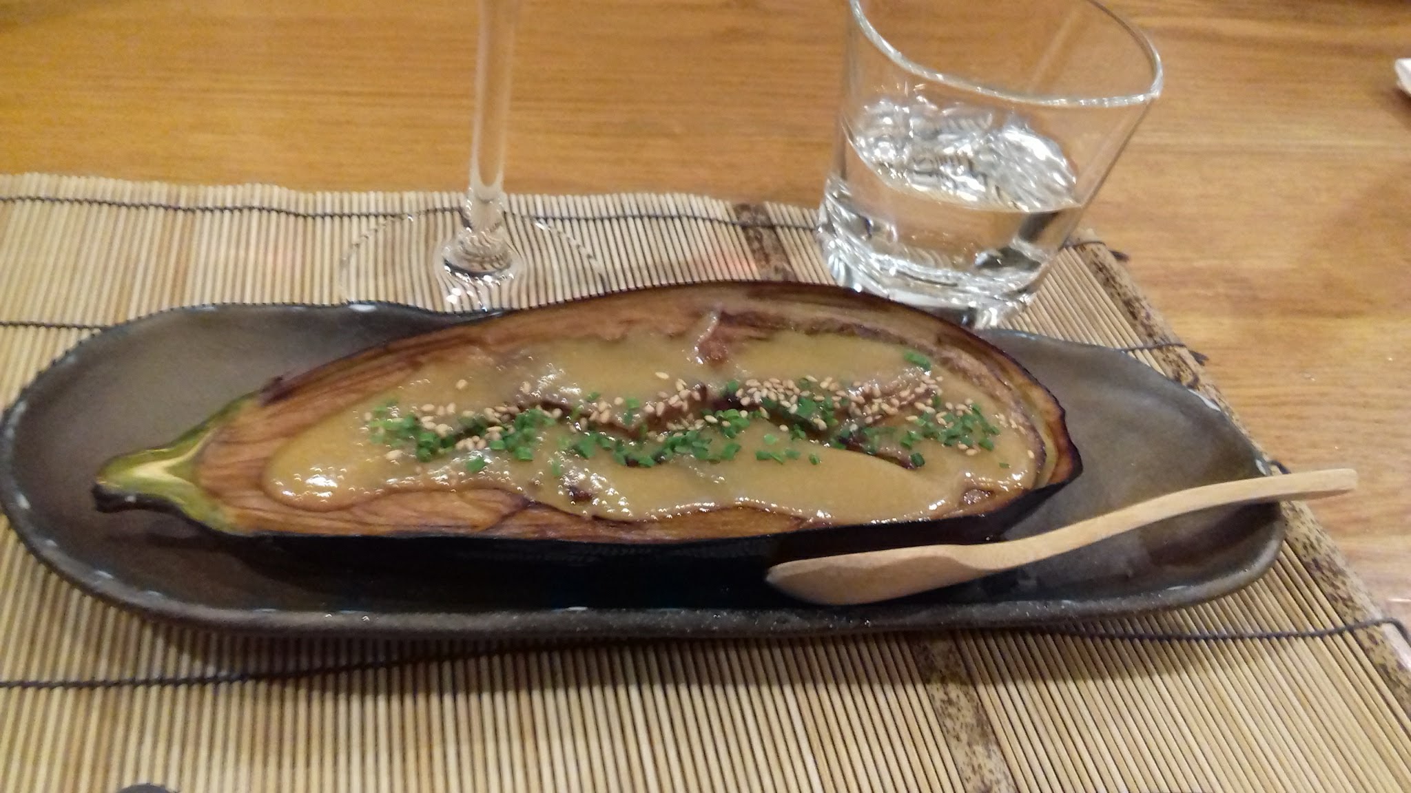 Très joli restaurant (toilettes sublimes haha). Serveuses vraiment très gentilles et attentionnées : ça s'enchaîne vite, efficacité japonaise, quoi. Mais attention bien ranger ses baguettes à leur place 😂 Niveau bouffe : petit amuse-bouche offert par la maison. Entrée : aubergine au miso vraiment délicieuse. Petites galettes de viande très bonnes mais un peu just ça sur la quantité pour le prix. Plat : foie gras au miel sur du riz. Très bon, mais la sauce au miel était un peu forte, je ne sentais plus vraiment le goût du foie gras. C'est dommage mais ça restait tout de même savoureux. Nous y retournerons à l'occasion et je recommande chaleureusement cette adresse