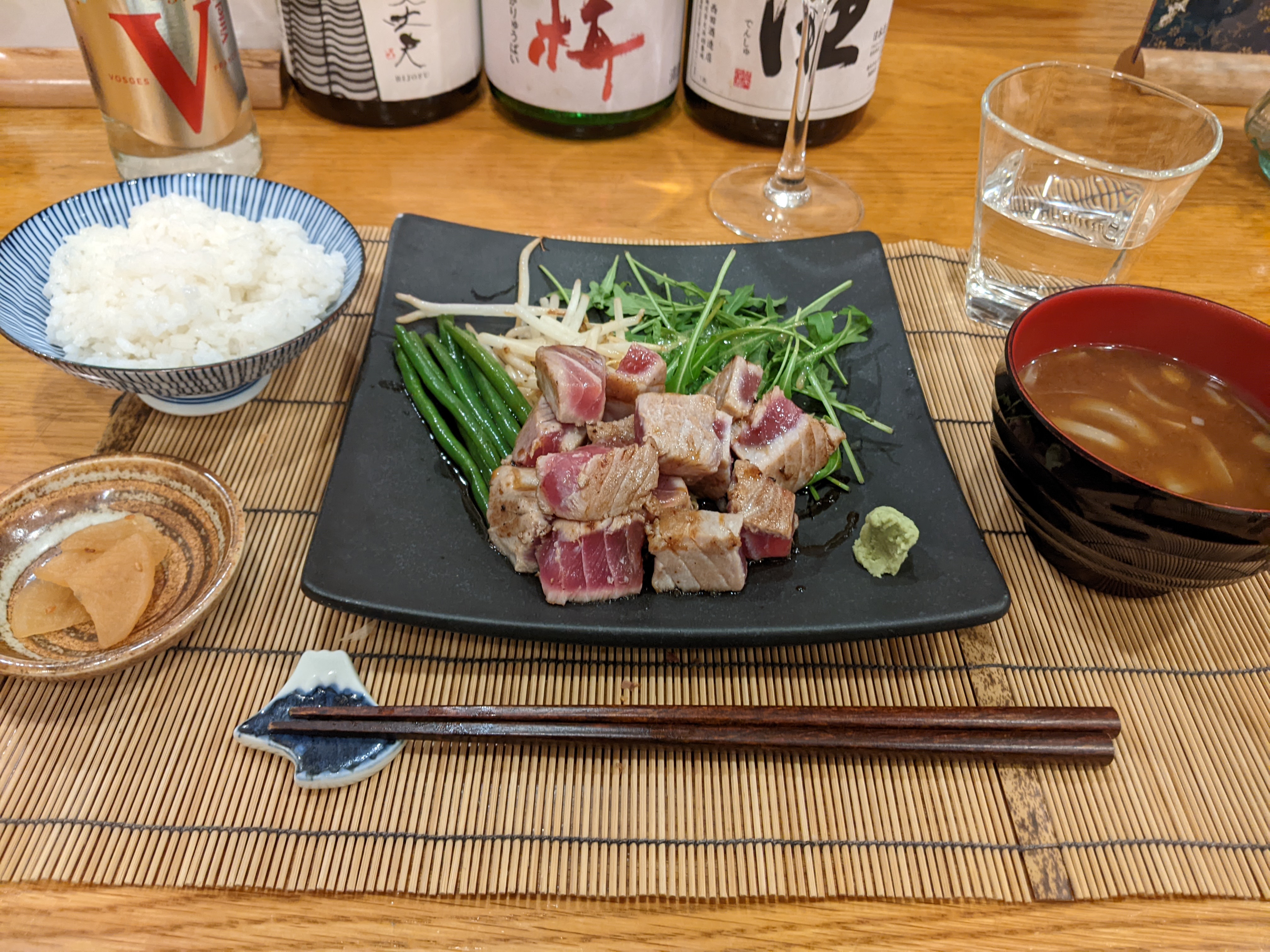 Super restaurant japonais!! A faire absolument! Le steak de thon est terrible! J'ai pris un bento il y avait des sushi au caviar quelle surprise! Trop bon! Accueil chaleureux, service au top! J'adore ce restaurant! Nous avons rencontrer un vendeur de sake nous avons bien discuter ensemble. Super conseil sur l'apero. Essayer le sake au yuzu ou peche :) je vous le recommande!