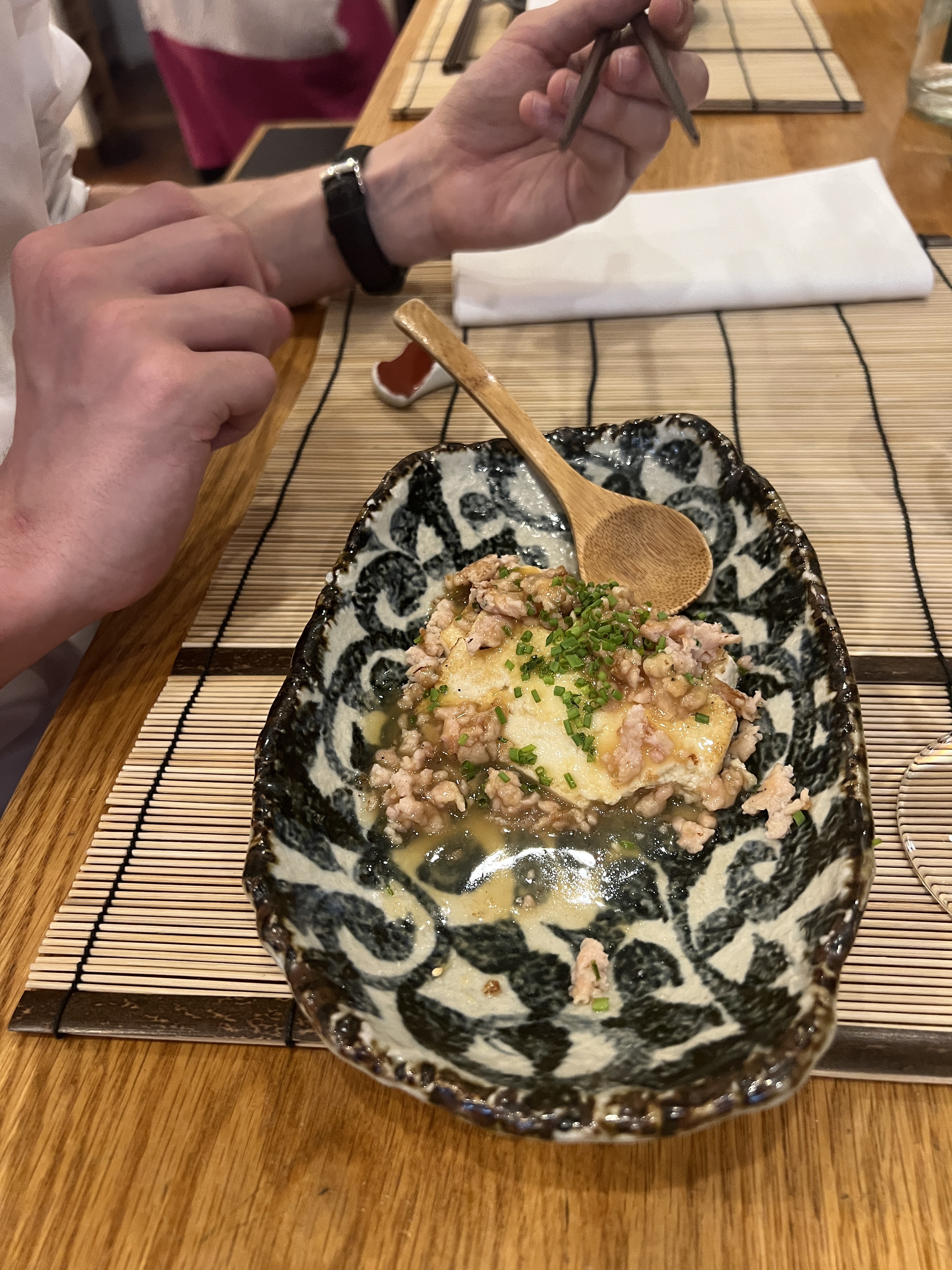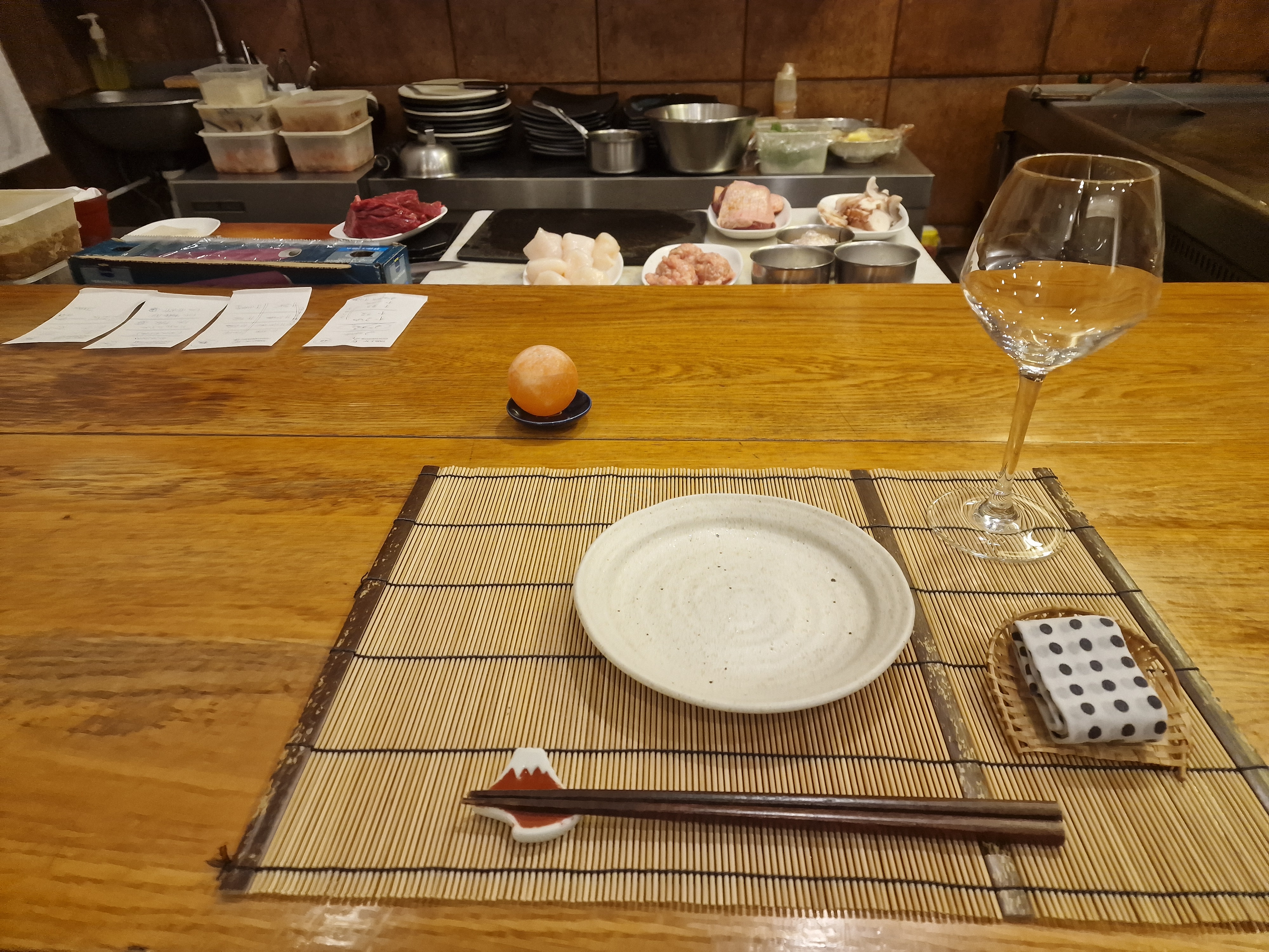 Venu en famille pour retrouver les parfums d'un pays que j'ai plusieurs dois visité. Toutes les assiettes et bols sont répartis vides. C'est un signe qui ne trompe pas. La réservation peu être un plus si vous voulez être assis devant le chef. Grande table au sous sol pour 10 couverts.
