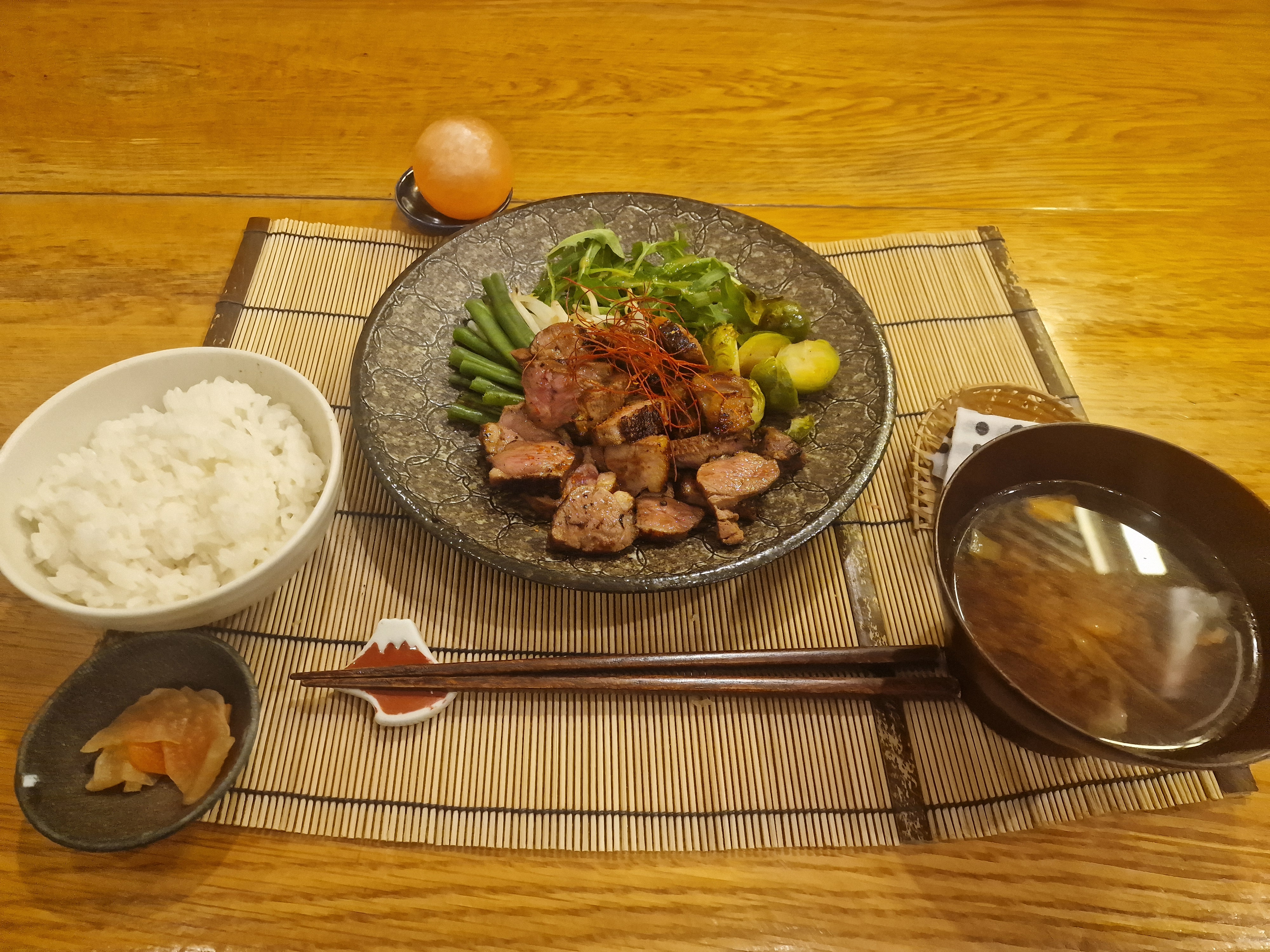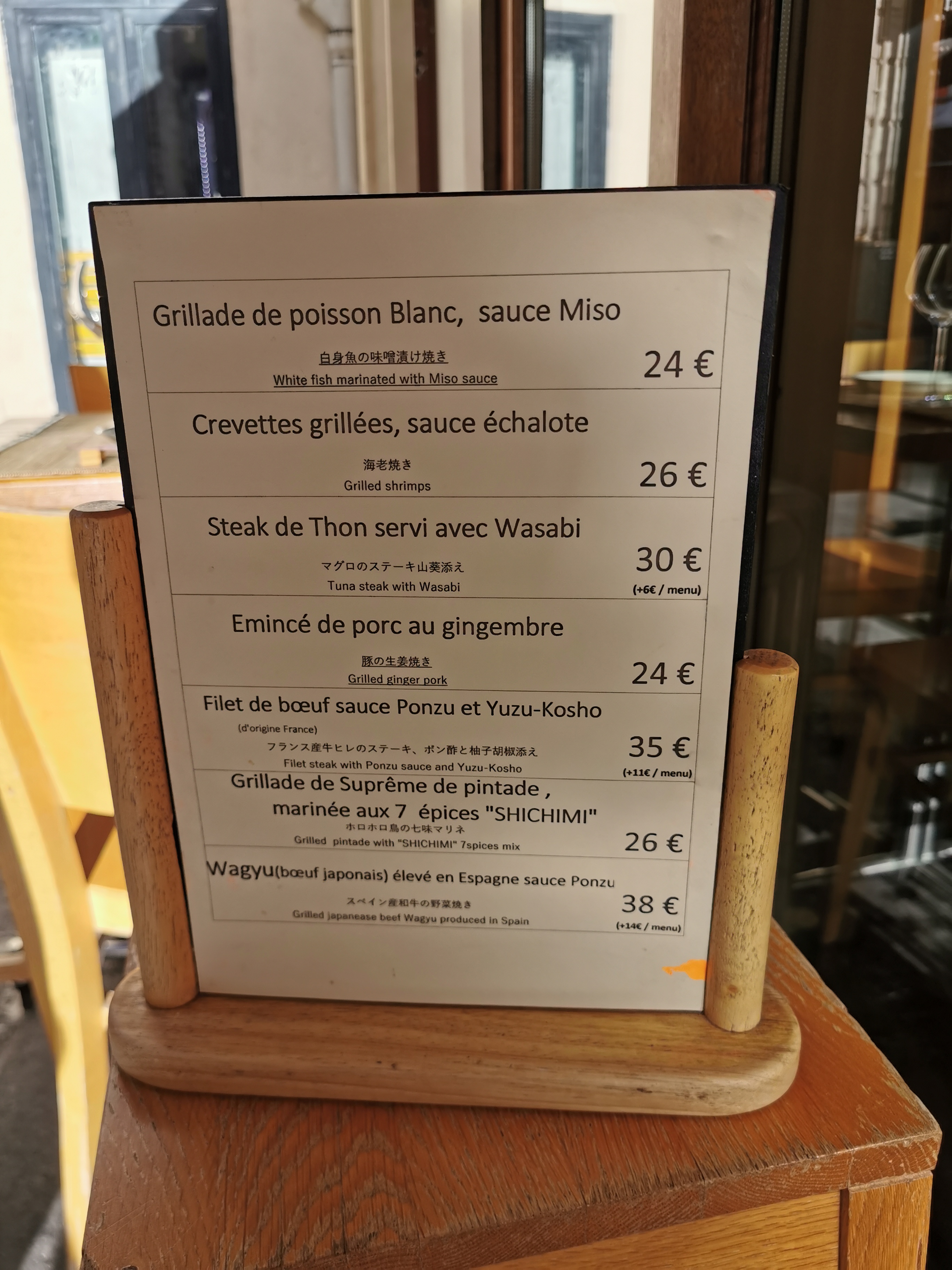 Cadre et personnel agréable. Nous avons passé une bonne soirée et, dans l’ensemble, bien mangé (les aubergines en entrée étaient succulentes !). Cependant, nous sommes venus spécialement pour le wagyu et nous avons été déçu par rapport à celui que nous avons mangé au Japon. La viande est plutôt bonne mais n’a pas du tout le même goût. Un autre point à noter : nous avons été surpris de constater que ni les serveuses ni le chef cuisinier ne portaient de masque.