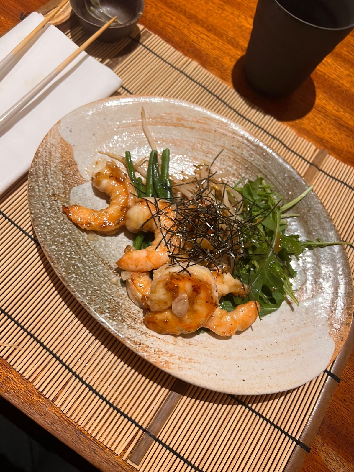 Le personnel du restaurant fait preuve d'une grande amabilité et assure un service de qualité. L'aménagement de l'endroit ainsi que la disposition des tables sont parfaitement appropriés. Les entrées telles que l’œuf à la vapeur et les champignons ont délicieux, bien que leur préparation ne semble pas excessivement complexe. Cependant, en ce qui concerne le plat principal, à savoir le plat de crevettes, on observe un manque d'harmonie dans l'association des ingrédients. La combinaison des légumes et des crevettes semble quelque peu rigide, sans que l'ensemble ne soit véritablement supérieur à la somme de ses parties.