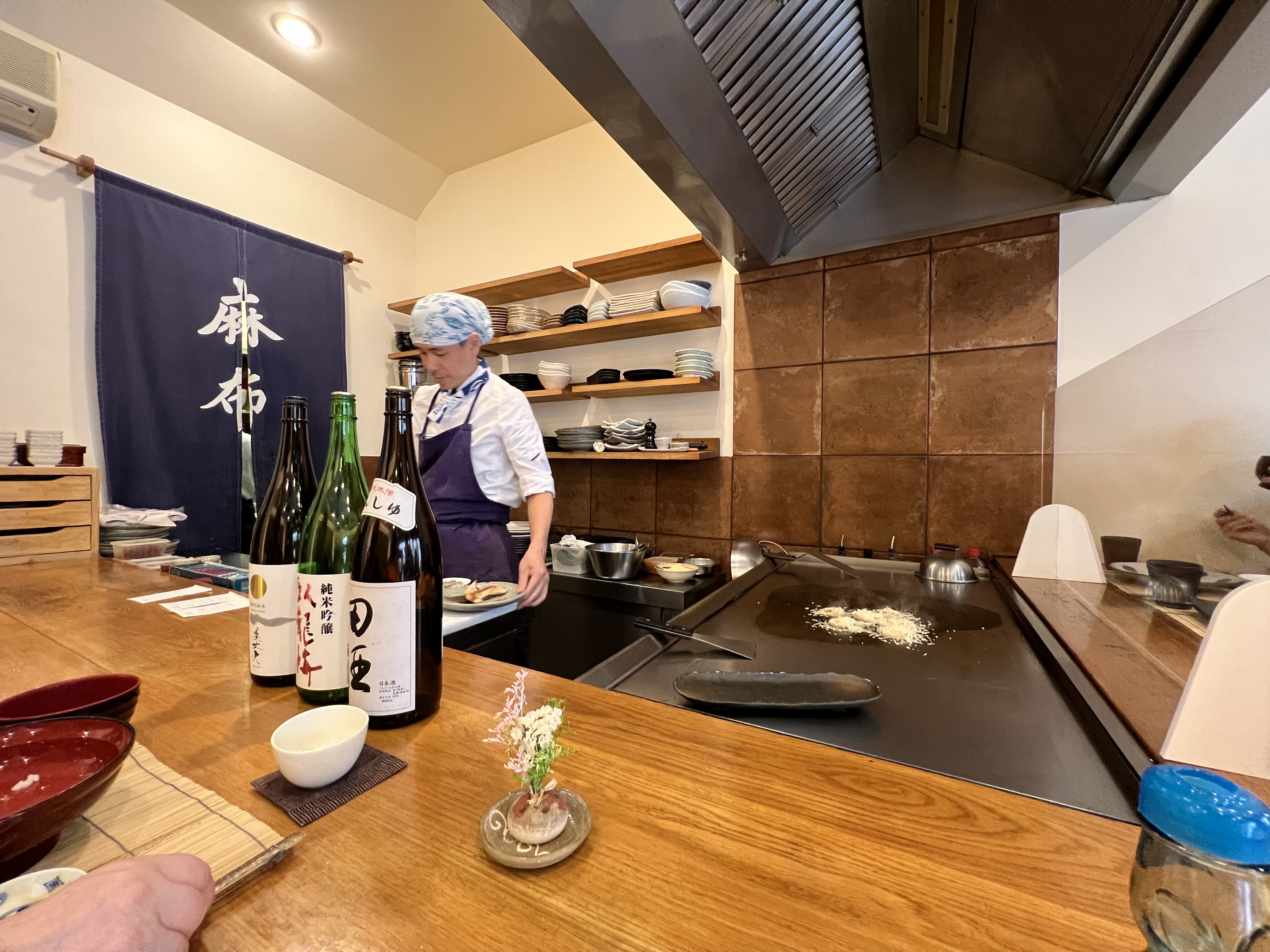 J'ai passé un moment magique dans ce restaurant. On ne sait pas à quoi s'attendre réellement avant de rentrer...Et une fois qu'on y est, nous sommes transportés en plein Japon. L'ambiance est solennelle, chaleureuse, les serveuses font preuve de beaucoup d'amabilité et de professionalisme, et se retrouver au comptoir pour admirer le chef cuisiner préparer les différents plats est un vrai plaisir. Quant à la cuisine, il y a peu de choses à dire, c'est tout simplement bon. On est servi rapidement, c'est fait devant nos yeux, on peut être surpris (le champagne avec l'umeboshi, ou le tofu mariné....) et on peut surtout à la fin être satisfaits devant la qualité des produits proposés. Azabu est à conseiller bien sûr, et je regrette amèrement de n'avoir pas connu avant cette adresse.