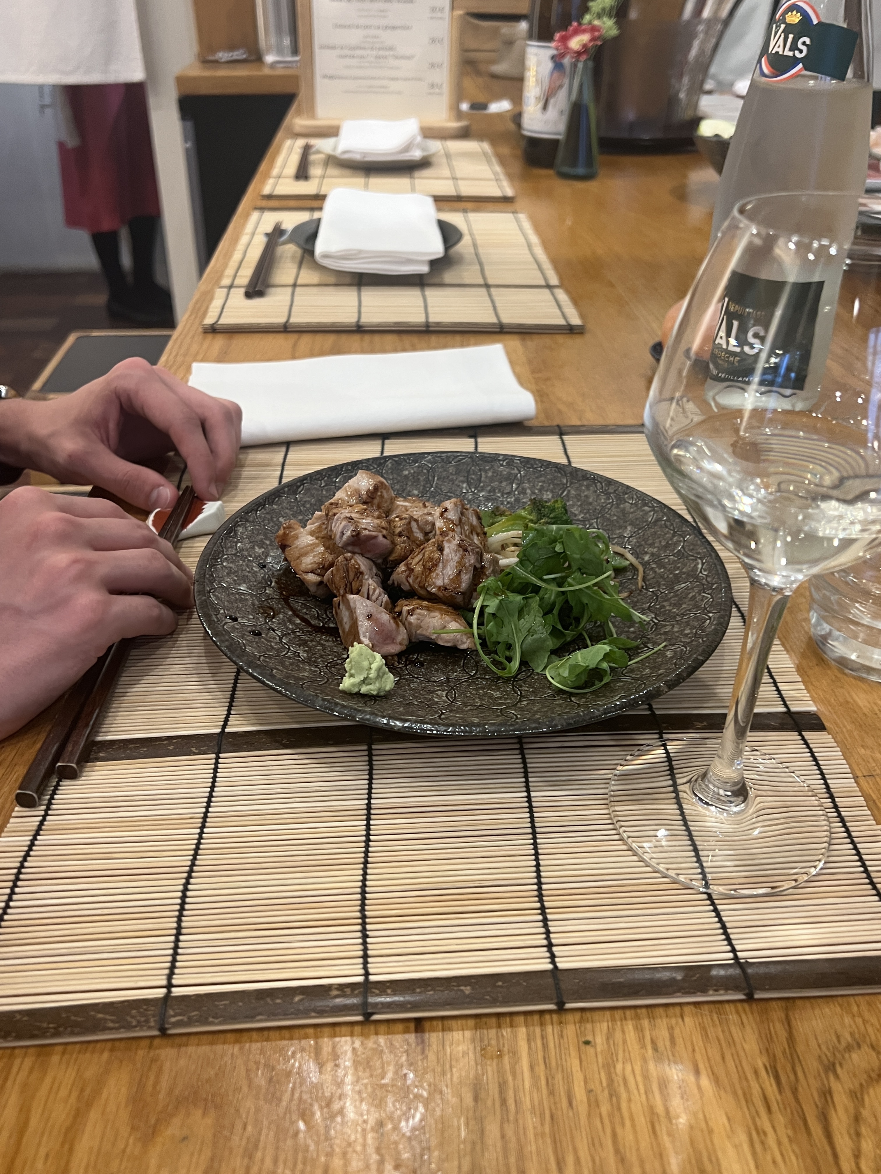 Indéniablement un des meilleurs restaurants japonais de Paris. Ambiance minimaliste comme au Japon. Le wagyu est à tomber par terre. Fondant comme du beurre, savoureux et goûtu. Même le wasabi seul est bon! Certes un peu cher mais vaut largement le détour. Expérience gustative assurée!
