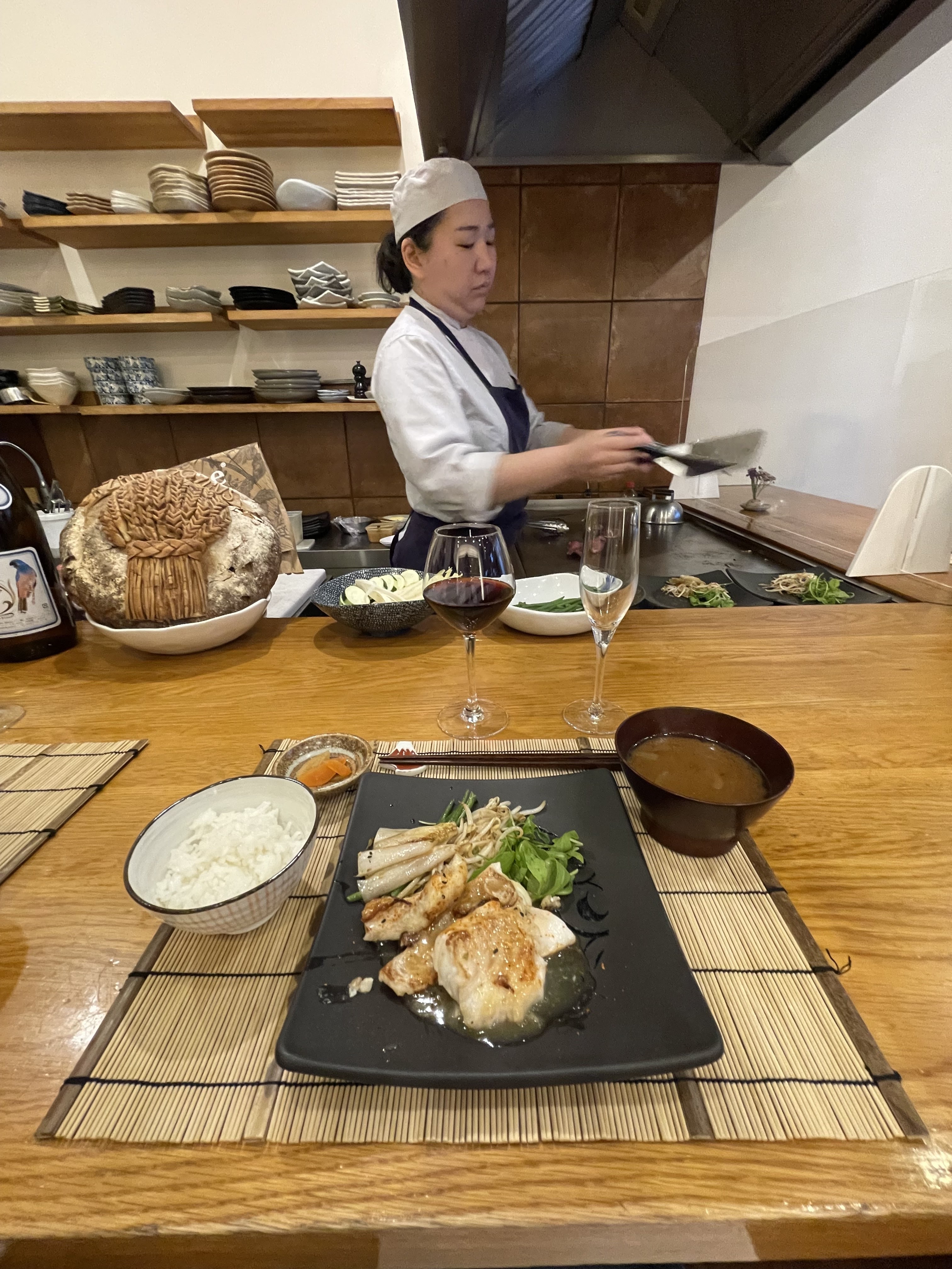 Superbe expérience , face au cuisinier , le poisson grillé et le wagyu étaient excellents Merci
