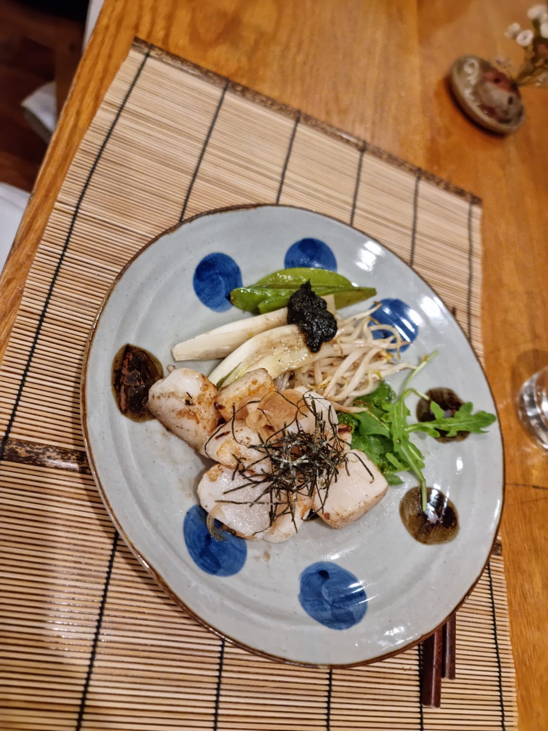 Beaucoup d'attention pour le service, le repas était bon mais je n'emploierais pas le mot extraordinaire comparé à d'autres restaurants japonais traditionnels : l'entrée était délicieuse, le plat principal était présenté de façon brute ce qui était dommage et un peu trop salé à mon goût… Le cake était un peu sec. Il faut tenir compte des suppléments sinon vous serez surpris de la note. De mon point de vue la facture était trop salée compte tenu du rapport qualité/prix/présentation.