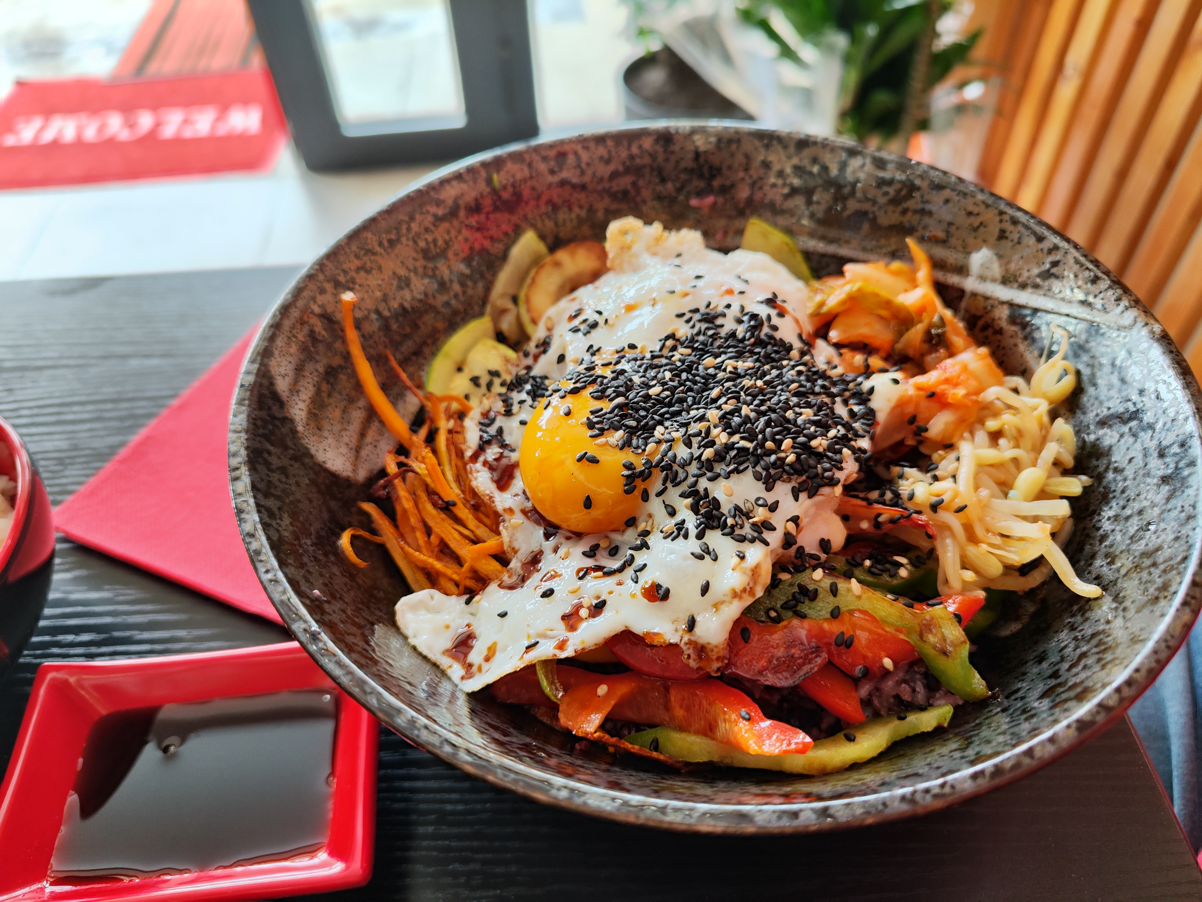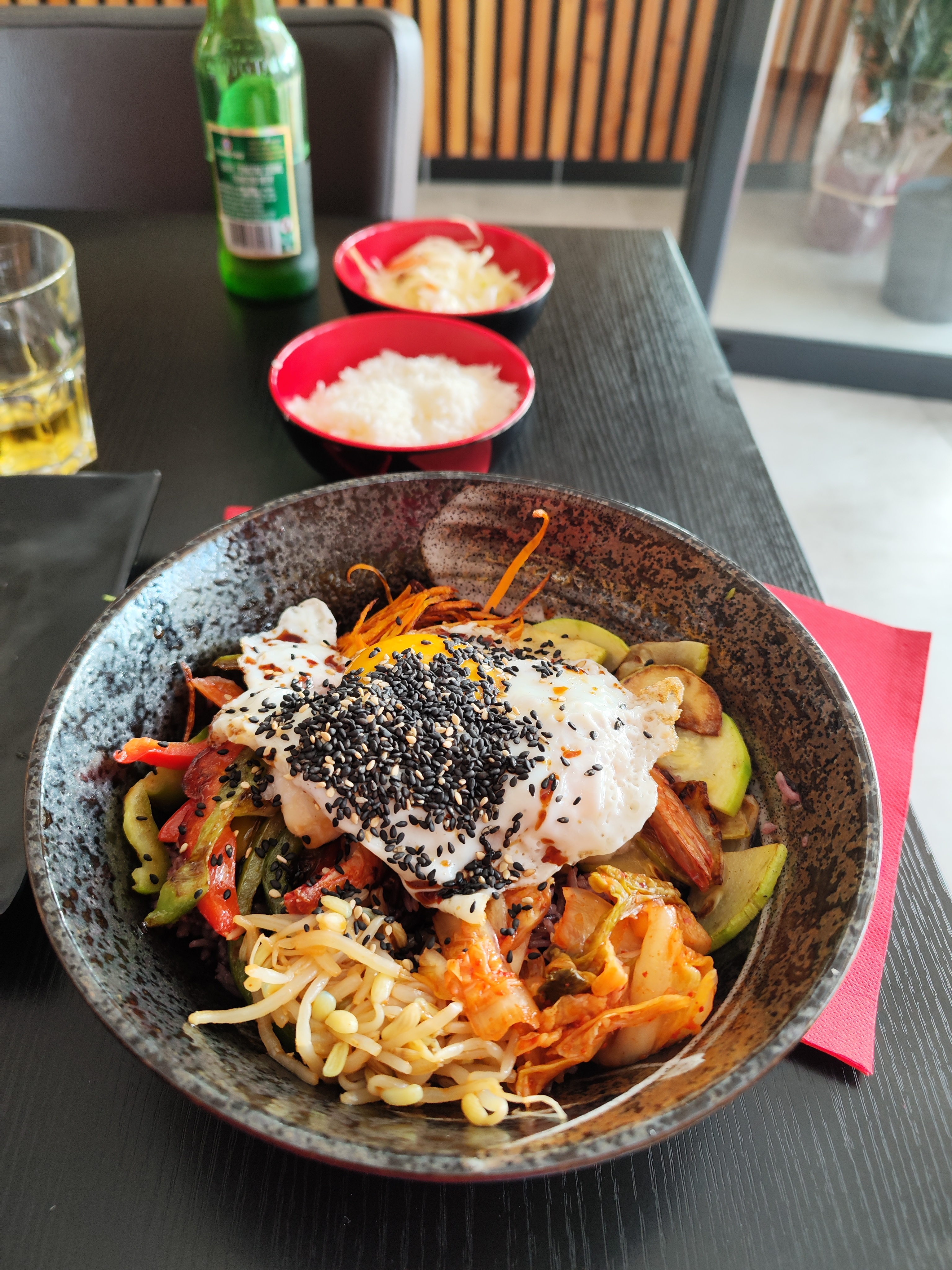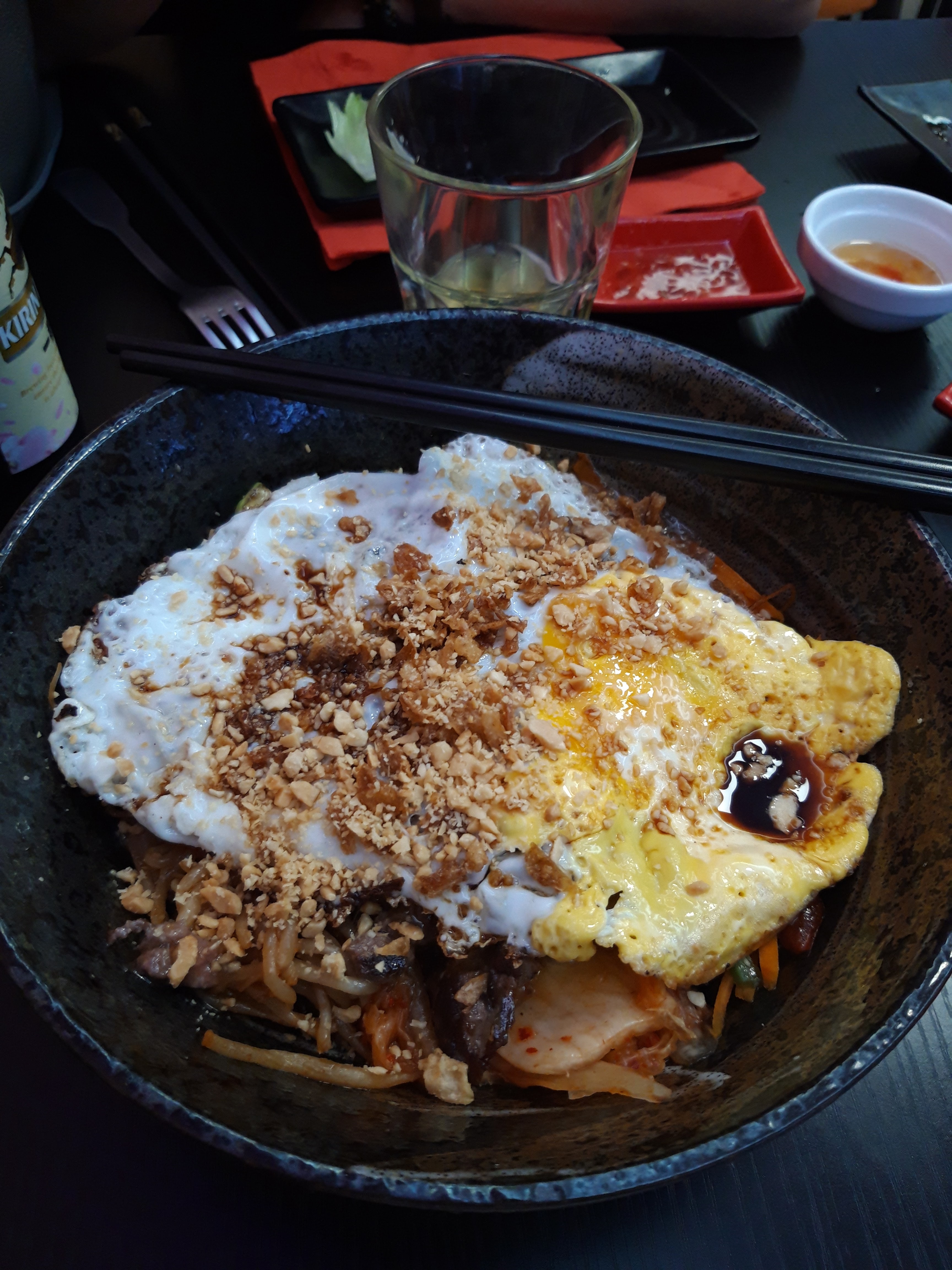 Nous avons pris du bibimbap c’est vraiment pas bon le riz est pas bon la viande encore moins et 2 petit bout de kimchi pour 14 euros je trouve ça abusé Pourtant avant j’aimer bcp commander chez vous dommage