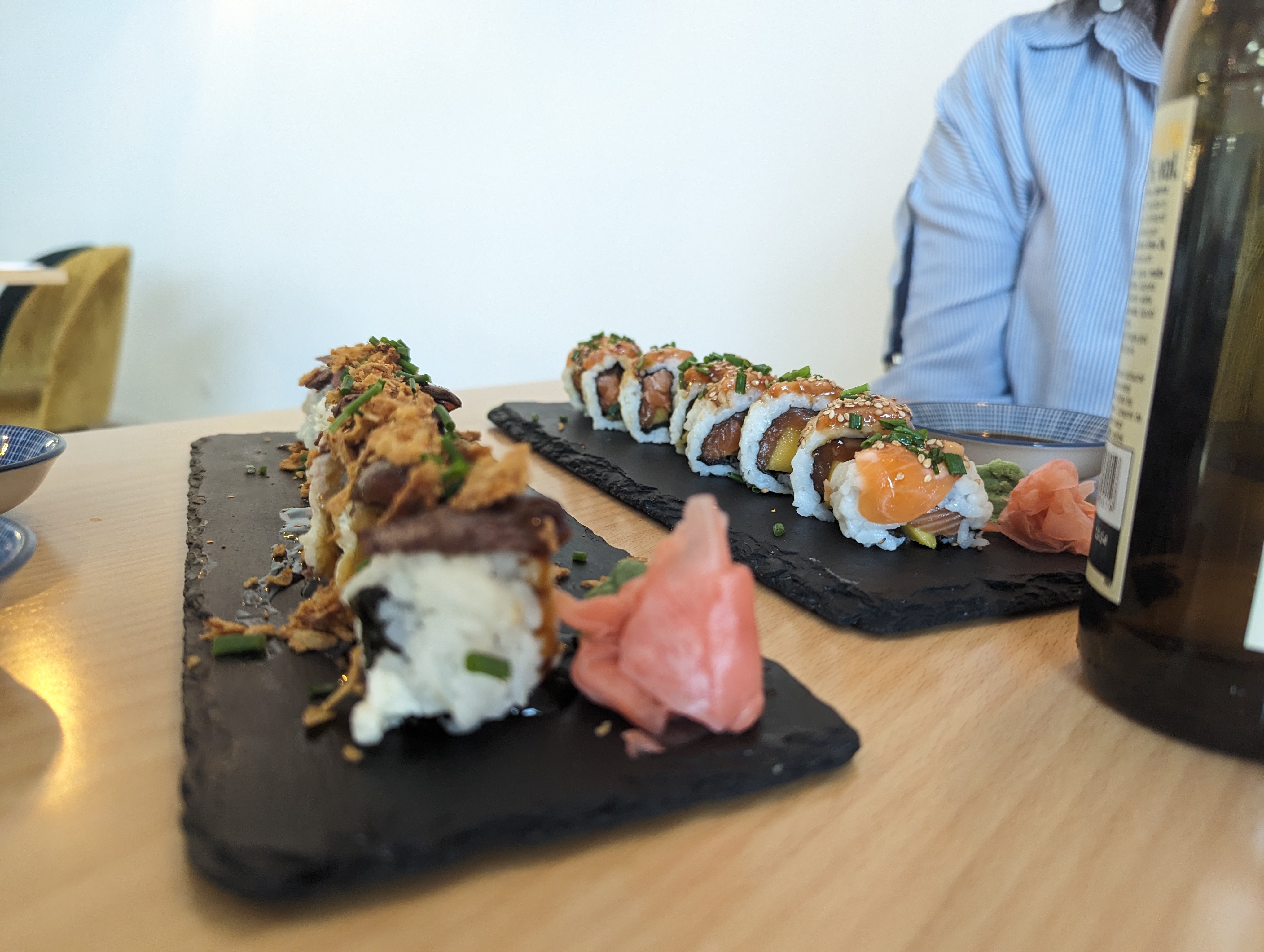 Si il y avait 6 étoiles sur 5 je les mettrais. Très très beaux et bons sushis. Un régal pour les papilles. Il nous tarde vivement de goûter au reste de la carte. Chapeau.
