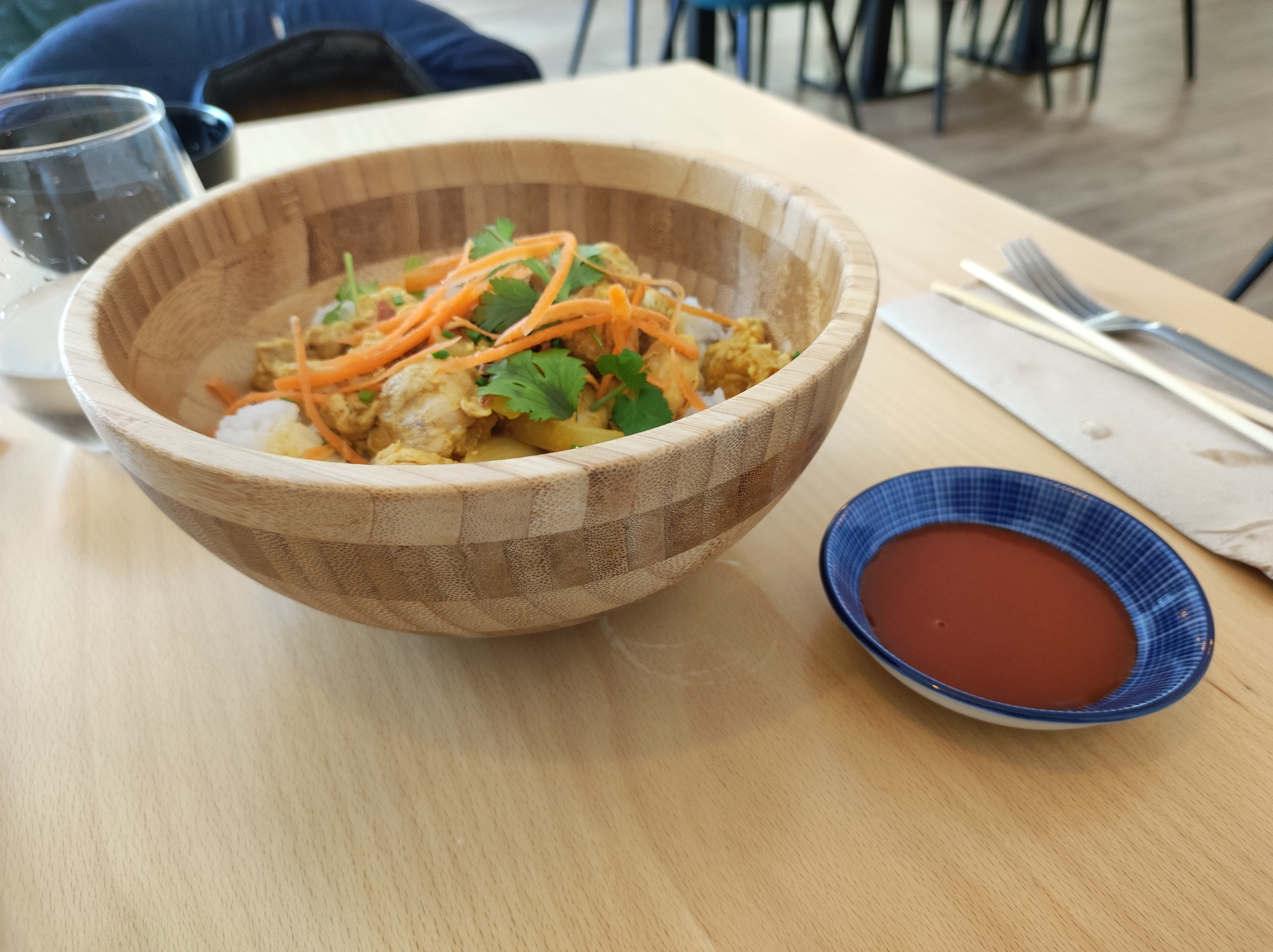 Un très beau restaurant, de l'espace, très épuré, avec vue sur la cuisine (chose qui s'apprécie). Carte généreuse avec le choix entre quelques entrées, des sushis/makis/rolls etc, et quelques plats chauds. J'ai pris une salade de choux en guise d'entrée, un bol de riz et poulet au curry jaune, et pour dessert un moelleux au chocolat et yuzu. La totalité du repas était parfaite, je recommande cette adresse que l'on m'avait recommandé auparavant. J'y reviendrais pour tester d'autres plats c'est sûr