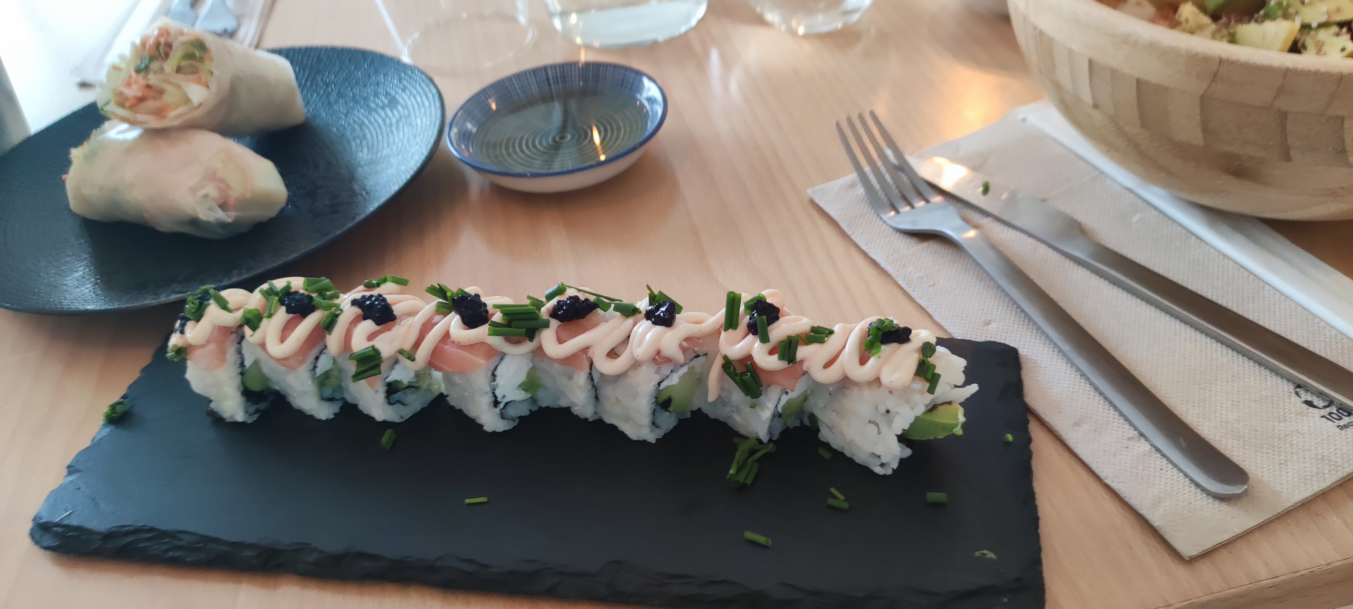 Rien à dire Sushis de première qualité. De très bon ingrédients frais avec un savoir faire authentique. C'était tellement bon jai du prendre des sushis pour la maison ! Je recommande fortement ce restaurant avec un patron passionné.