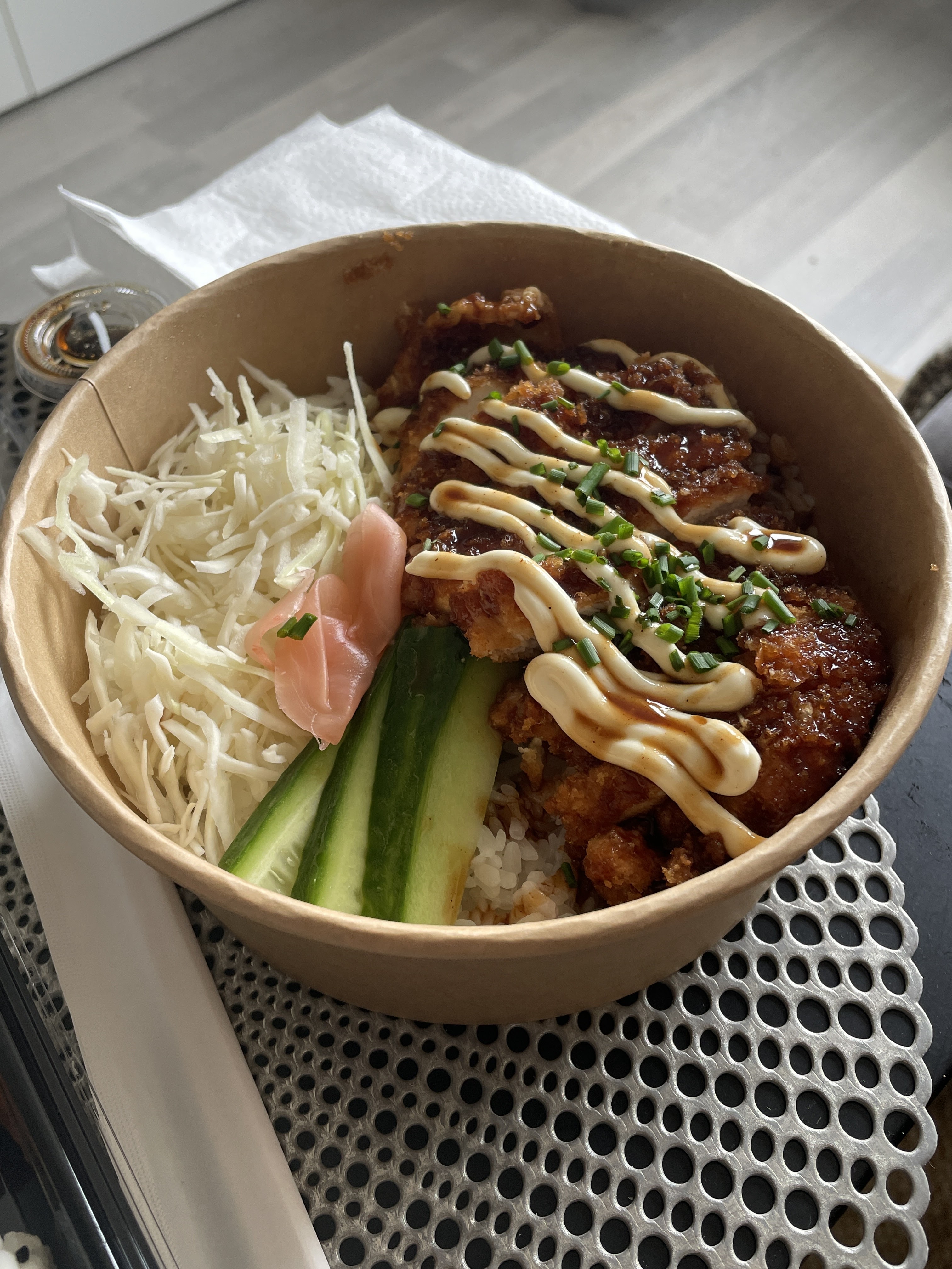 J’ai commandé un torikatsu bowl, des gyozas et des taiyaki sur uber eats. Préparé rapidement, j’ai de suite senti la chaleur et l’amour qui s’émanait des plats. Bien qu’on puisse trouver un restaurant japonais dans chaque rue de Bordeaux, celui ci ne m’a pas laissé ce goût amer d’avoir payer trop chère pour trop peut. Malheureusement en commandant en livraison je n’ai pu profiter de l’accueil chaleureux qu’on m’a décrit mais le petit mot laissé sur la poche ne me donne qu’une envie : venir manger sur place !