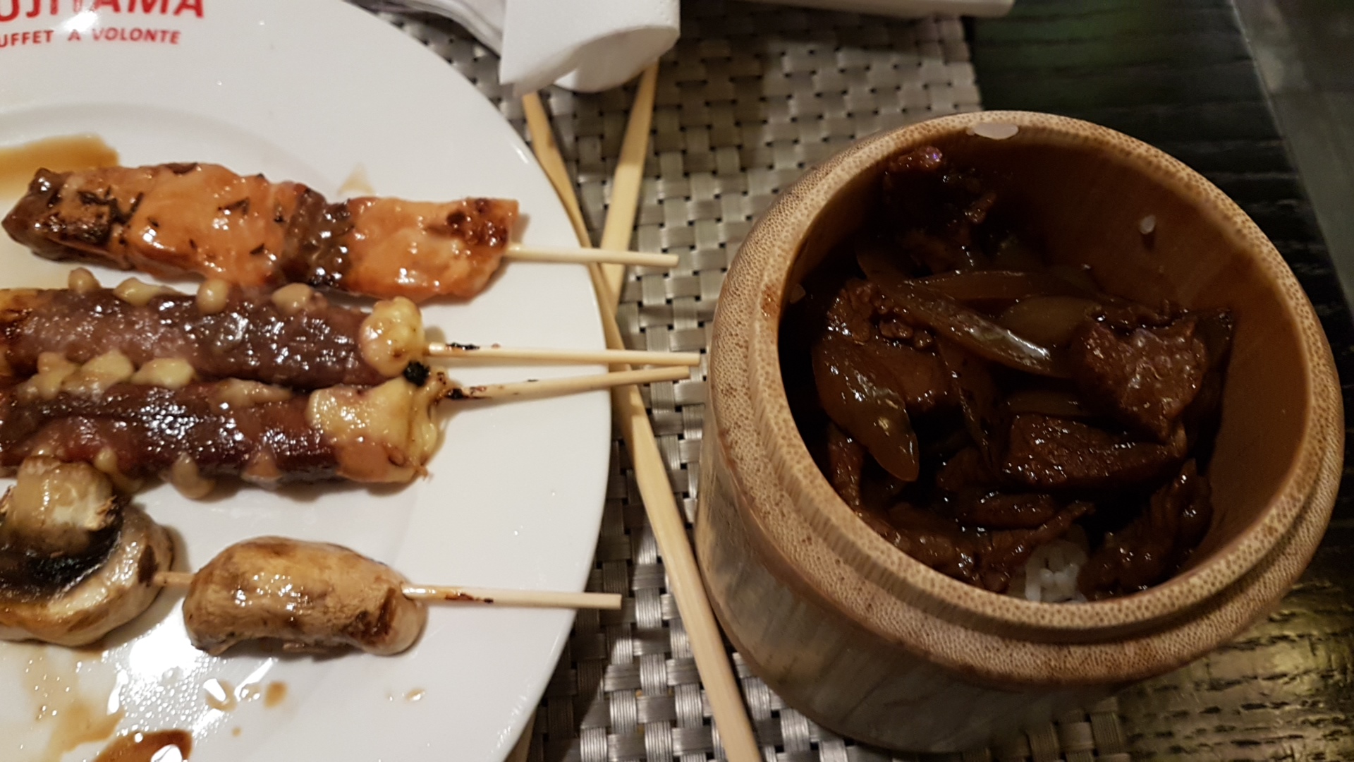 Buffet à volonté, service à table et sur commande. L'avantage, c'est que les plats sont chauds et donc meilleurs (brochettes yakitori). Plutôt bon, pas de restaurant équivalant dans le coin. Patronne très sympathique et accueillante.