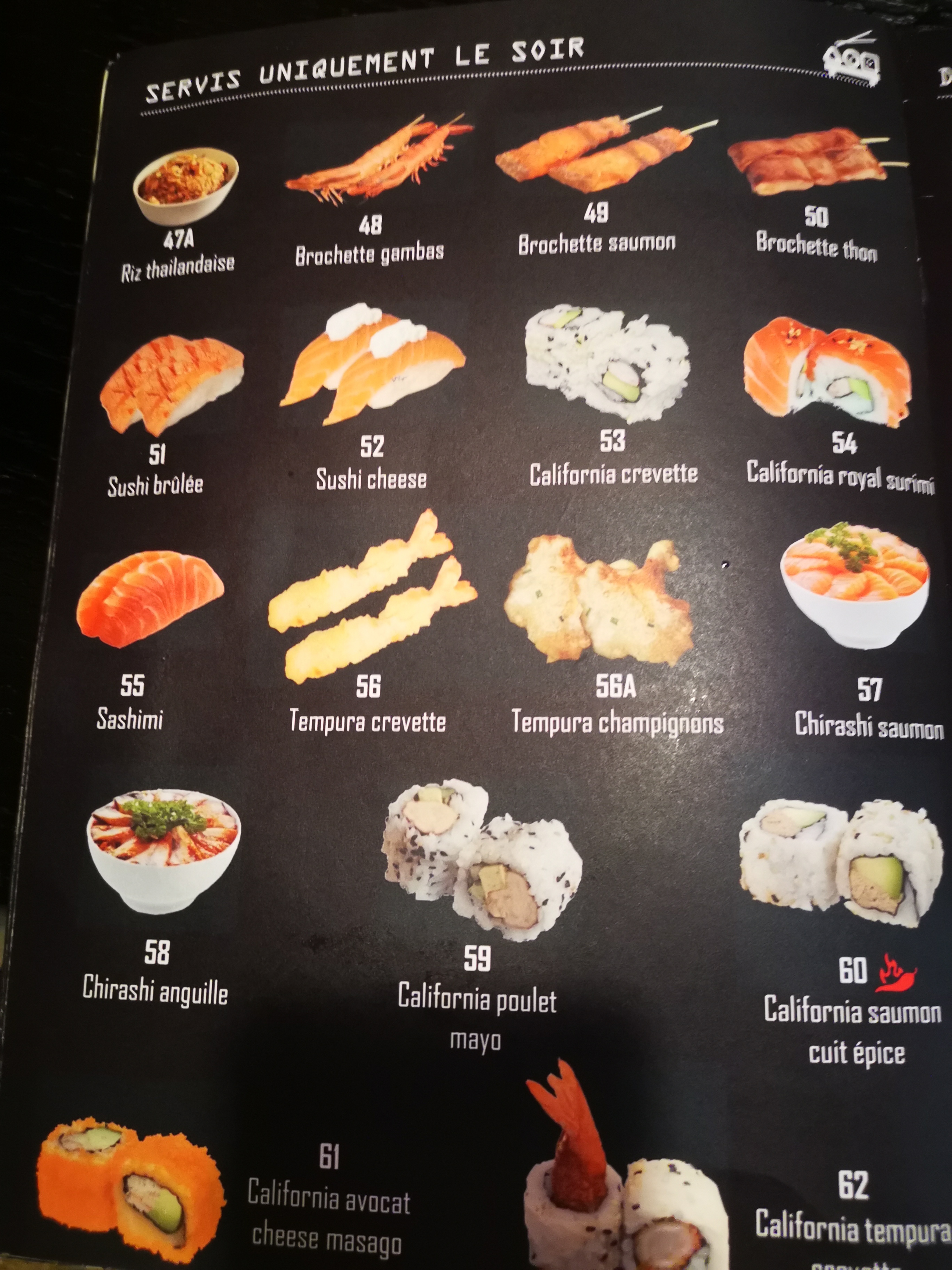 A fuir!!! Nous y sommes allé dimanche soir pour quatre personnes et l’expérience est plus que désagréable. Déjà pour commencer, pour commander il faut être très patient et fort en math sinon on s’y perd facilement. Vous avez des feuilles pour commander 6 ou 8 plats mais vous pouvez pas prendre n’importe quoi. Et les desserts sont en supplément. C’est très long pour commander et c’est désagréable. Pour continuer, les boissons sont très chers, 4€ pour une simple bouteille de 50cl, c’est extrêmement cher ! Le service est très lent, alors je sais qu’il faut bien préparer les plats mais plus de 45 min d’attente je trouve ça abusé. Niveau goût, c’est des sushis traditionnels qui n’ont rien d’exceptionnel. Mais le pire n’es pas encore arrivé. Le lendemain, ma conjointe s’est plaint de maux de ventre, de nausées ect.. Moi depuis j’ai un mal de ventre et je digère très mal. Elle a été à la pharmacie et le pharmacien lui a dit que c’était une intoxication alimentaire. La dernière chose qu’elle a manger était le restaurant. Et aujourd’hui elle appelle le restaurant pour prévenir, et on nous sort que ça a pas arriver depuis 10 ans ou je ne sait quoi. Donc évidemment ils se dédouane de tout responsabilité. Ils disent que les patrons sont à Paris donc il ne peuvent pas parler. Ma conjointe Doit y retourner pour mettre les choses au clair. Ce qui est sûr je n’y retournerai jamais car les prix sont trop élevés pour avoir une intoxication alimentaire. Je n’y mettrai plus les pieds. Un geste commercial n’es même pas proposé. Je déconseille fortement de vous aventurer dans ce « restaurant ». Une honte d’avoir un restaurant comme ça et renier toute responsabilité!