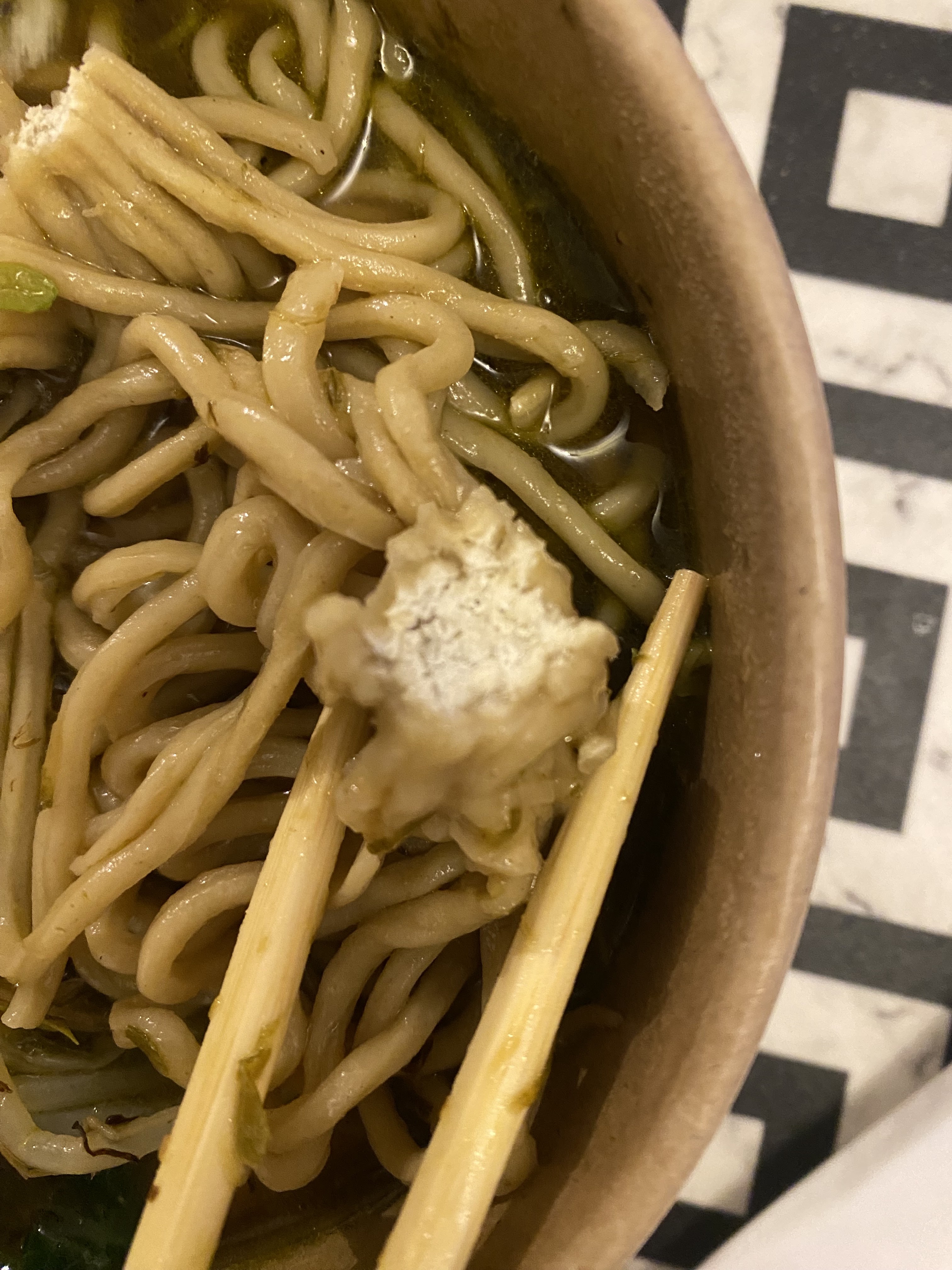 Je viens de commander un Shoyu ramen sur uber eats et il y avait une grande partie des pâtes toute collée et compact qui était pas cuite. Mais le pire de tout, ils ont pas mis de porc dans mon ramen! Je suis dégoûtée…