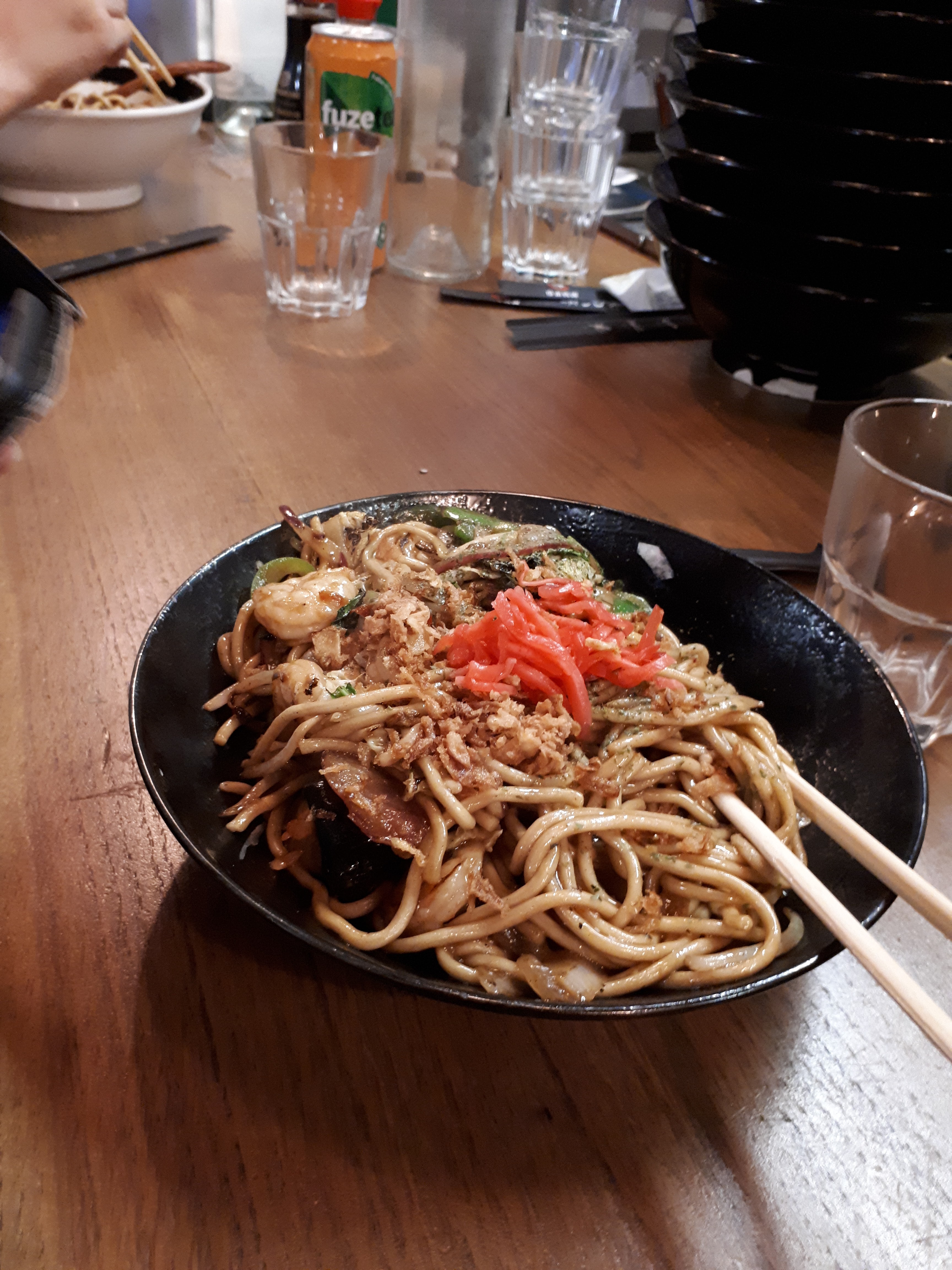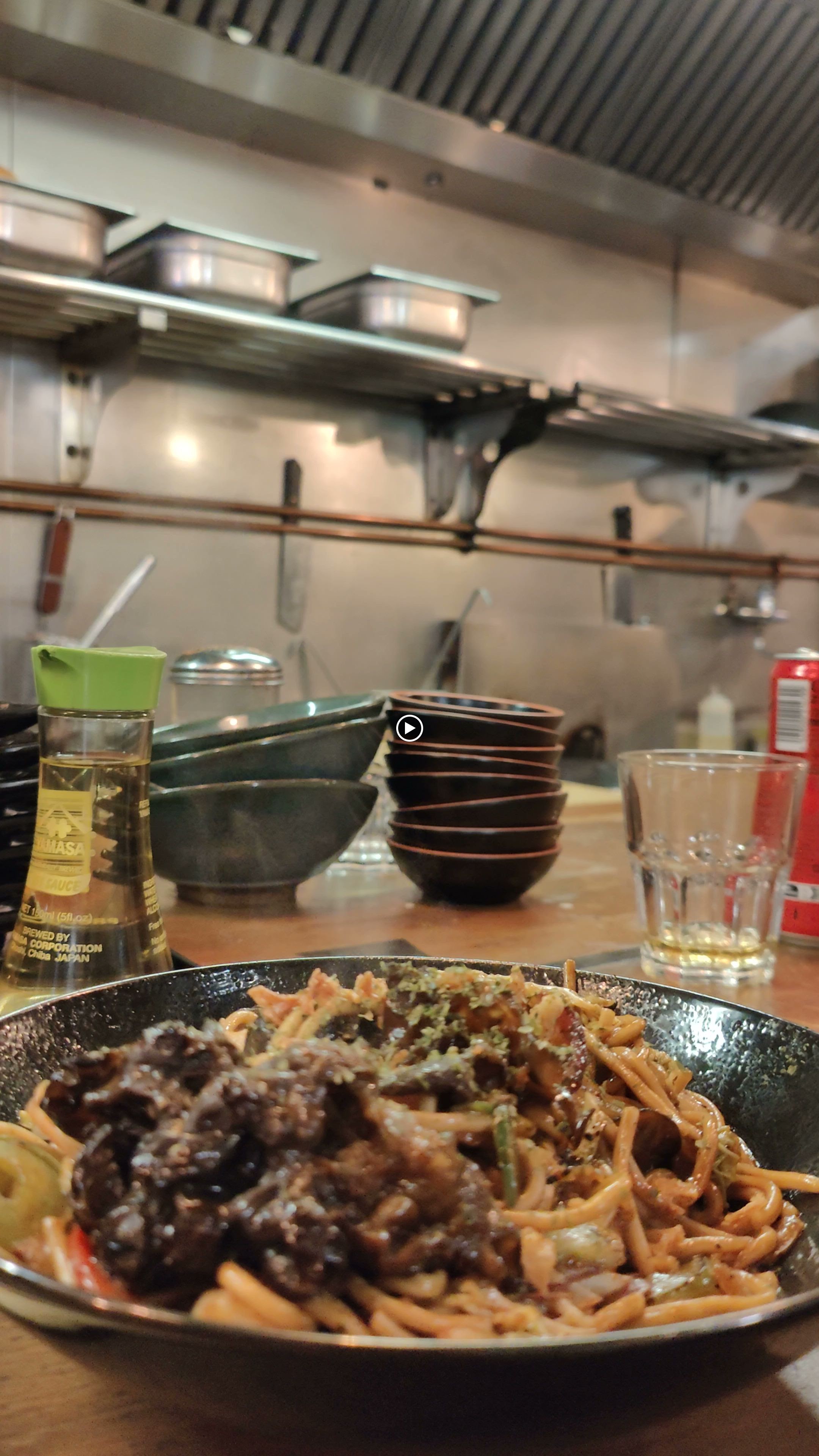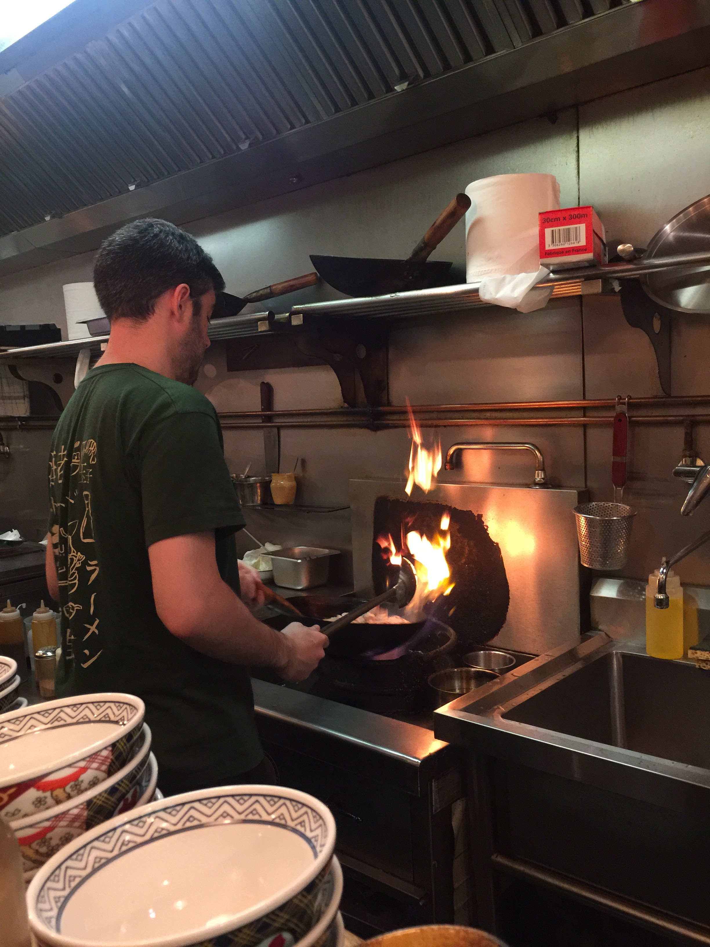 J'ai pris un yakisoba aux légumes, et je me suis RÉ-GA-LÉE ! Regarder le personnel le préparer était très impressionnant, mais le plus fort reste leur serviabilité. Si je me souviens bien, le plat le plus cher avoisine les 16€, tandis que la majeure partie du reste du menu tourne autour des 8€... Pour résumer, très bonne ambiance, jolie décoration, atmosphère chaleureuse, prix abordables... que demander de plus ?