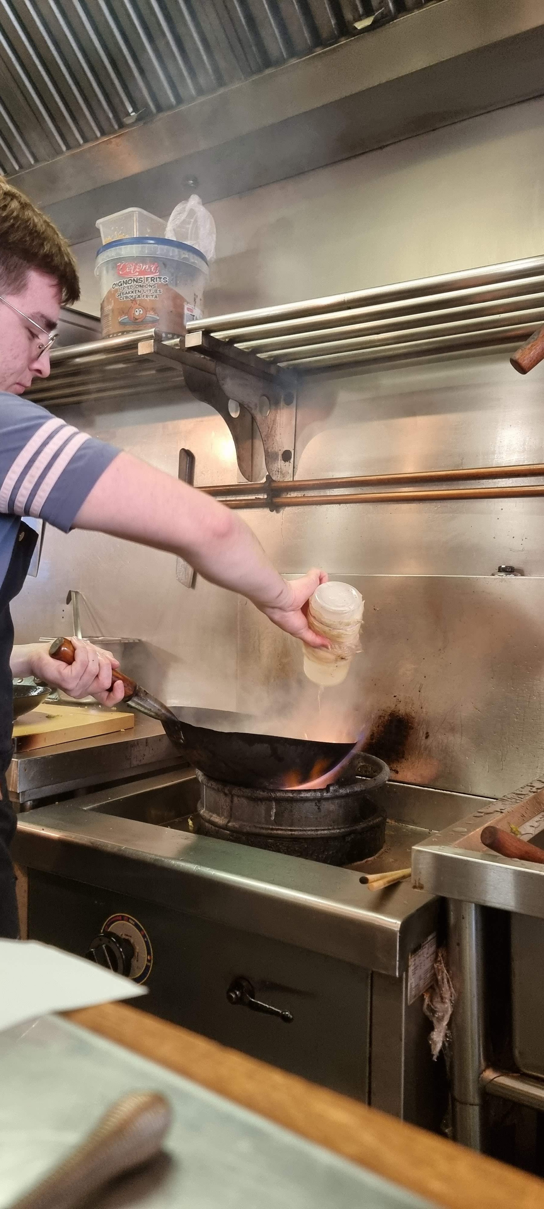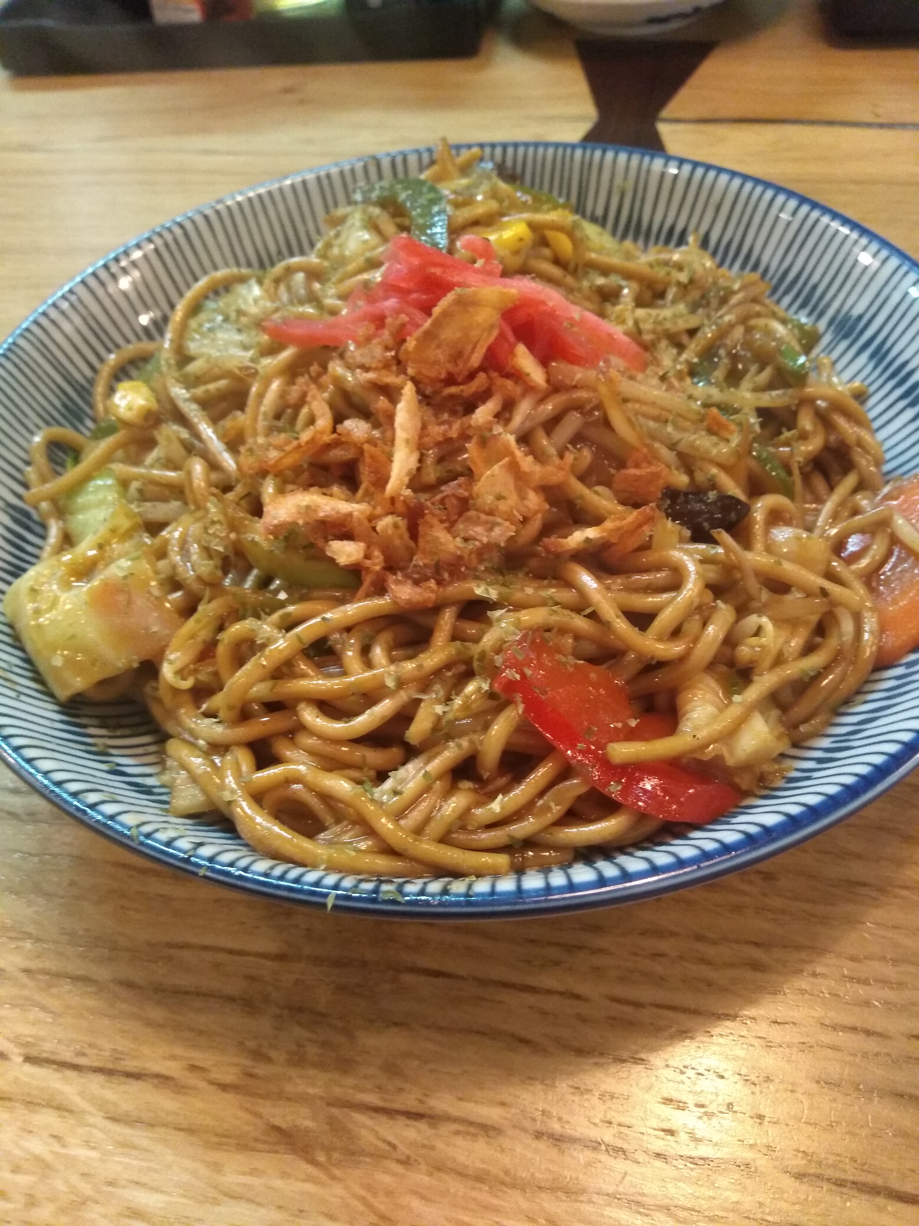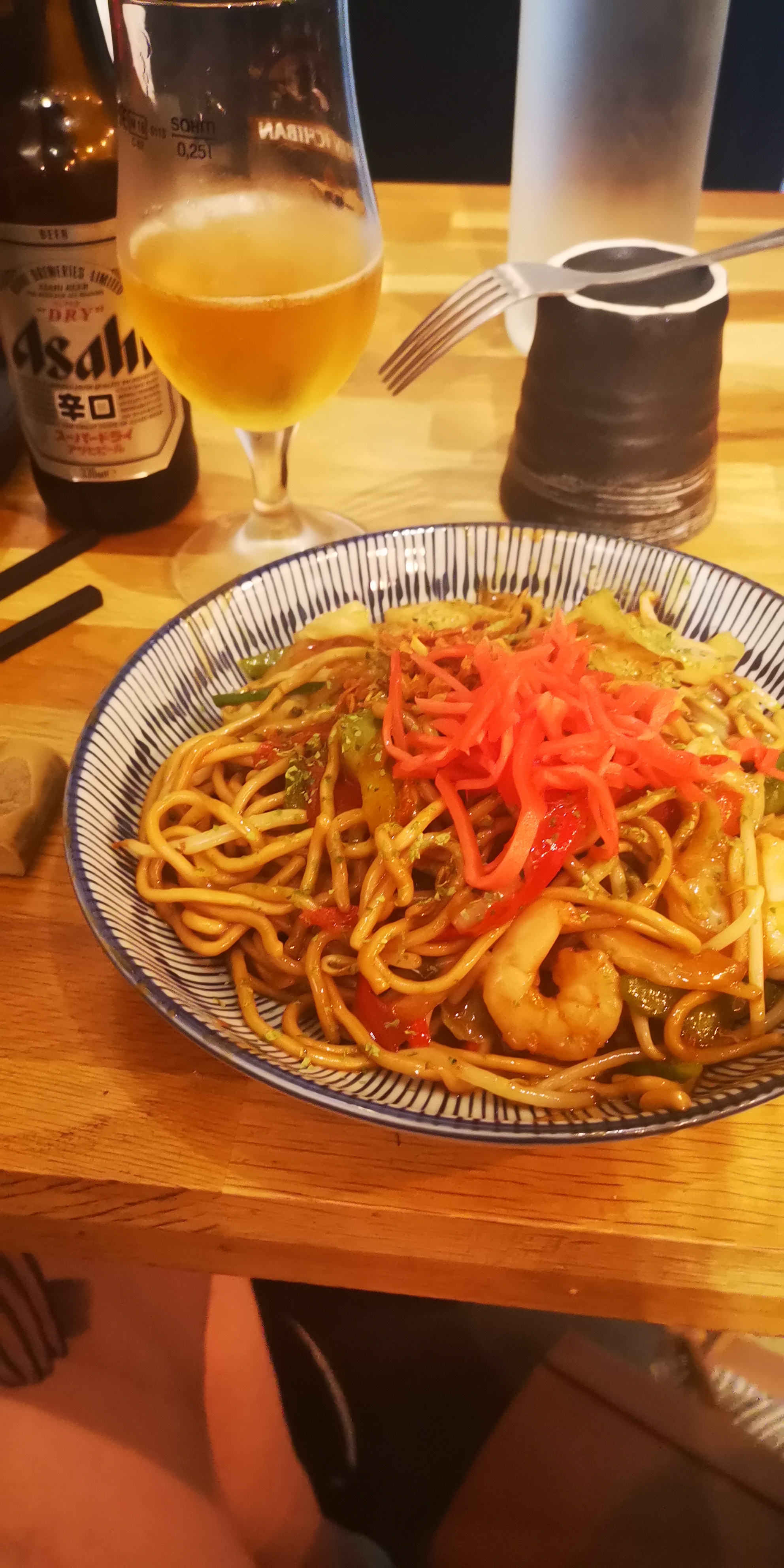 J'ai pris un yakisoba aux légumes, et je me suis RÉ-GA-LÉE ! Regarder le personnel le préparer était très impressionnant, mais le plus fort reste leur serviabilité. Si je me souviens bien, le plat le plus cher avoisine les 16€, tandis que la majeure partie du reste du menu tourne autour des 8€... Pour résumer, très bonne ambiance, jolie décoration, atmosphère chaleureuse, prix abordables... que demander de plus ?