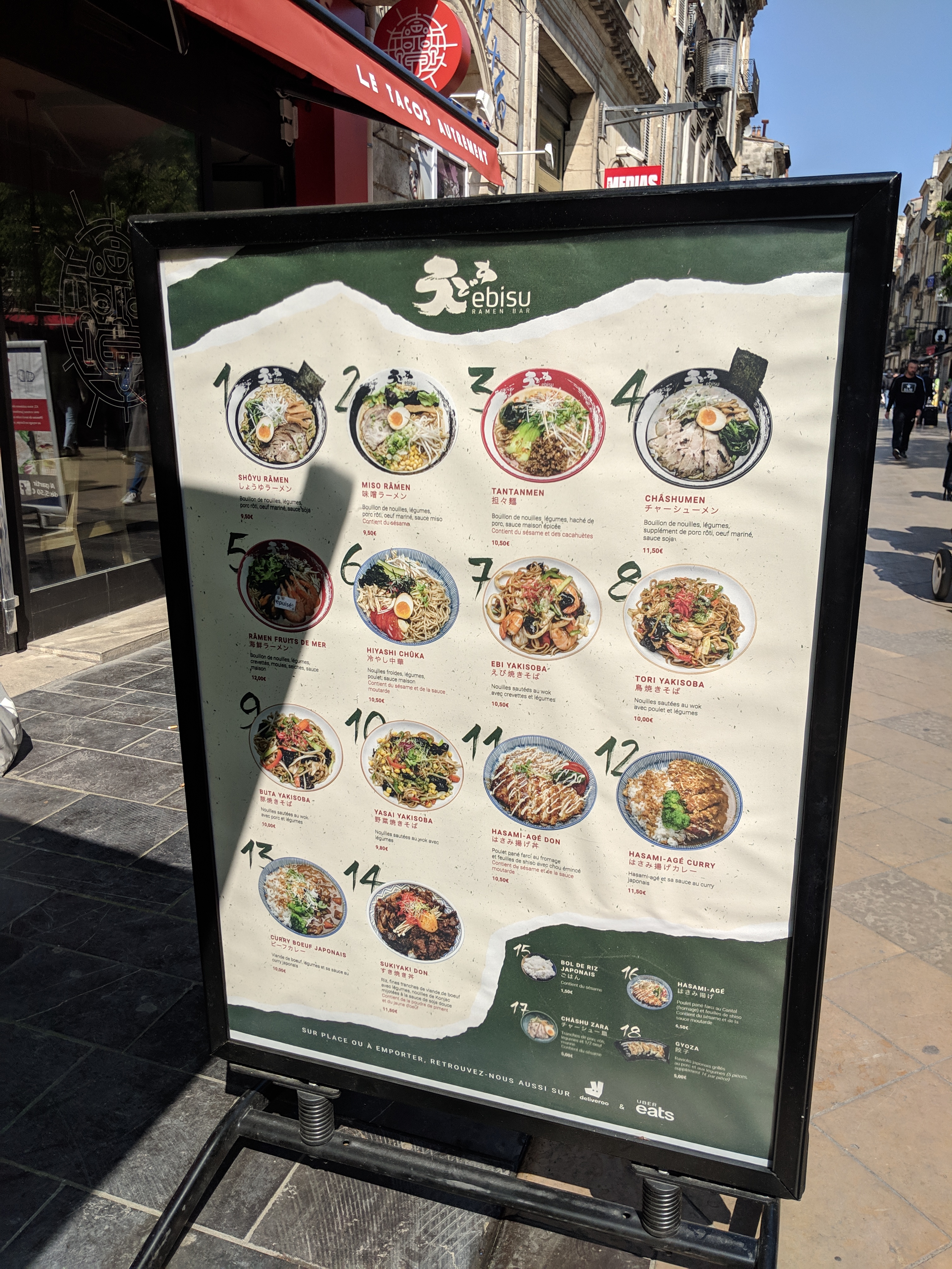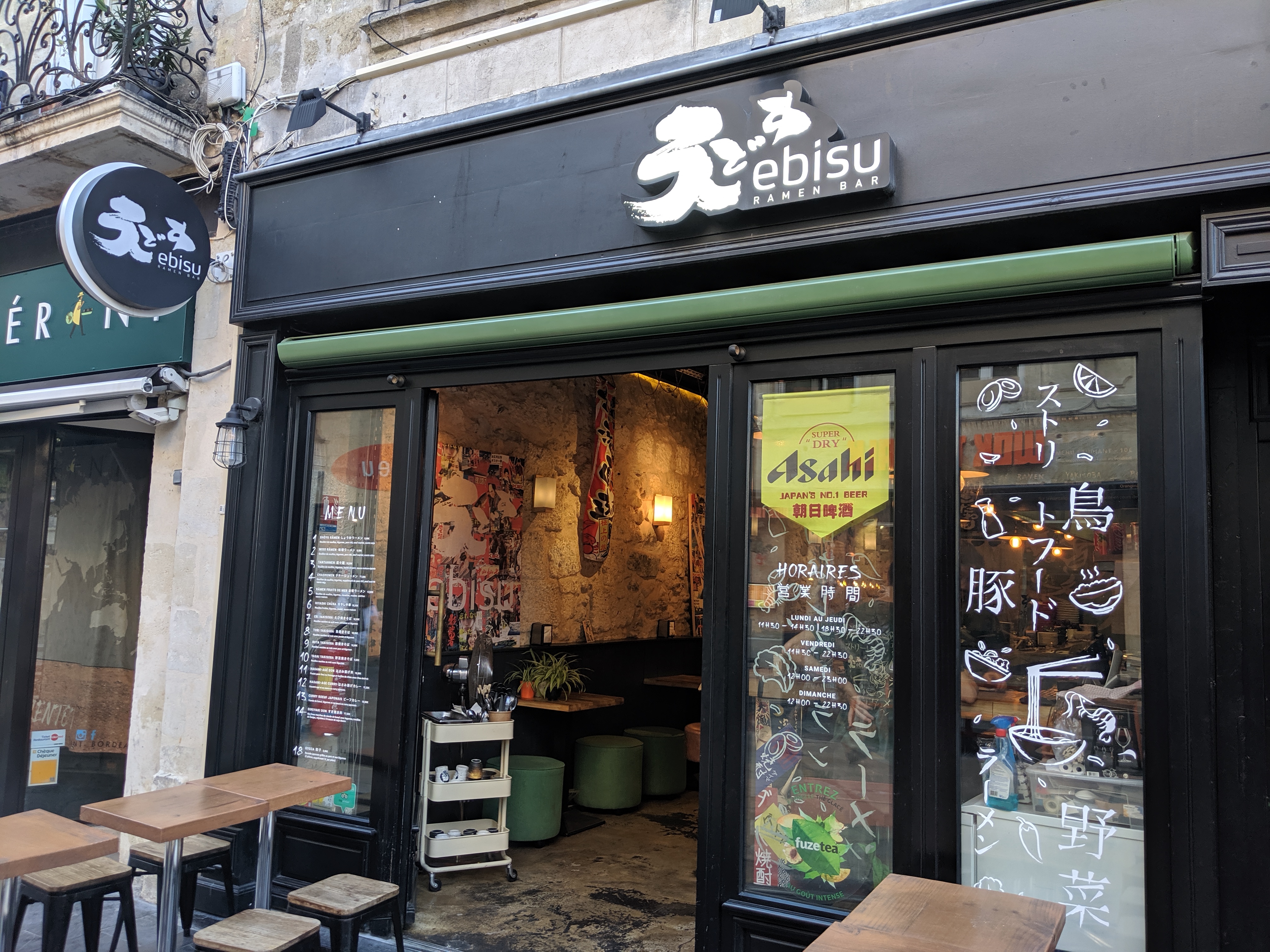 J'ai commandé a emporter ce lundi soir. J'y suis entré sans conviction et par dépit, pensant que c'était le moins pire des établissements restauratifs de la rue. Je regrette mon choix, j'ai commandé le shoyu ramen, le bouillon est FADE, les nouilles sans goût, quelques légumes se battent en duel, la tranche de porc à goût de glutamate... quant à l'oeuf je n'ai même pas osé le gouter après avoir observé le personnel sentir leur contenant avec un air incertain, non obstant le personnel semble aimable pour le peu d'échange que j'ai eu. Mes amis qui ont commandé en face (établissement qui ne me convenait pas, d'où mon choix pour ce resto...) ont également gouté et partagent mon avis, ils m'ont aussi encouragé à ne pas finir mon plat de peur que je tombe malade. Si vous cherchez des ramens, marchez un peu plus, et allez au Umami (place fernand lafargue) ou au Fufu (rue saint rémi) pour le même prix la qualité sera bien meilleure. Personnellement je n'accorderait pas de nouvelle chance à cet établissement. Je suis venu commander sans attentes mais je me retrouve tout de même décu.