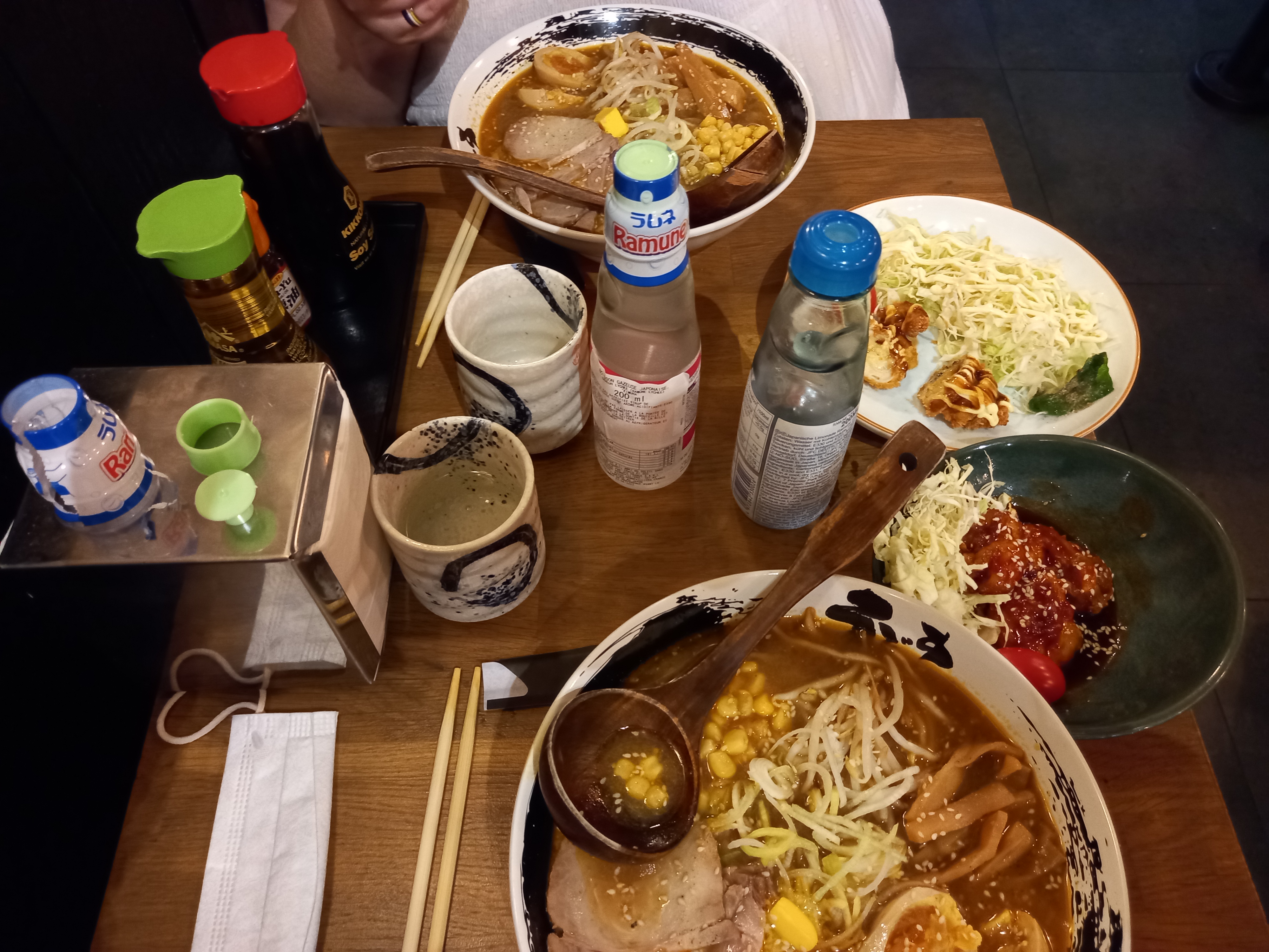 Il fallait goûter leurs ramens celui de ma fille était épicé le mien était autre, c'est un joli endroit il y avait de la place. Il a fallu attendre un petit peu ce qui est normal. J'ai une préférence pour un autre restaurant. Chacun ses goûts.
