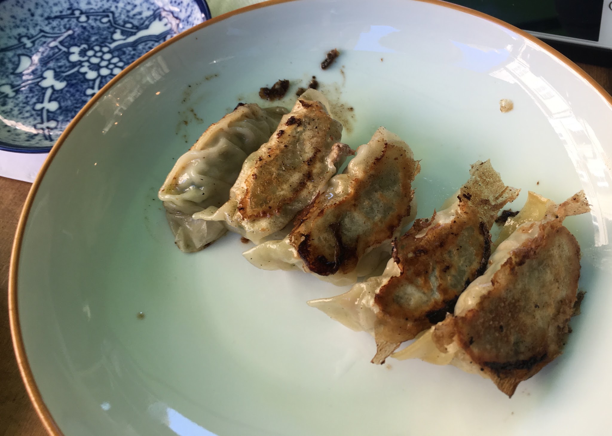 pour mon baptême face aux ramens, c'est vraiment réussi : des gyosas succulents (avec l'explication des sauces faite par la gérante), un ramen au porc haché, cacahuètes, nouilles et bouillon épicé très copieux et deux mochis apaisants go revenir pour goûter les entrées proposées