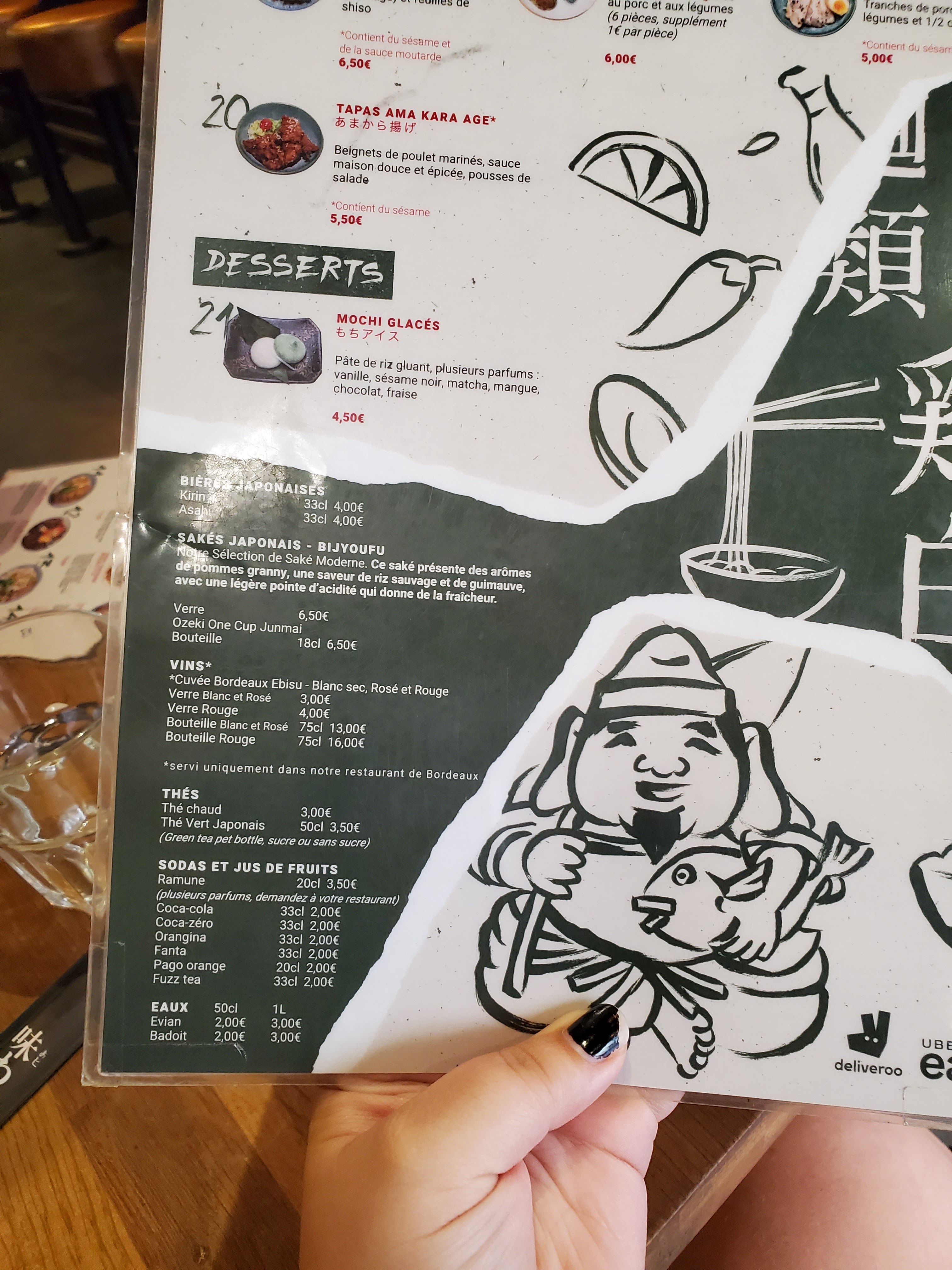 Excellents Kara-agé, probablement les meilleurs de bordeaux. Pourtant parfois, la qualité n'est pas au rendez-vous. Clairement une grosse différence au niveau des quantités et du goût, en fonction de qui cuisine. J'ai commandé une kara-agé, et le poulet était misérablement petit, comme si c'était des restes, même le goût n'était pas là, alors que je suis venu 4 fois précédemment et j'avais toujours été satisfait... C'est clairement dommage, il faut mieux former les employés.