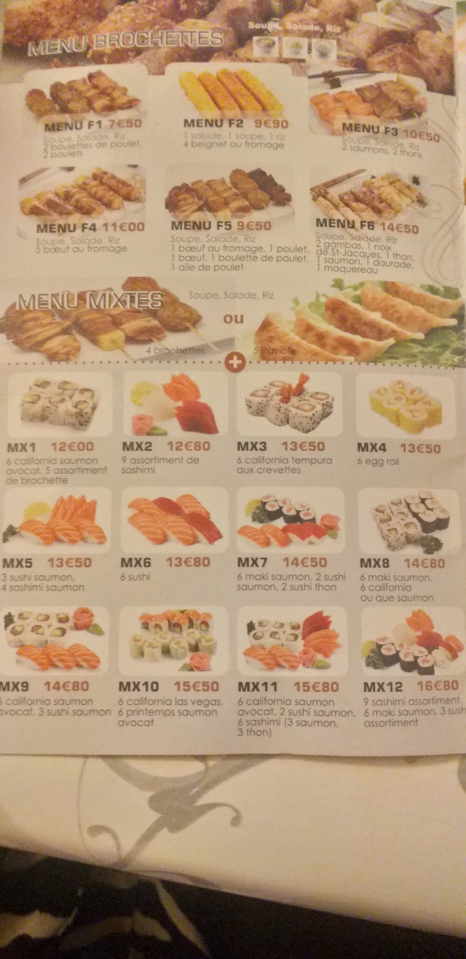 Brochettes passables, Maki thon cuits mauvais, riz idem. La sauce sucrée est spéciale. Il y a bien mieux à savigny. Je m’en rappellerai la prochaine fois.