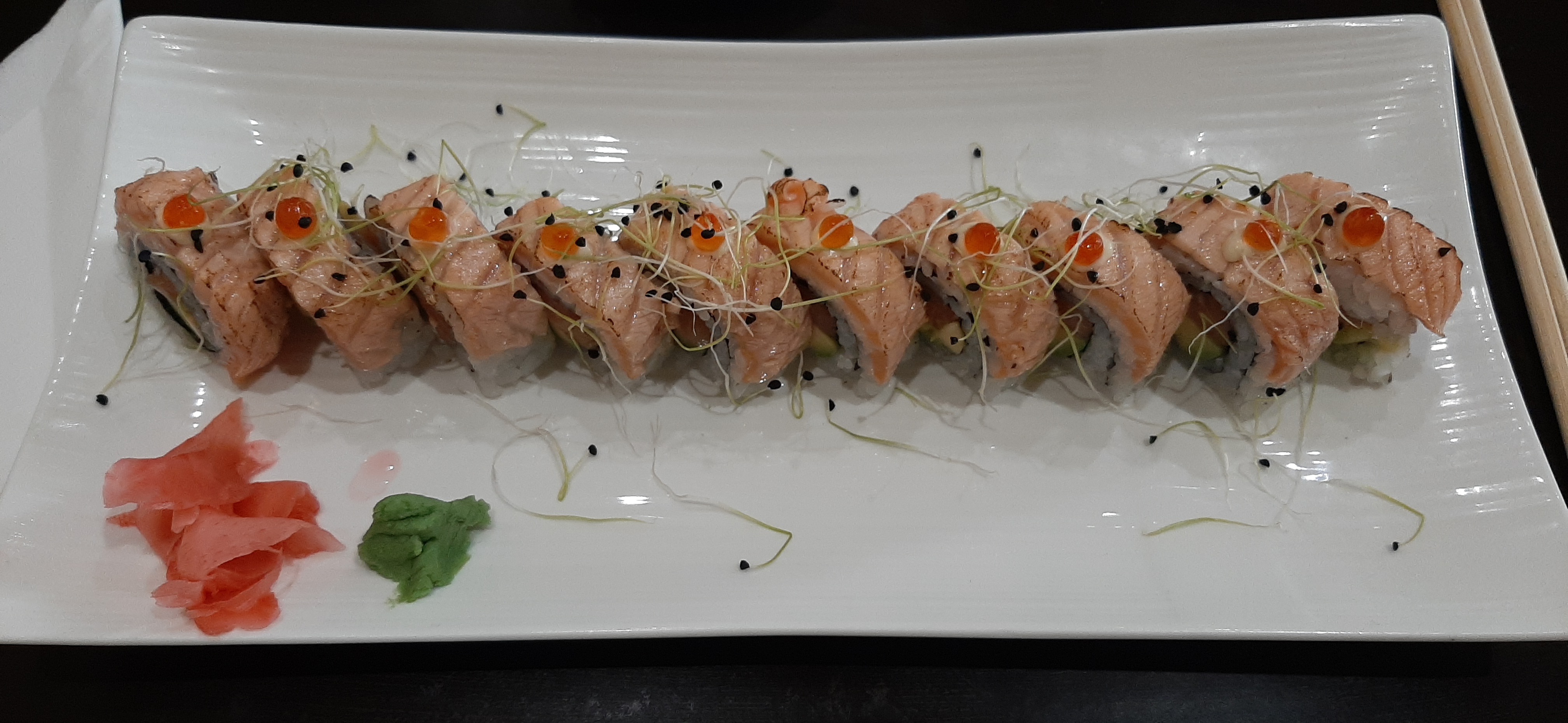 J’ai adoré les sushis, bon saumon, de qualité. En revanche mes brochettes de poulets n’étaient pas cuites ce qui pose évidemment problème.